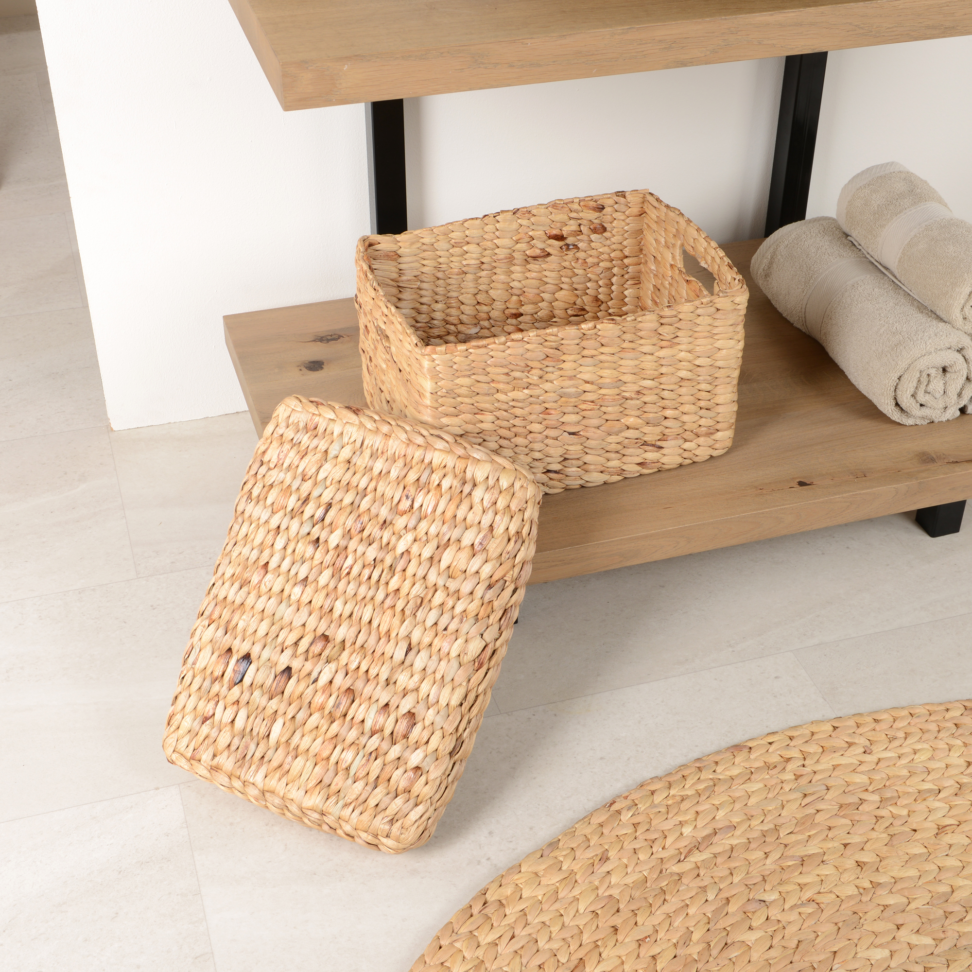 Diese Aufbewahrungsmöglichkeit ist natürlich und umweltfreundlich. Die Körbe bestehen aus den Stielen der Wasserhyazinthe.