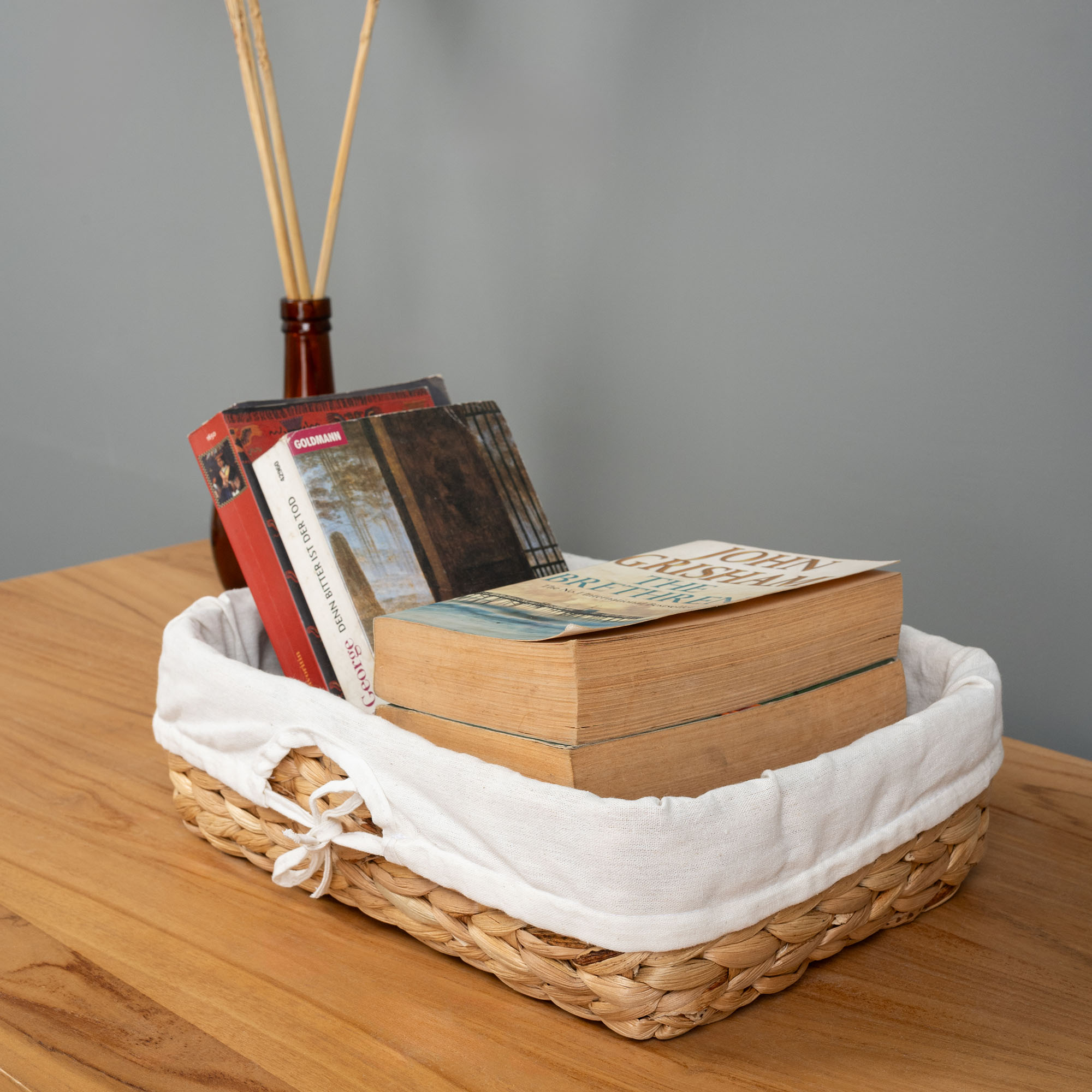 Der handgeflochtene Korb aus Wasserhyazinthe bietet eine perfekte Kombination aus Funktionalität und Design. Er eignet sich als perfekte Dekoration oder zur Aufbewahrung von kleinen Gegenständen in Ihrem Wohn-, Ess-, oder Schlafzimmer. Ebenso ist die Box auch für Ihr Badezimmer geeignet, um sie unter den Waschtisch oder ins Regal zu stellen. Schlicht und klassisch verleiht er Ihren Räumen einen frischen und verspielten Touch. Der Korb wird mit einem Innensack geliefert.