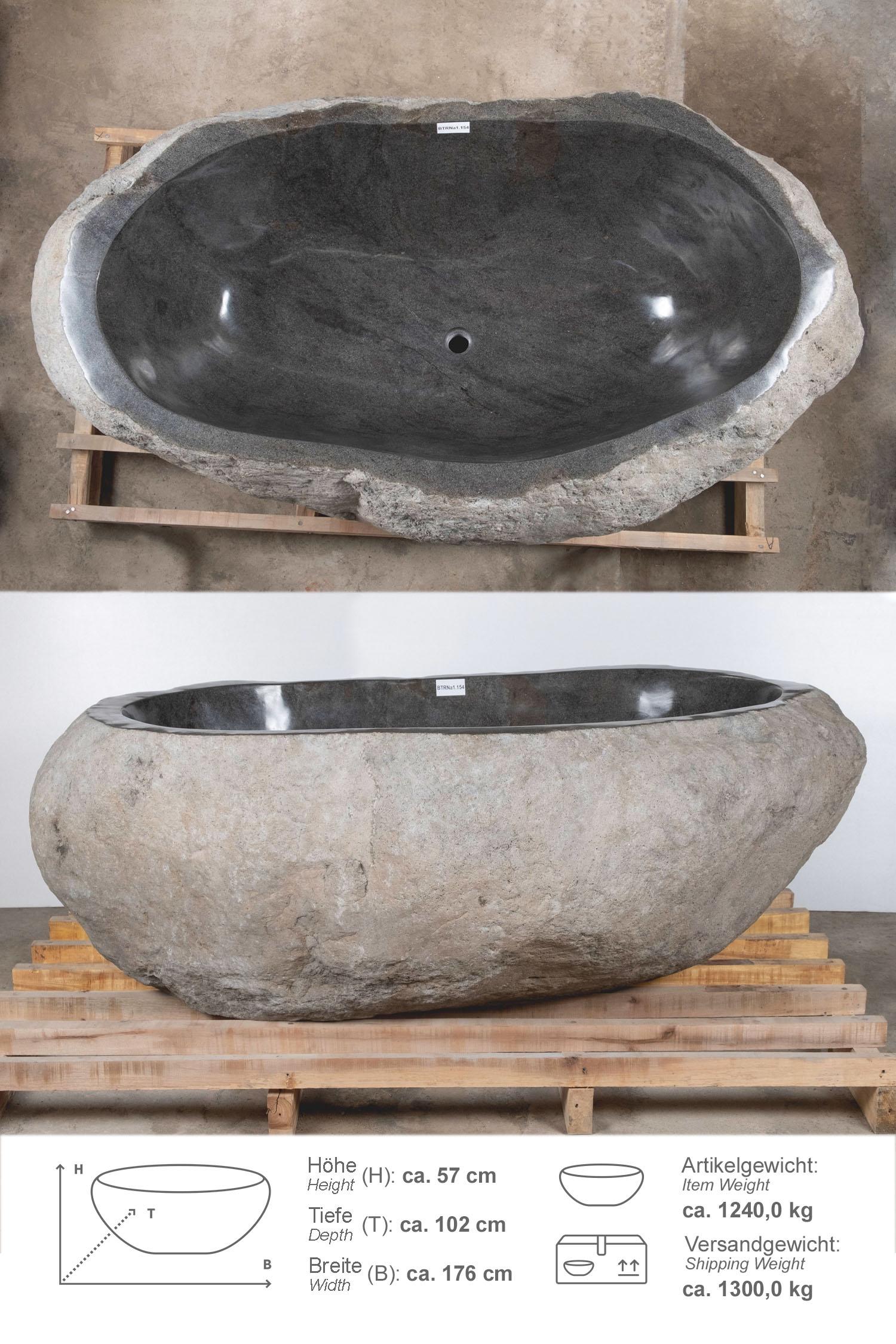 Beeindruckende Badewanne aus indonesischem Flussstein in Handarbeit gefertigt
