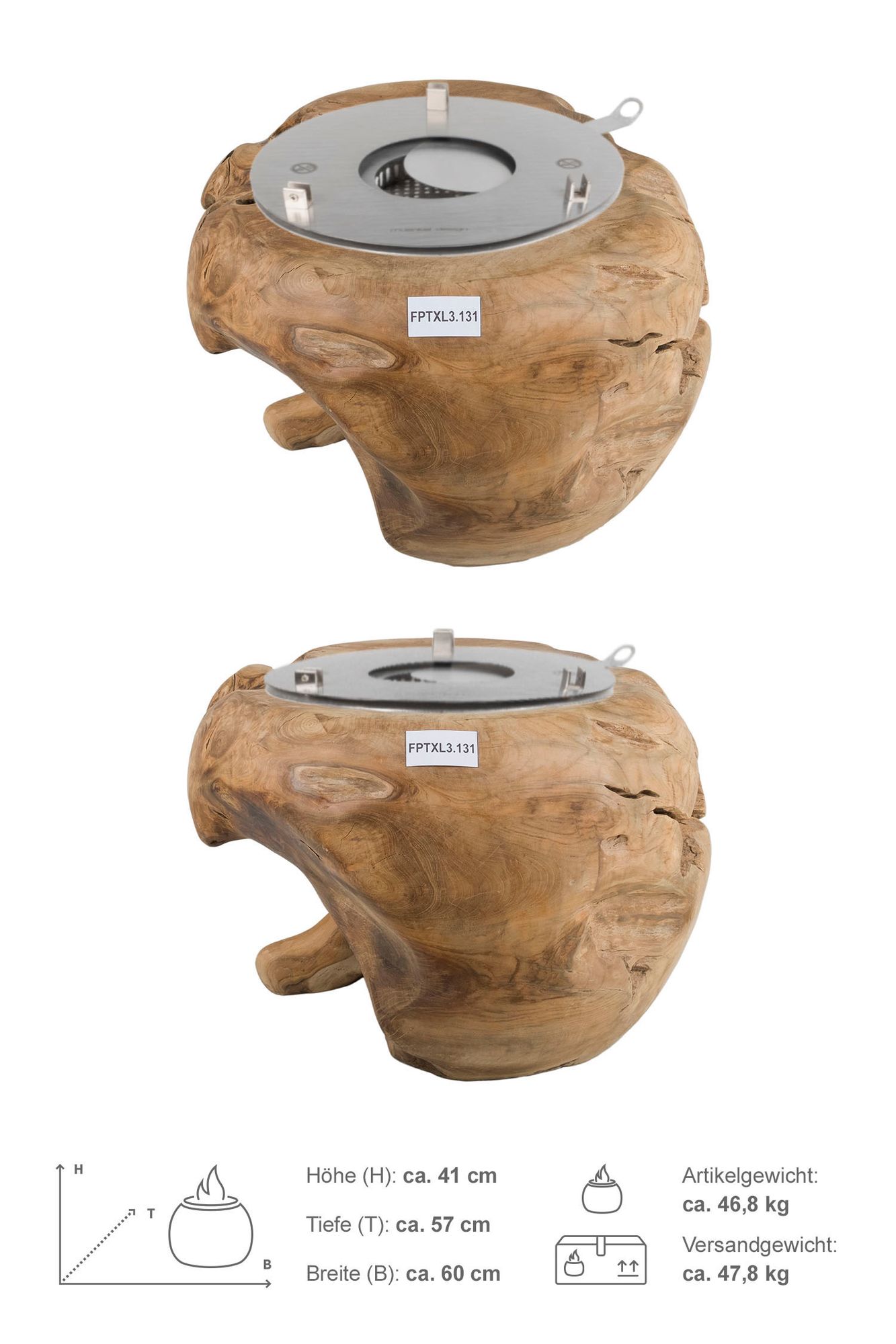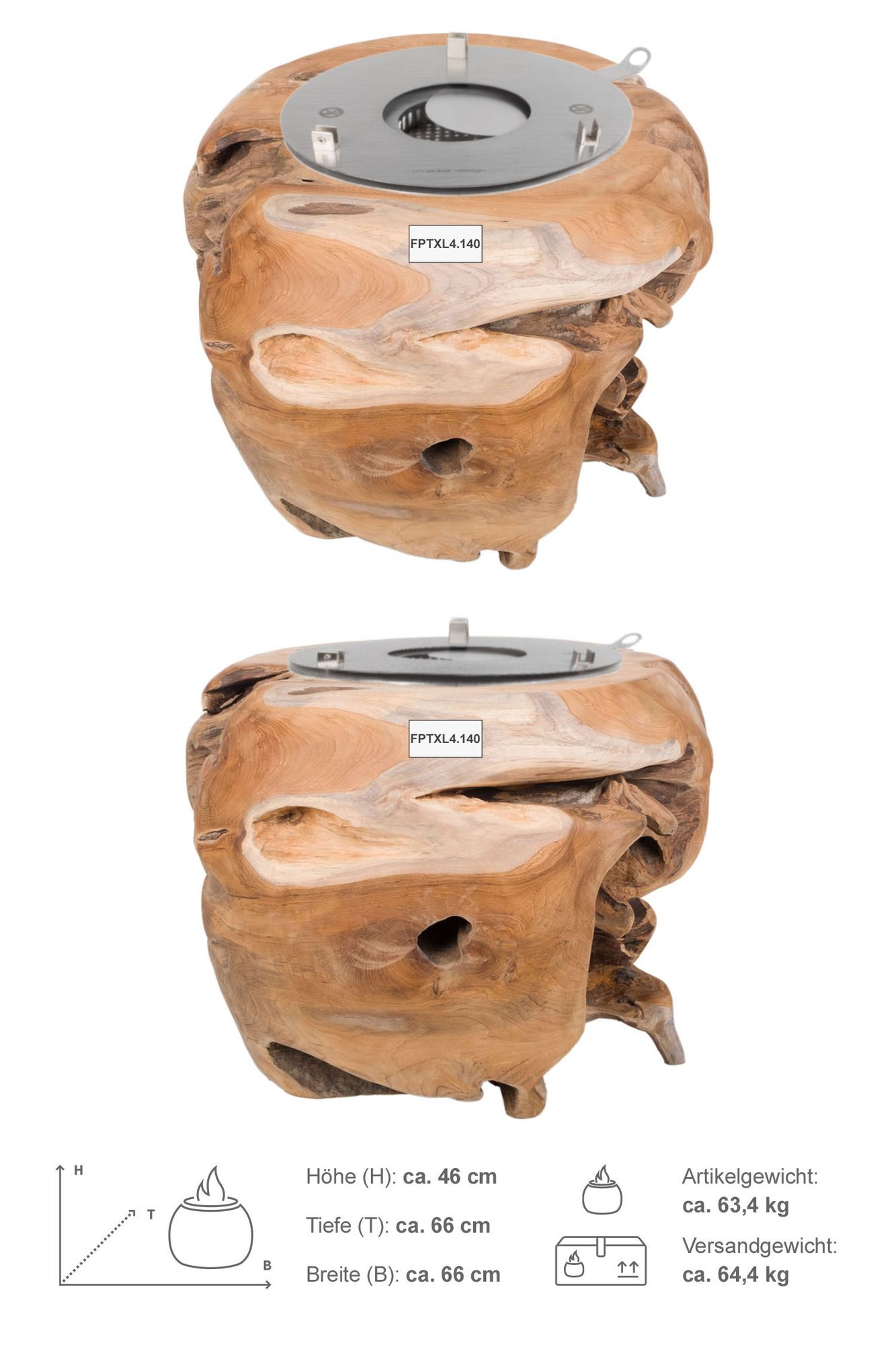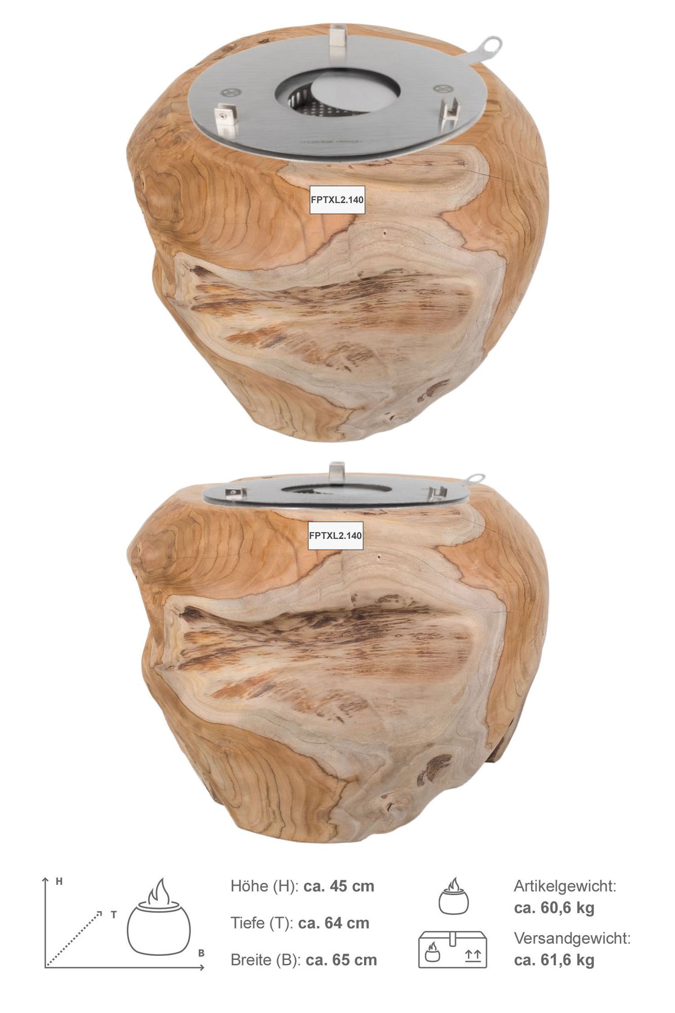 Ethanol Kamin mit Teakholz Kugel Ø 60 - 70 cm