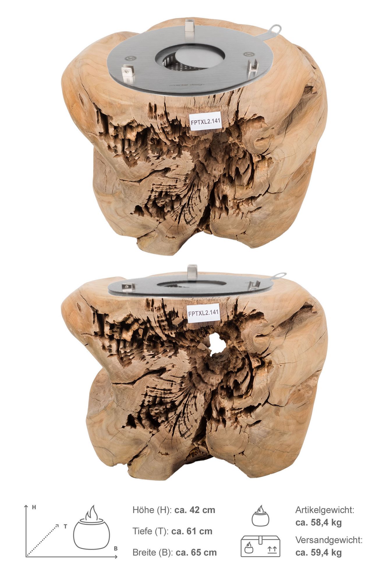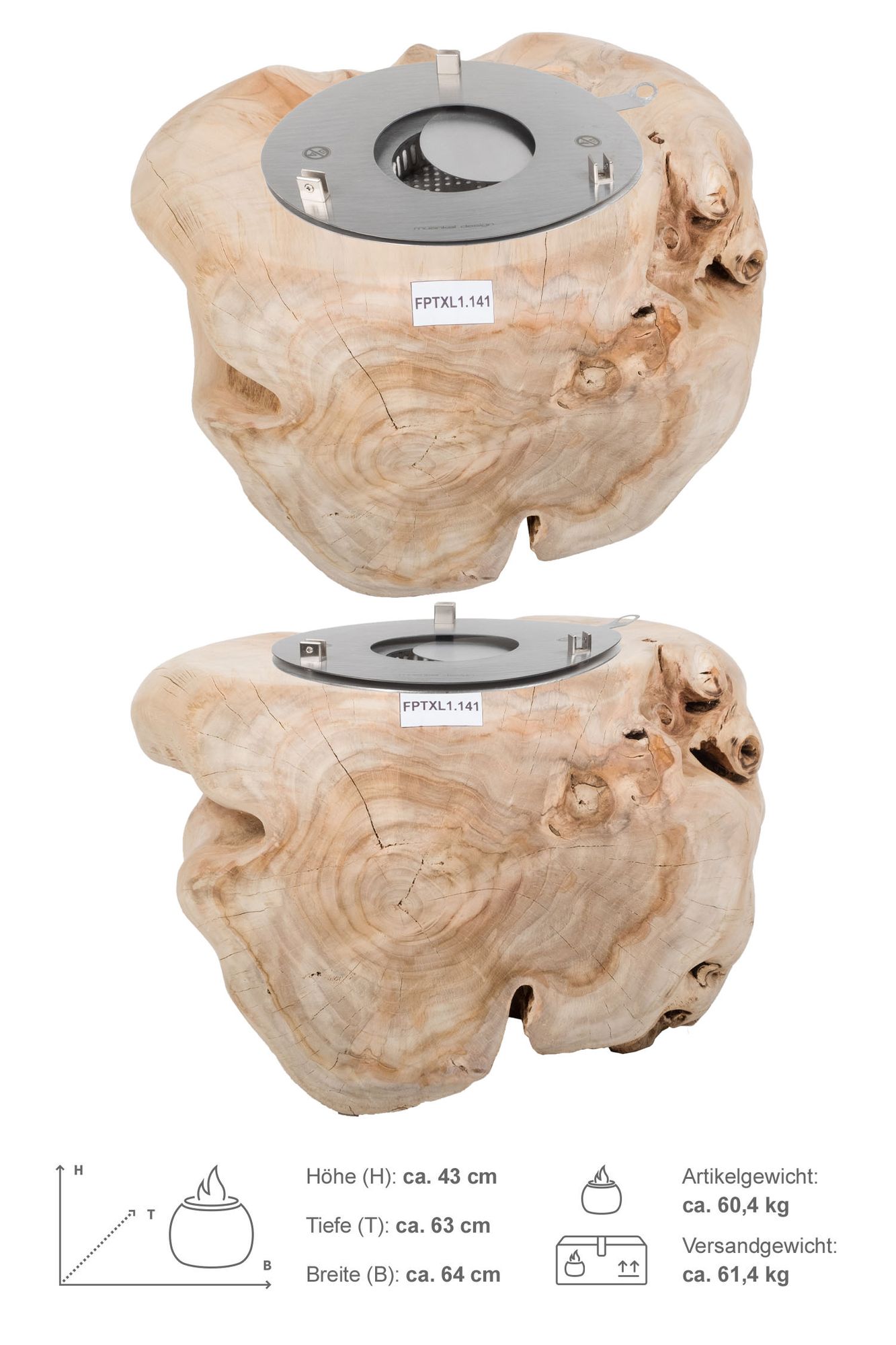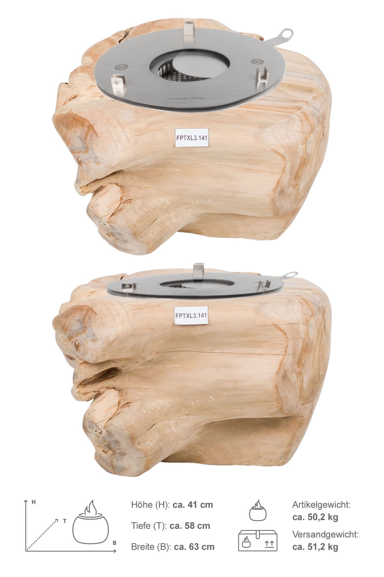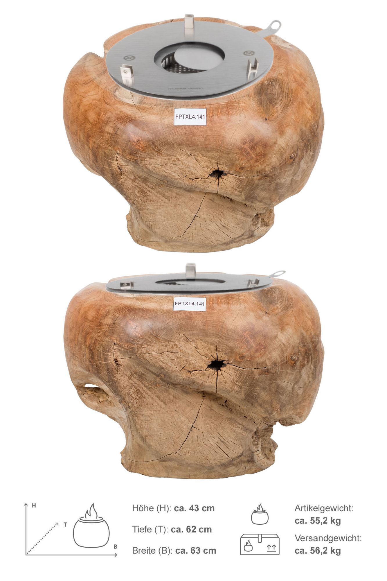 Ethanol Kamin mit Teakholz Kugel Ø 60 - 70 cm