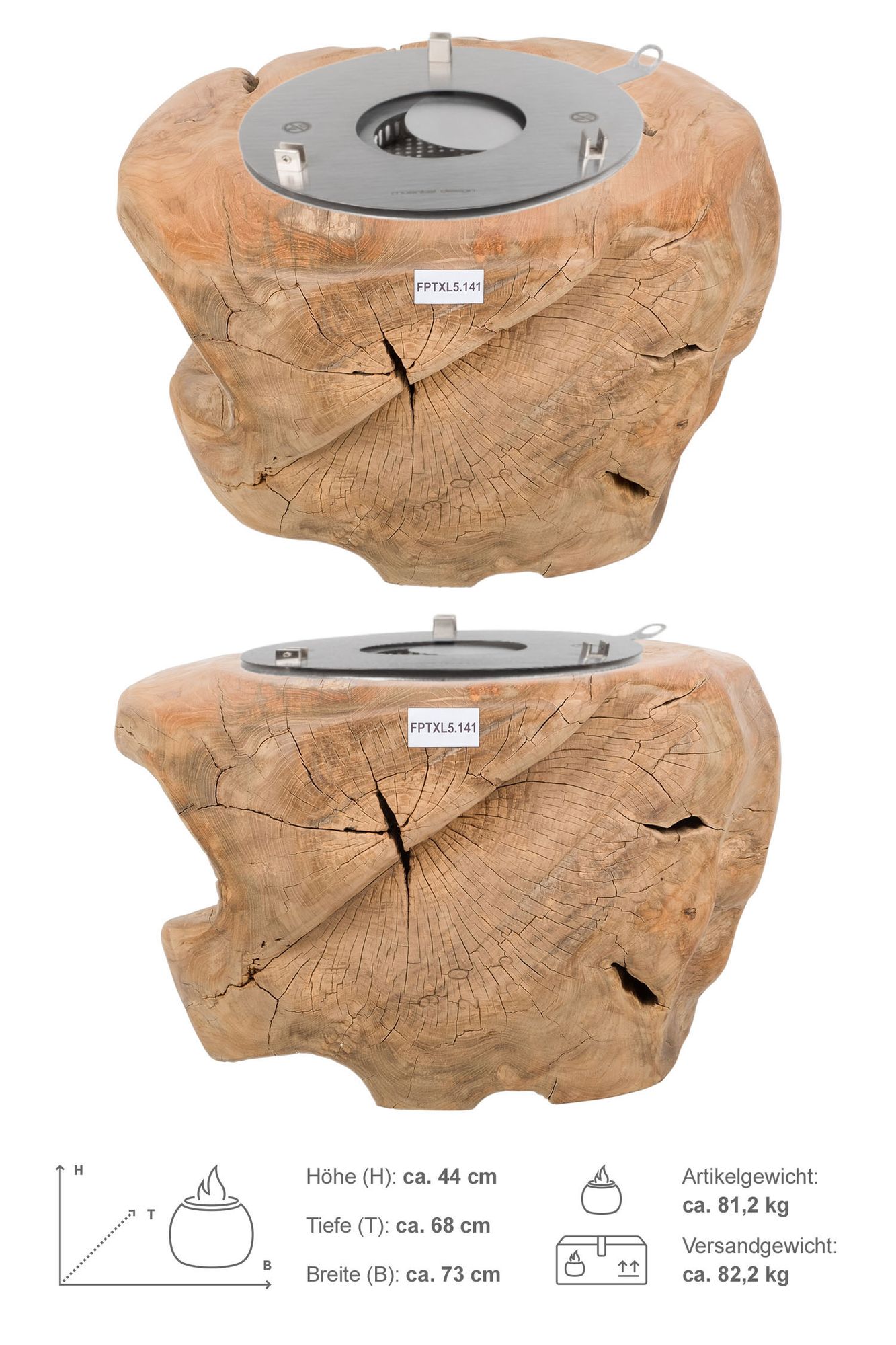 Bio Ethanol Kamin und Feuerstelle für Outdoor und Indoor mit Massivholzkugel aus Teakholz.