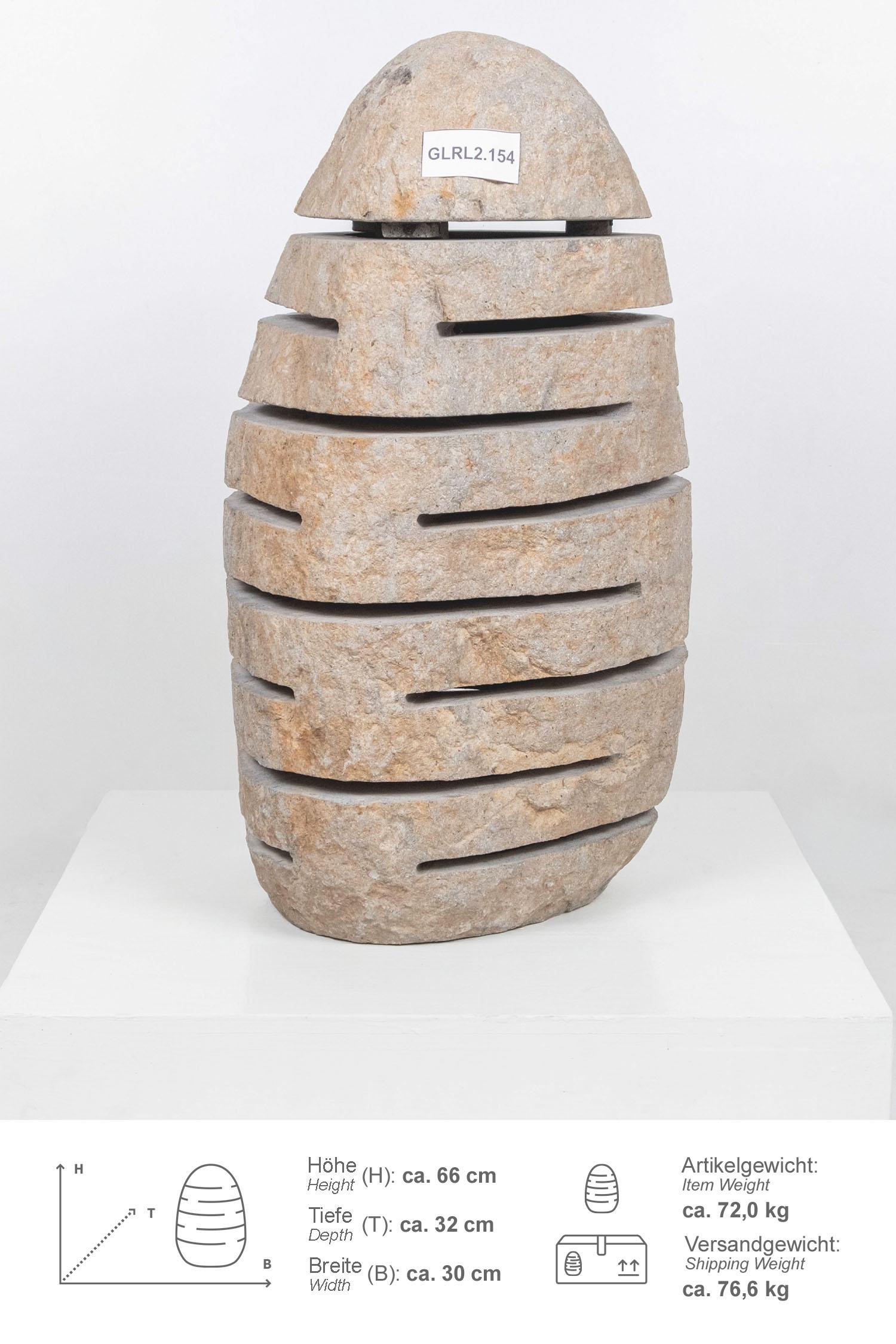 Diese Steinlampe / Windlicht wurde aus einem Flussstein Findling geschlagen, wodurch der Naturstein unempfindlich und pflegeleicht ist.