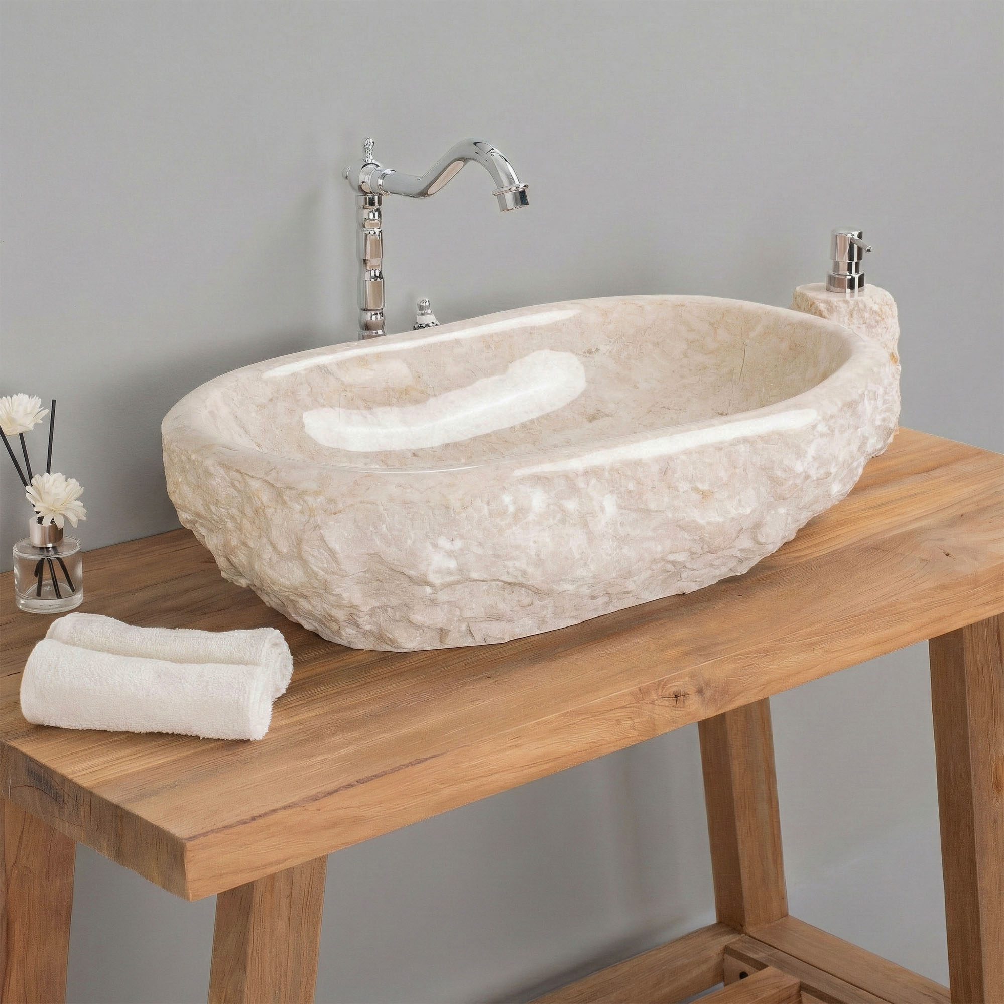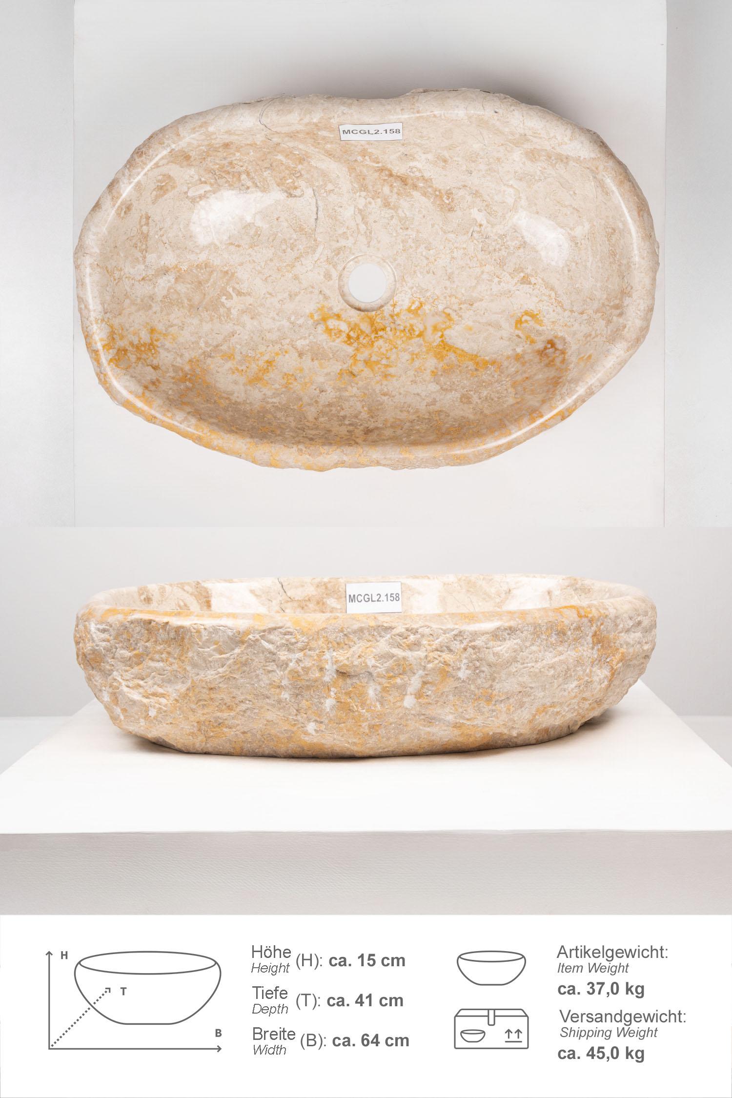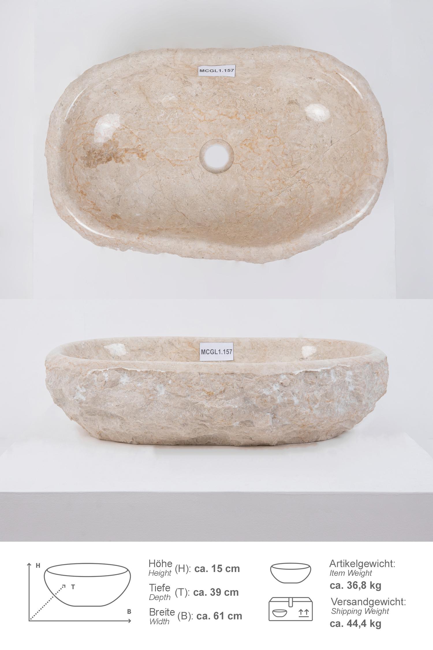 Erosi Marmor Waschbecken creme 60 cm mit abgerundeter Kante