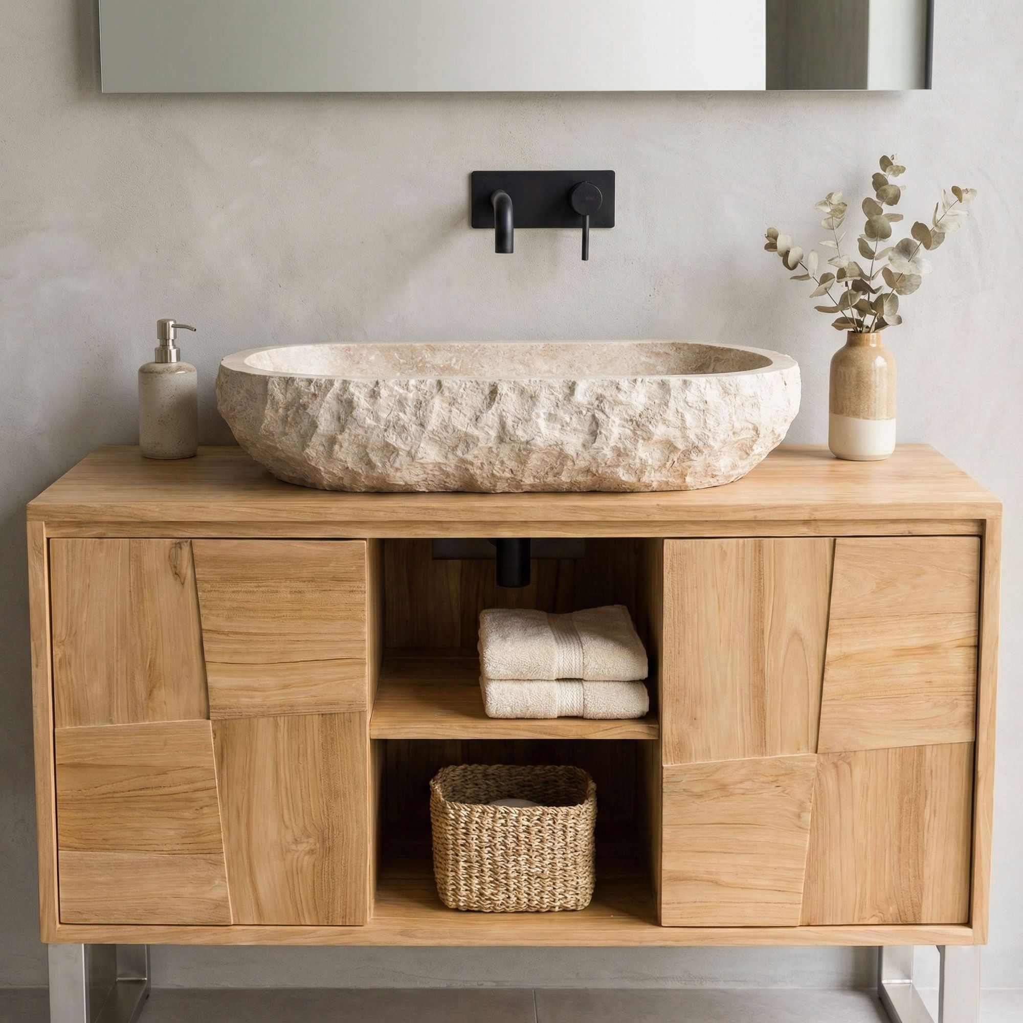 Erosi Marmor Waschbecken creme mit gerader Rückwand 80 cm