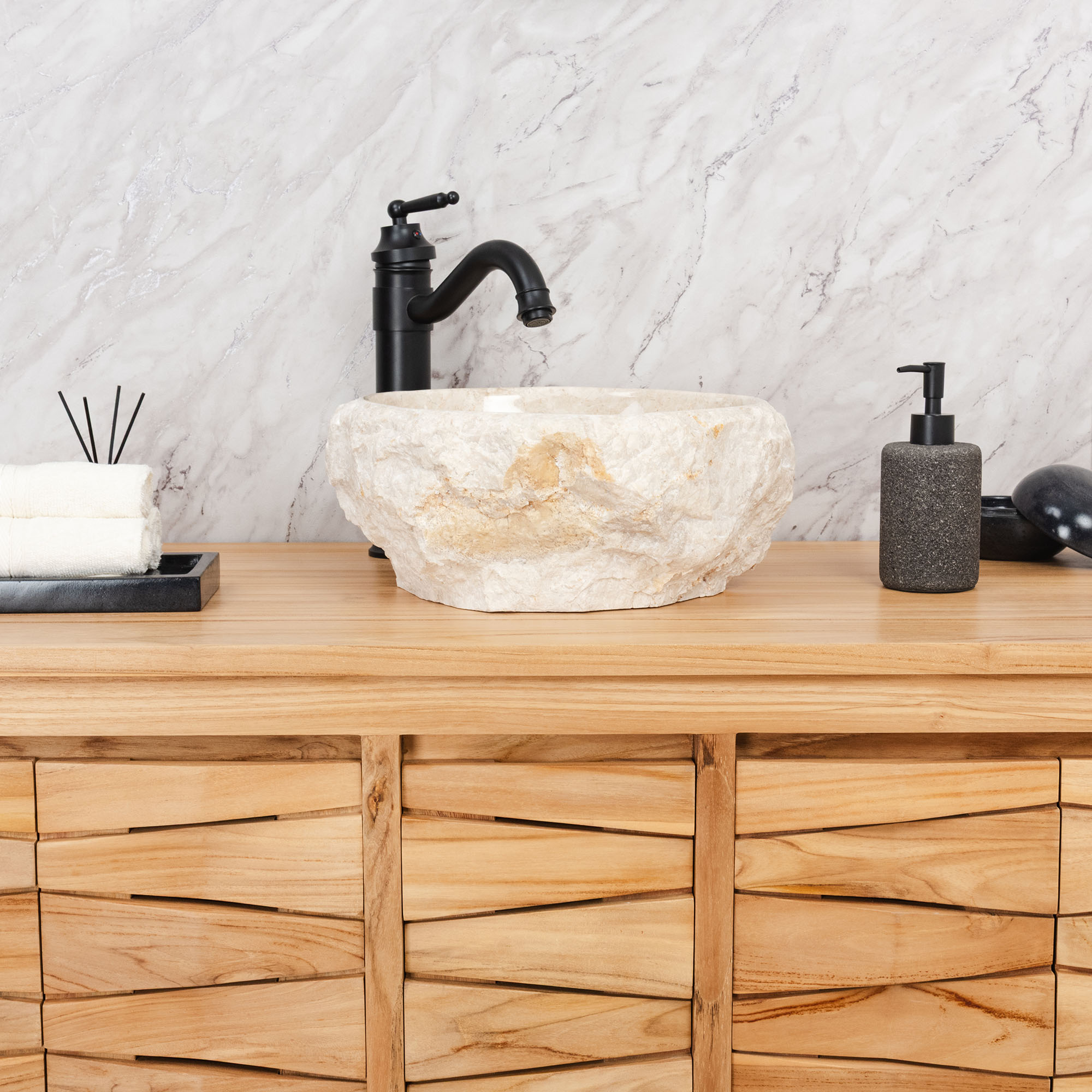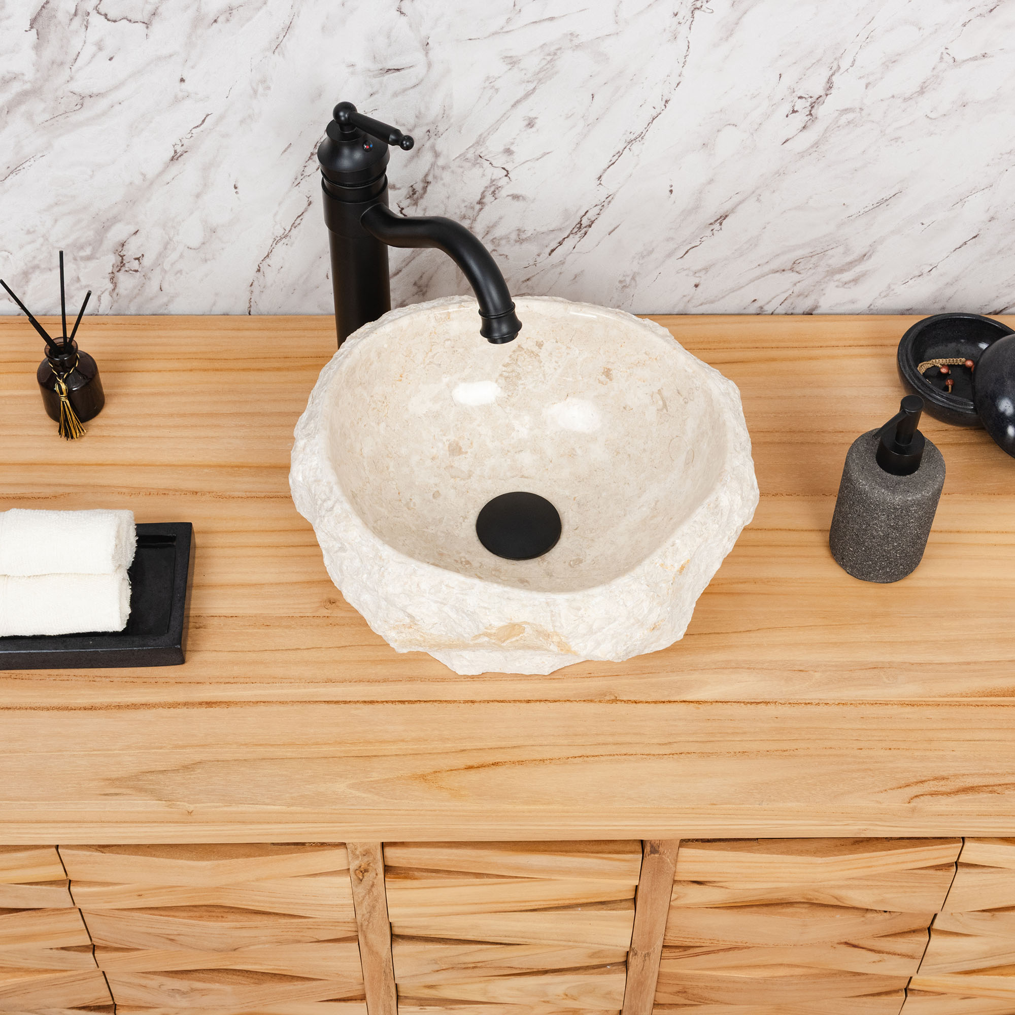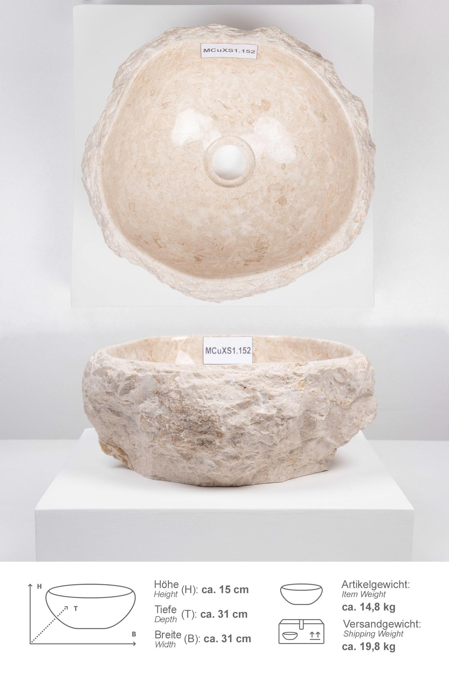 Erosi Marmor Waschbecken mit Naturkante 30 cm creme