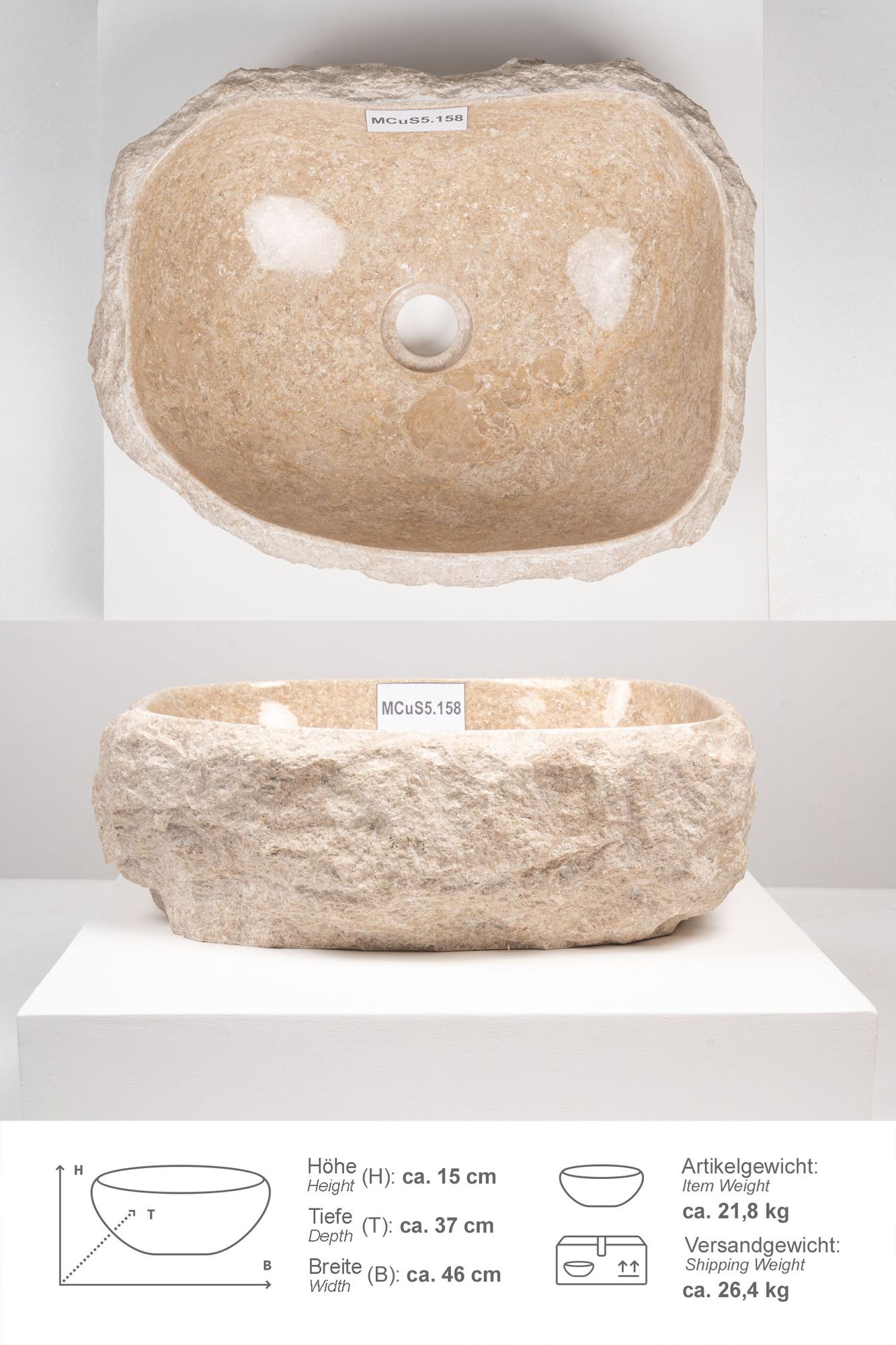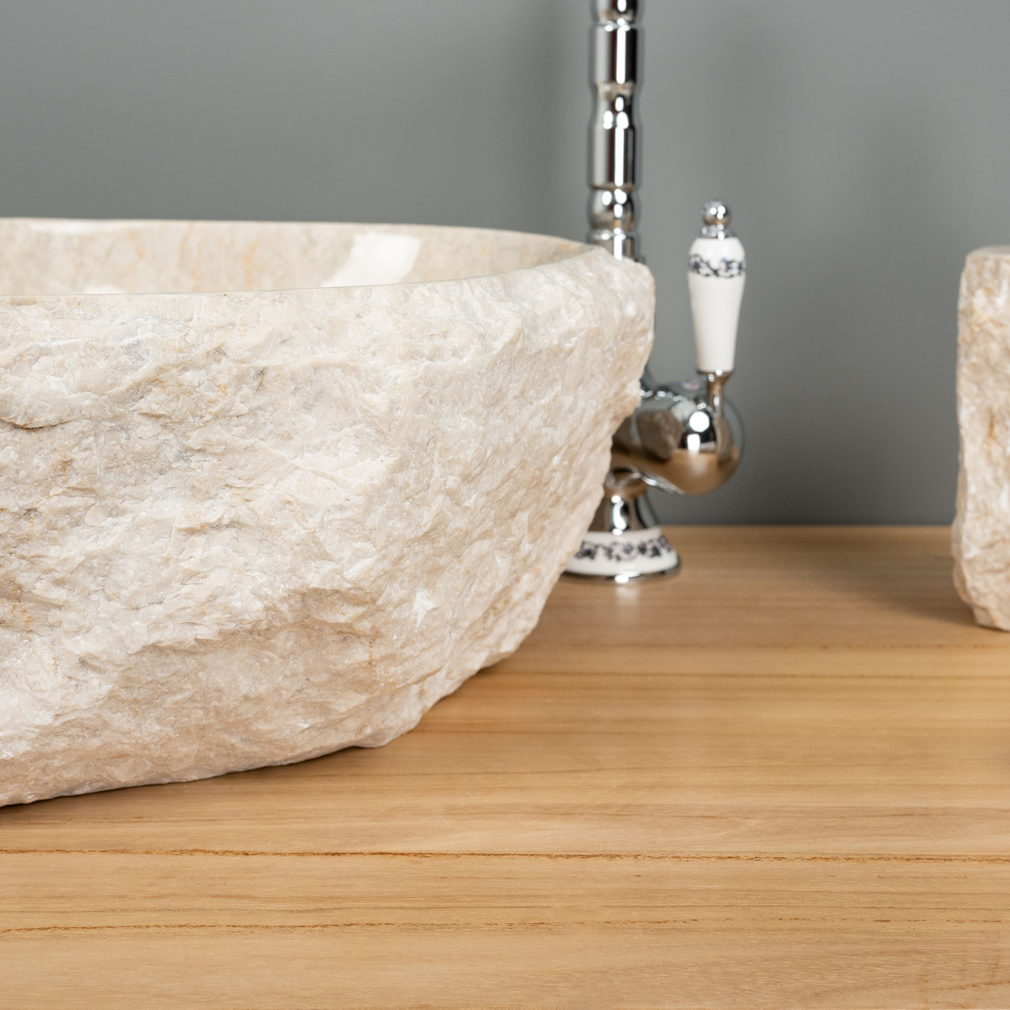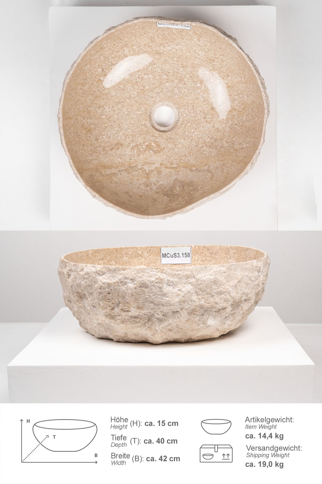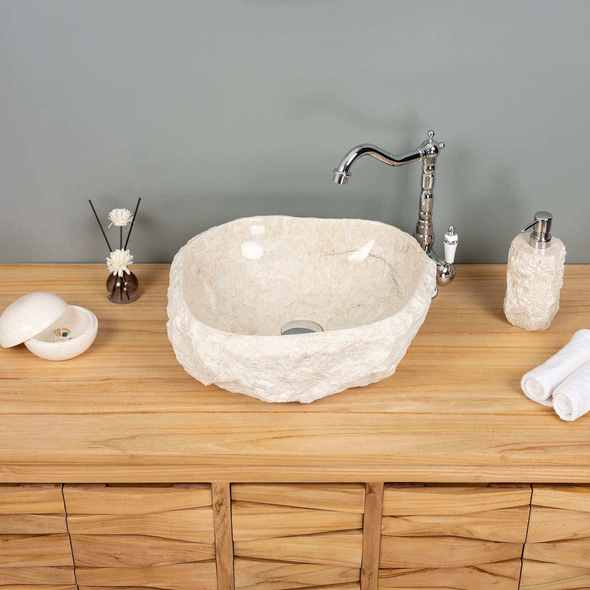 Erosi Marmor Waschbecken mit Naturkante 40 cm creme