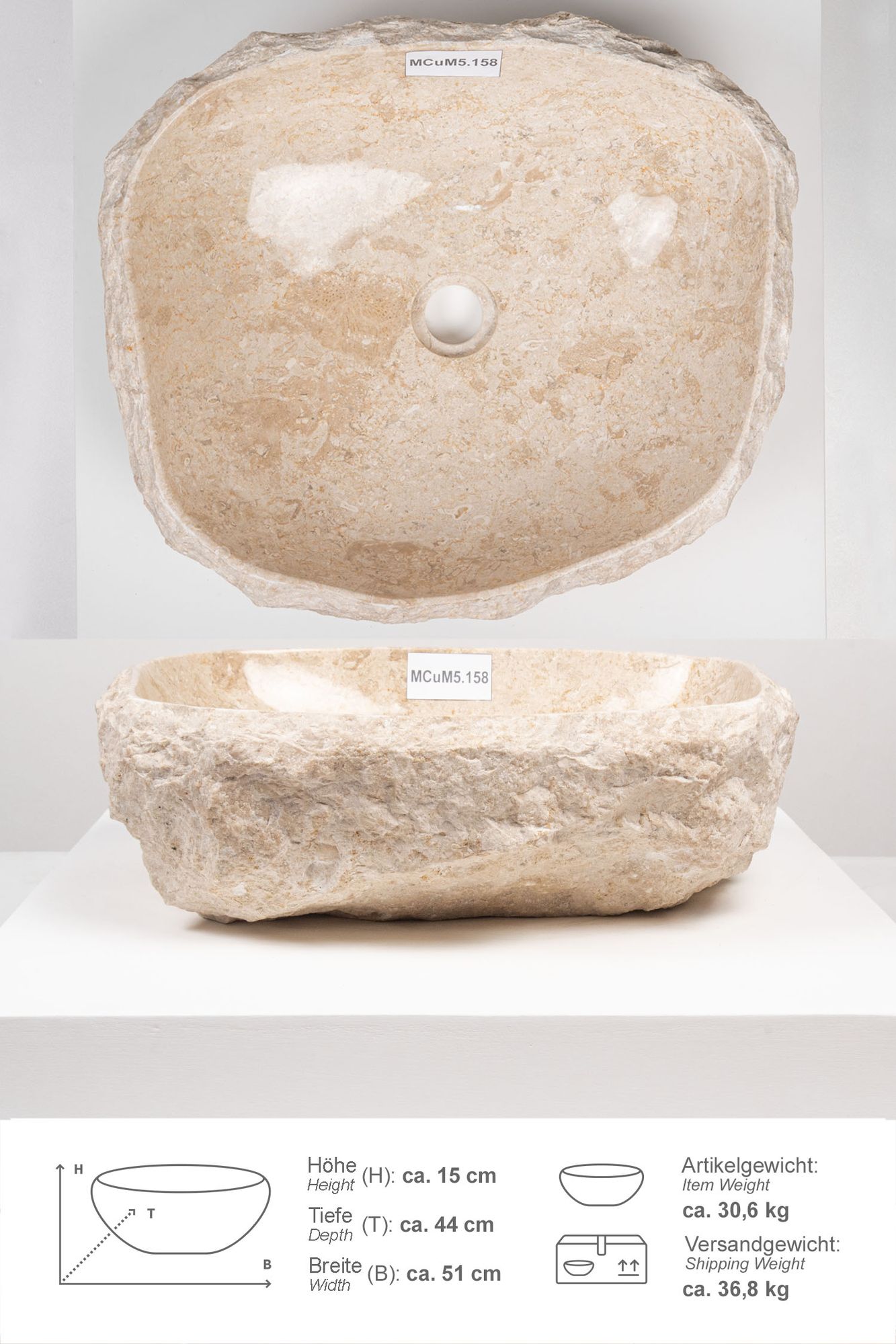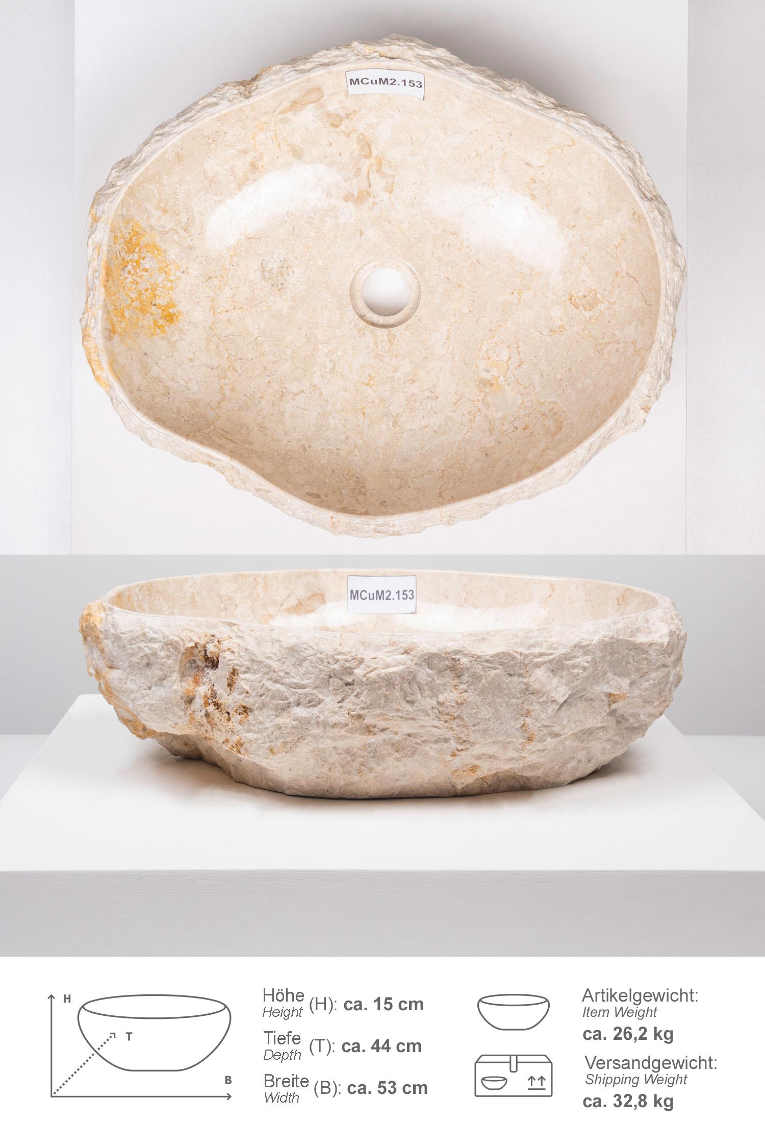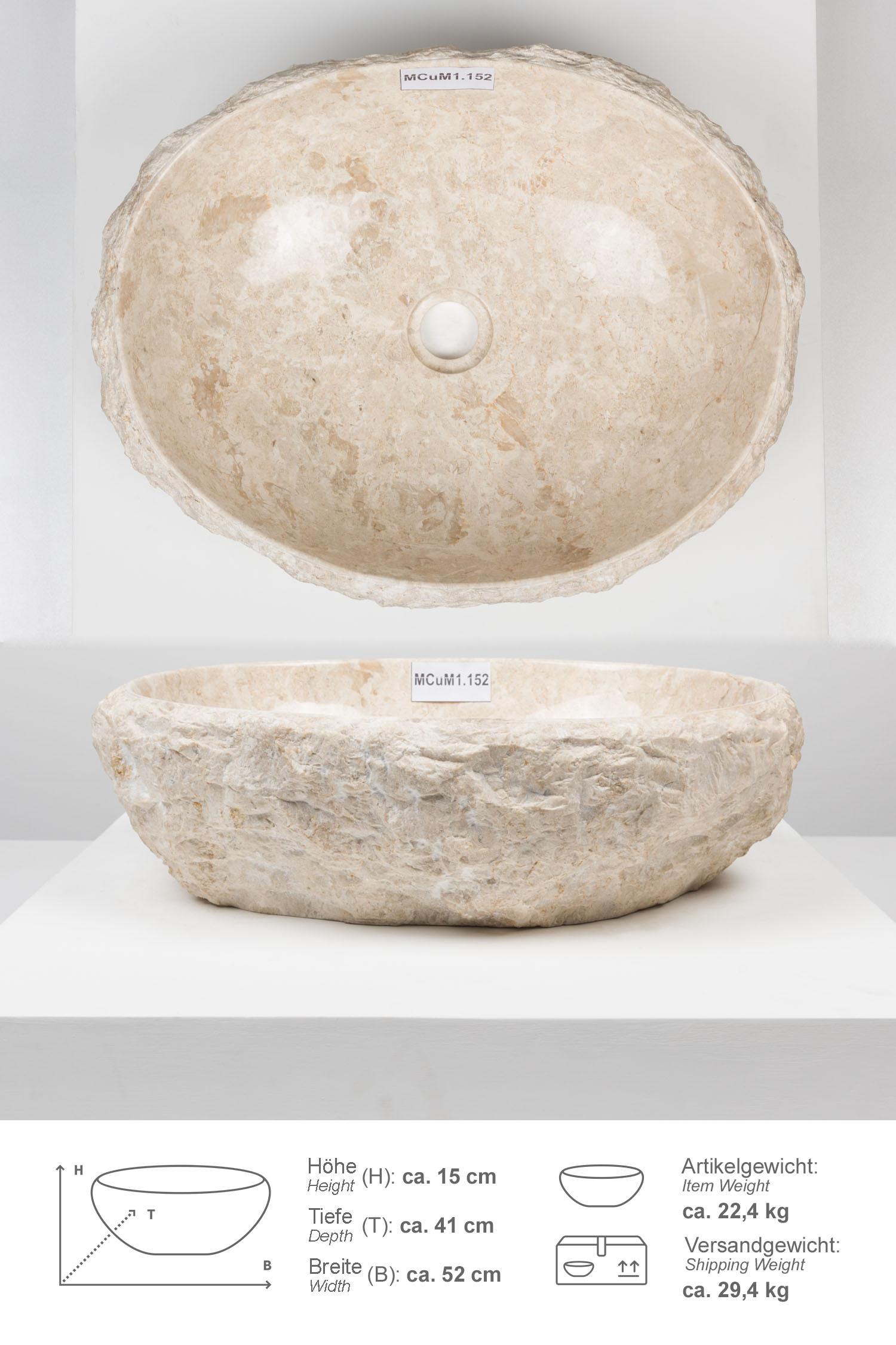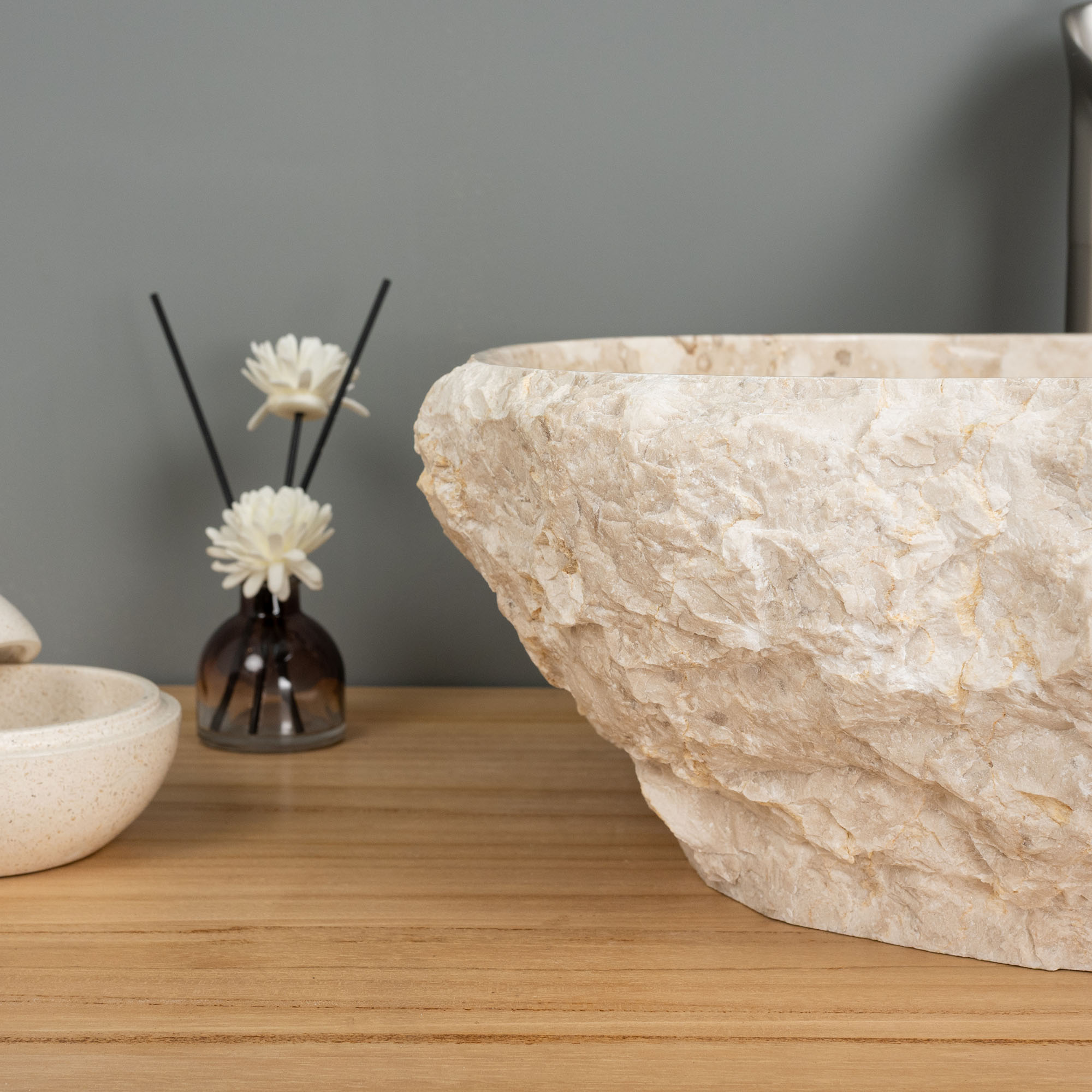 Erosi Marmor Waschbecken mit Naturkante 50 cm creme