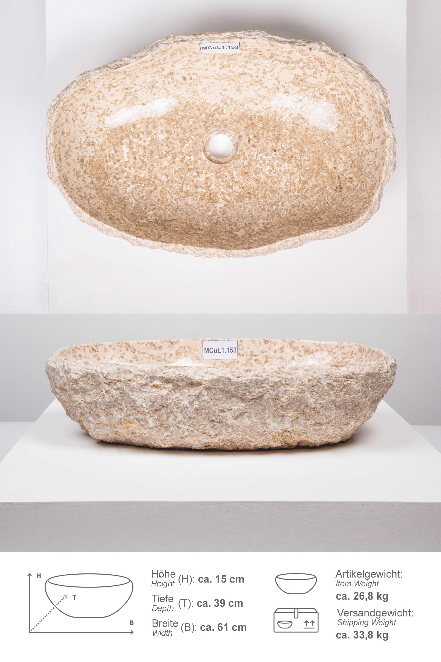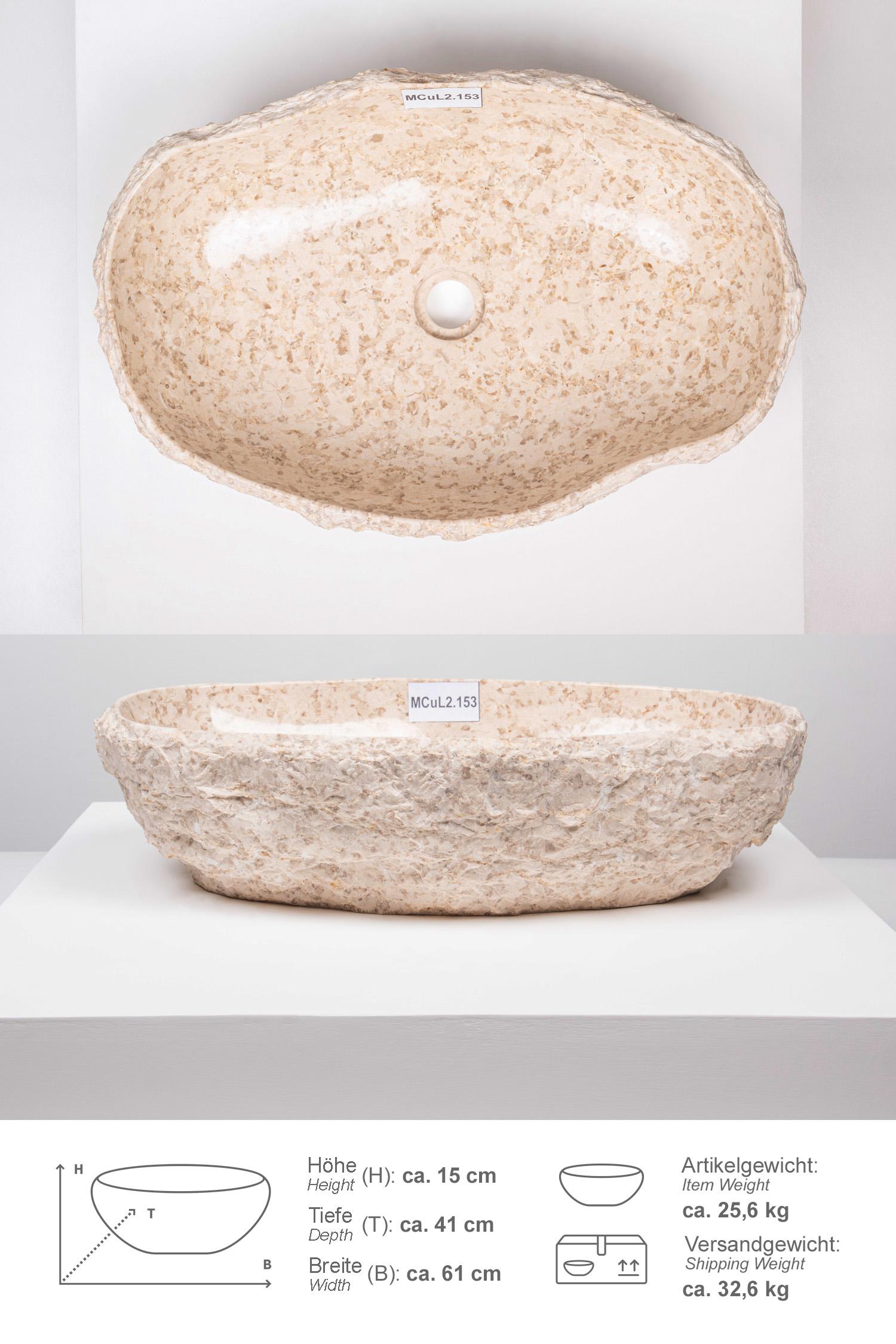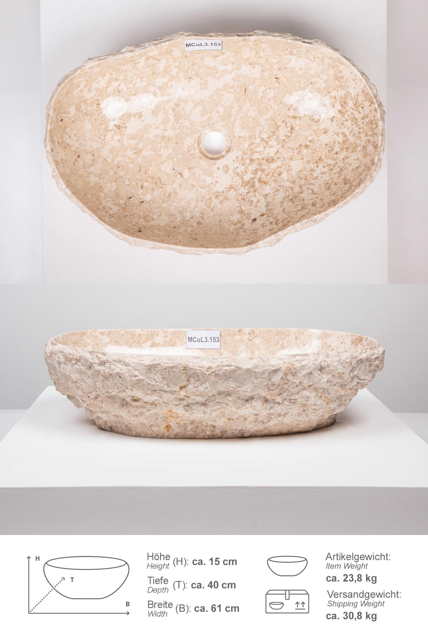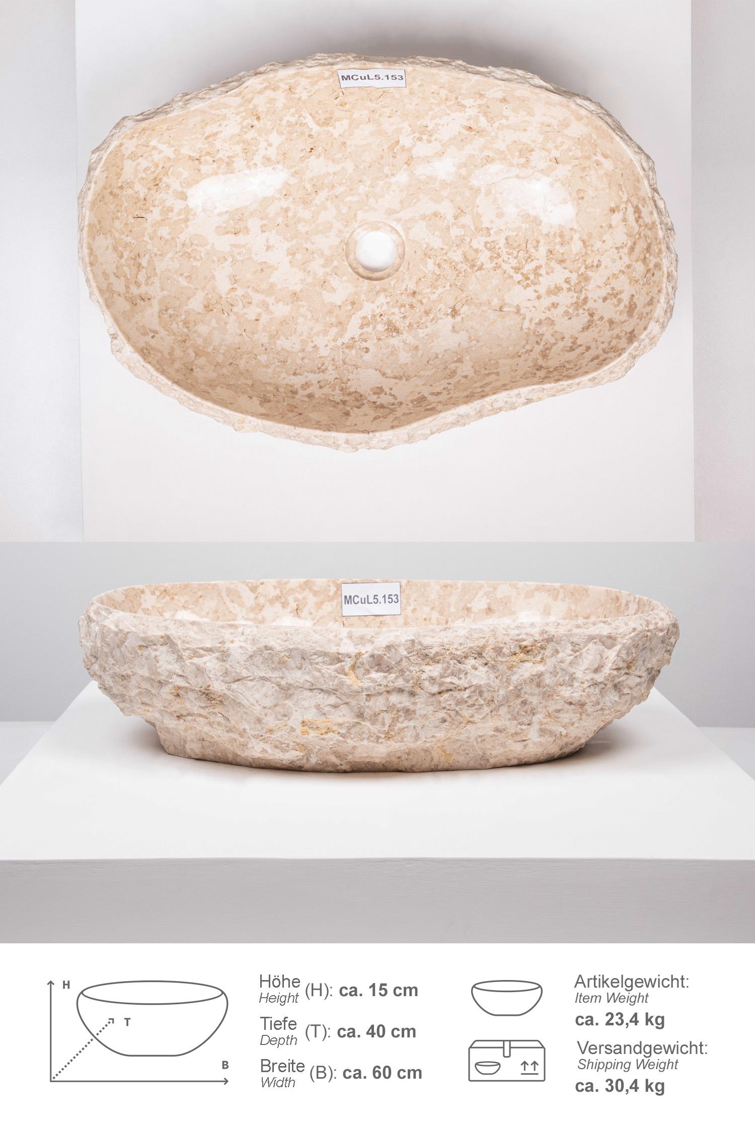 Erosi Marmor Waschbecken mit Naturkante 60 cm creme