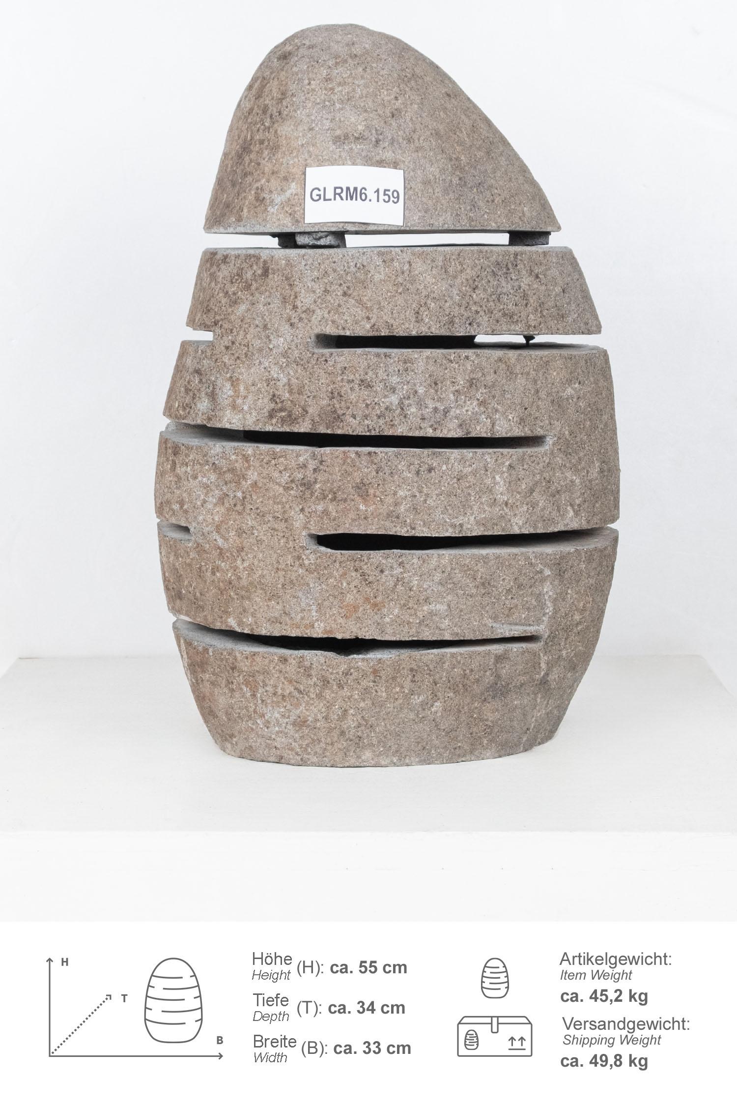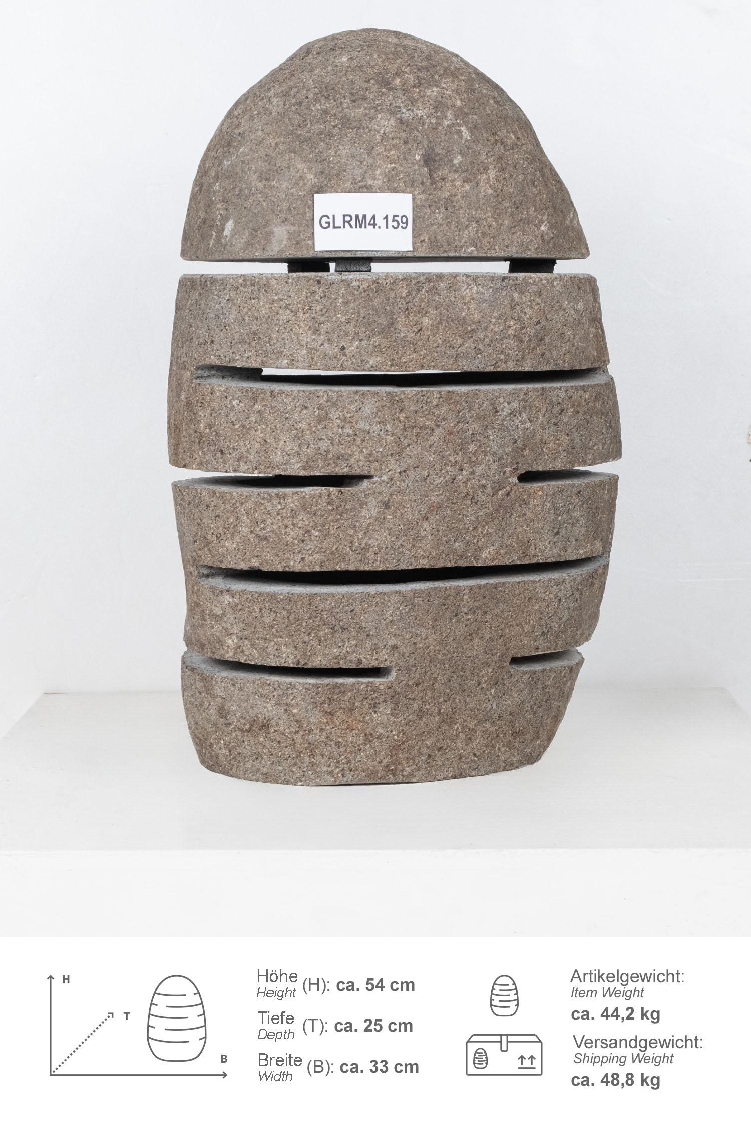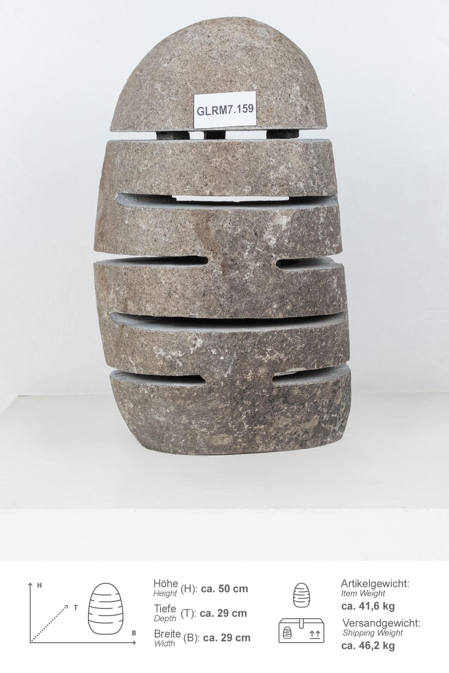 Diese Steinlampe / Windlicht wurde aus einem Flussstein Findling geschlagen, wodurch der Naturstein unempfindlich und pflegeleicht ist.