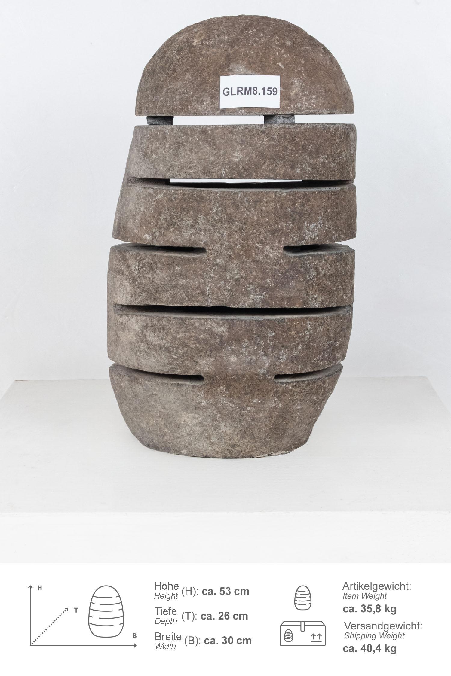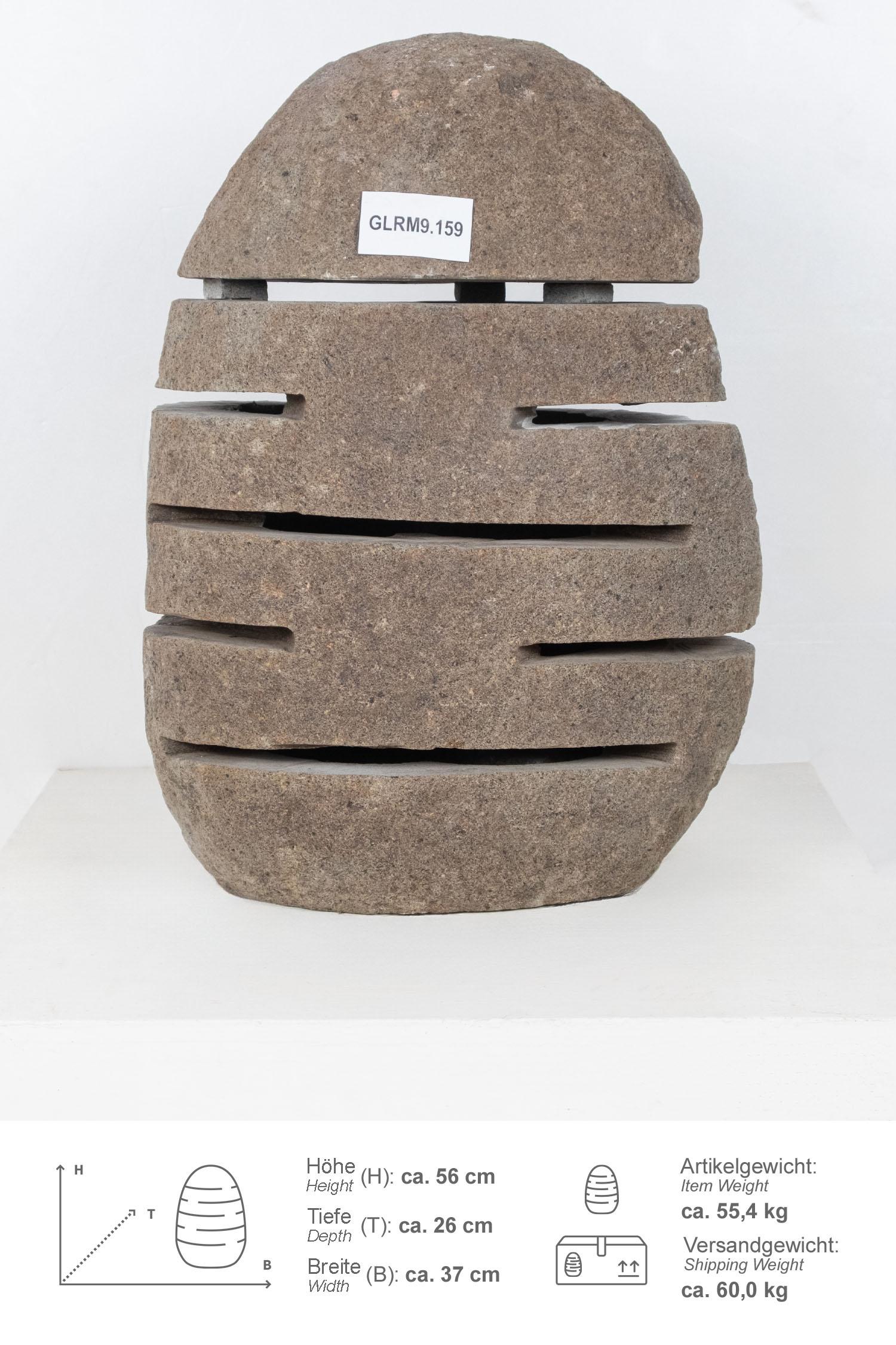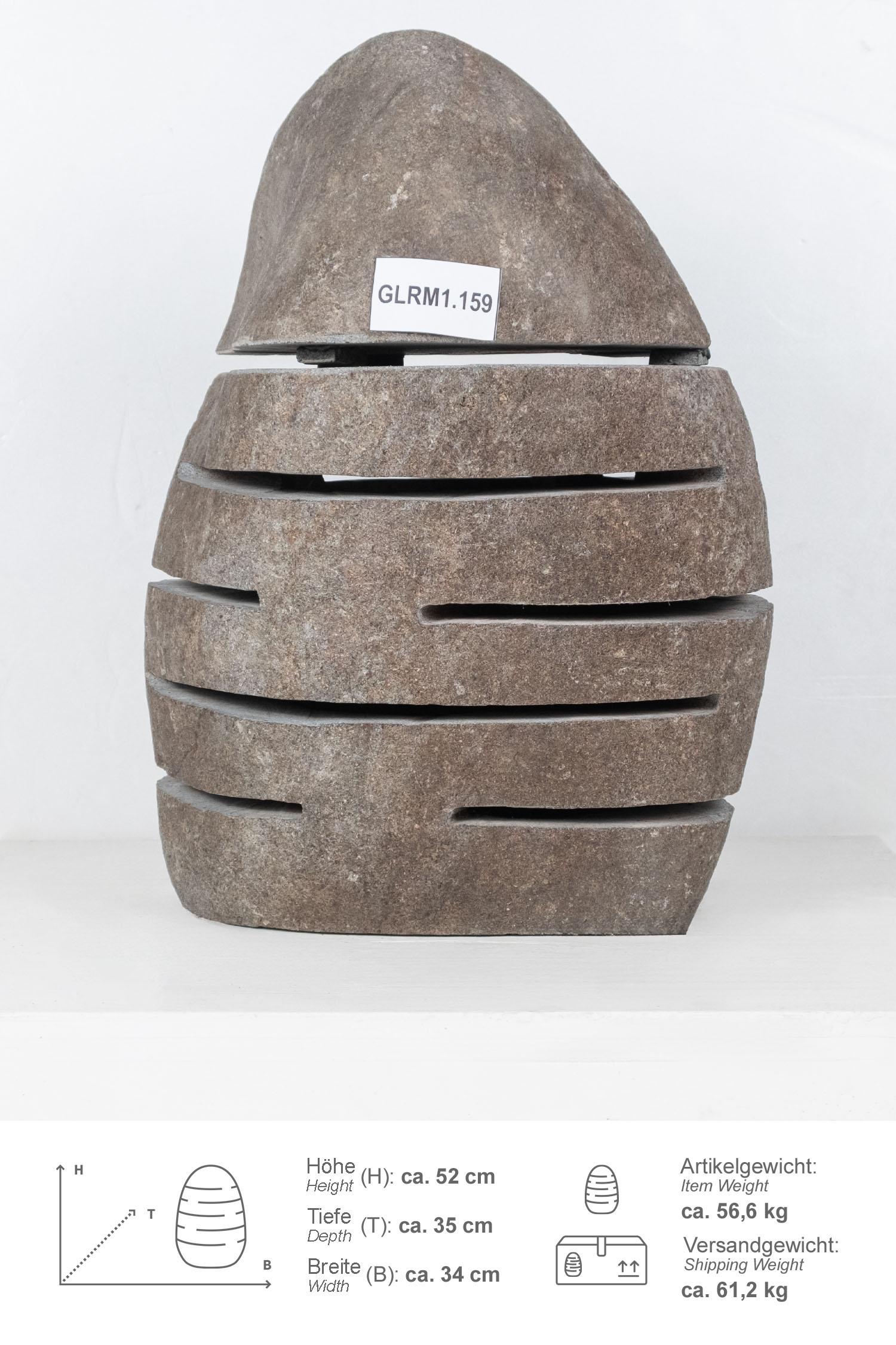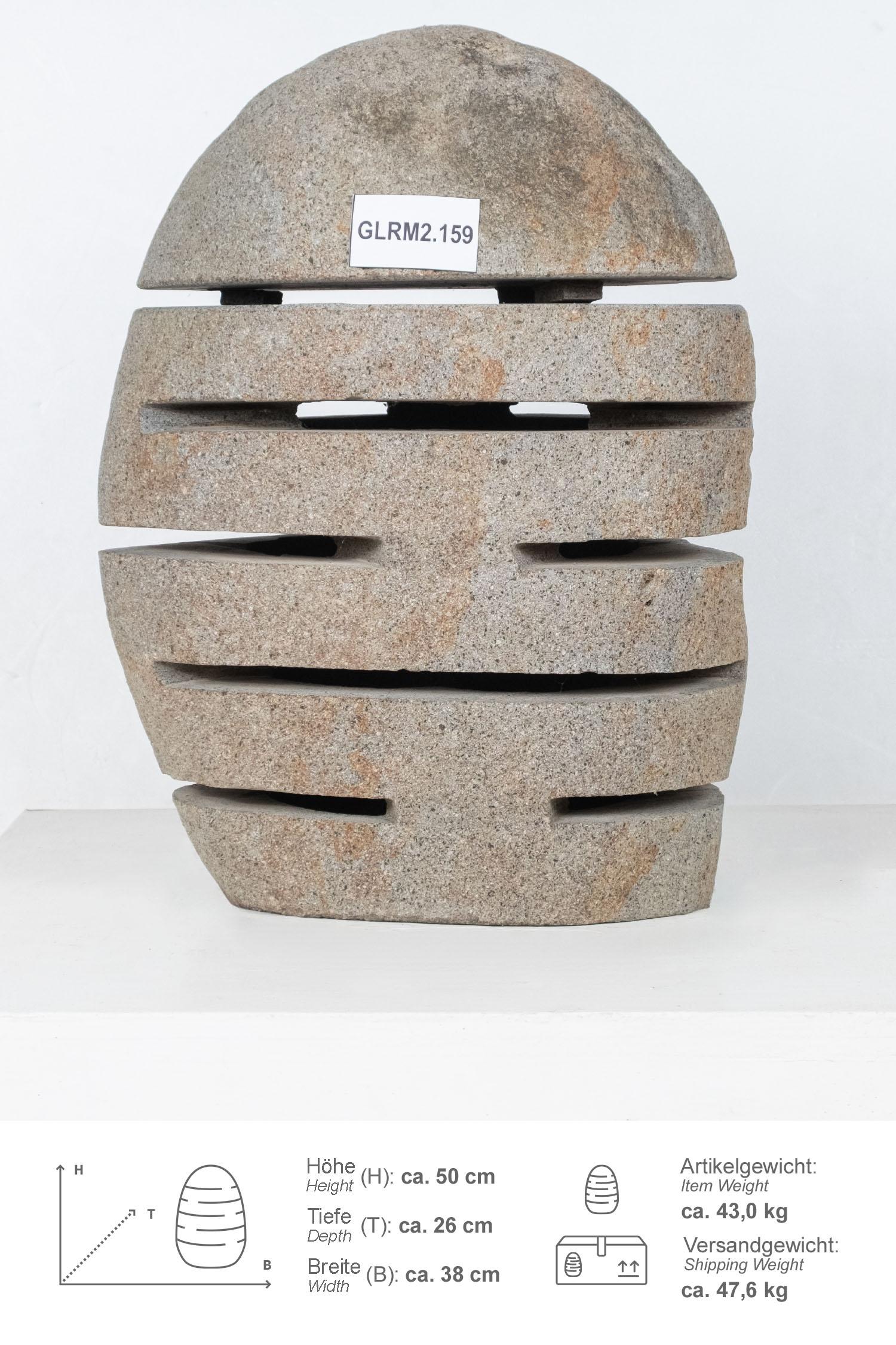 Diese Steinlampe / Windlicht wurde aus einem Flussstein Findling geschlagen, wodurch der Naturstein unempfindlich und pflegeleicht ist.