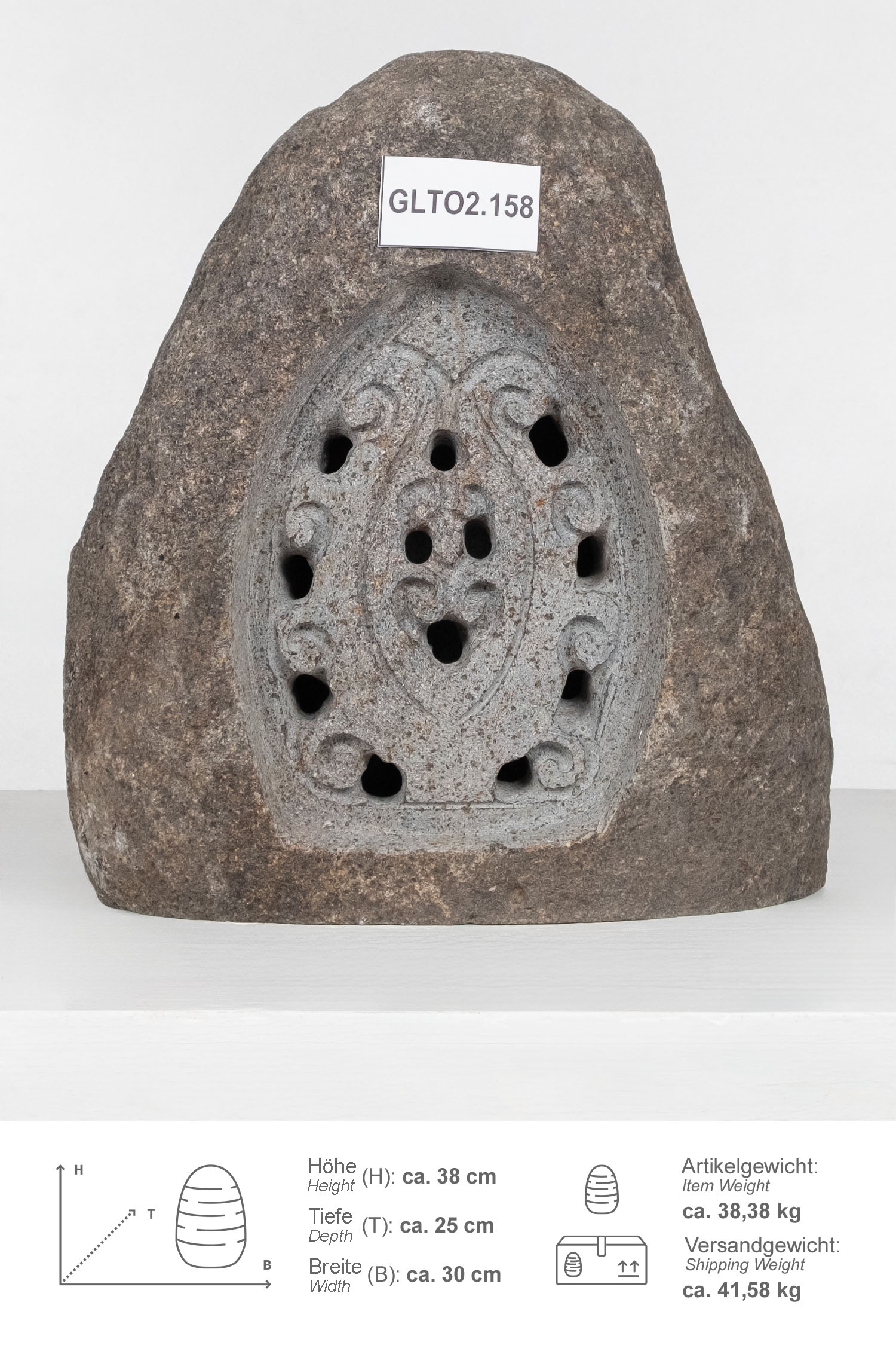 Diese Steinlampe / Windlicht wurde aus einem Flussstein Findling geschlagen, wodurch der Naturstein unempfindlich und pflegeleicht ist.