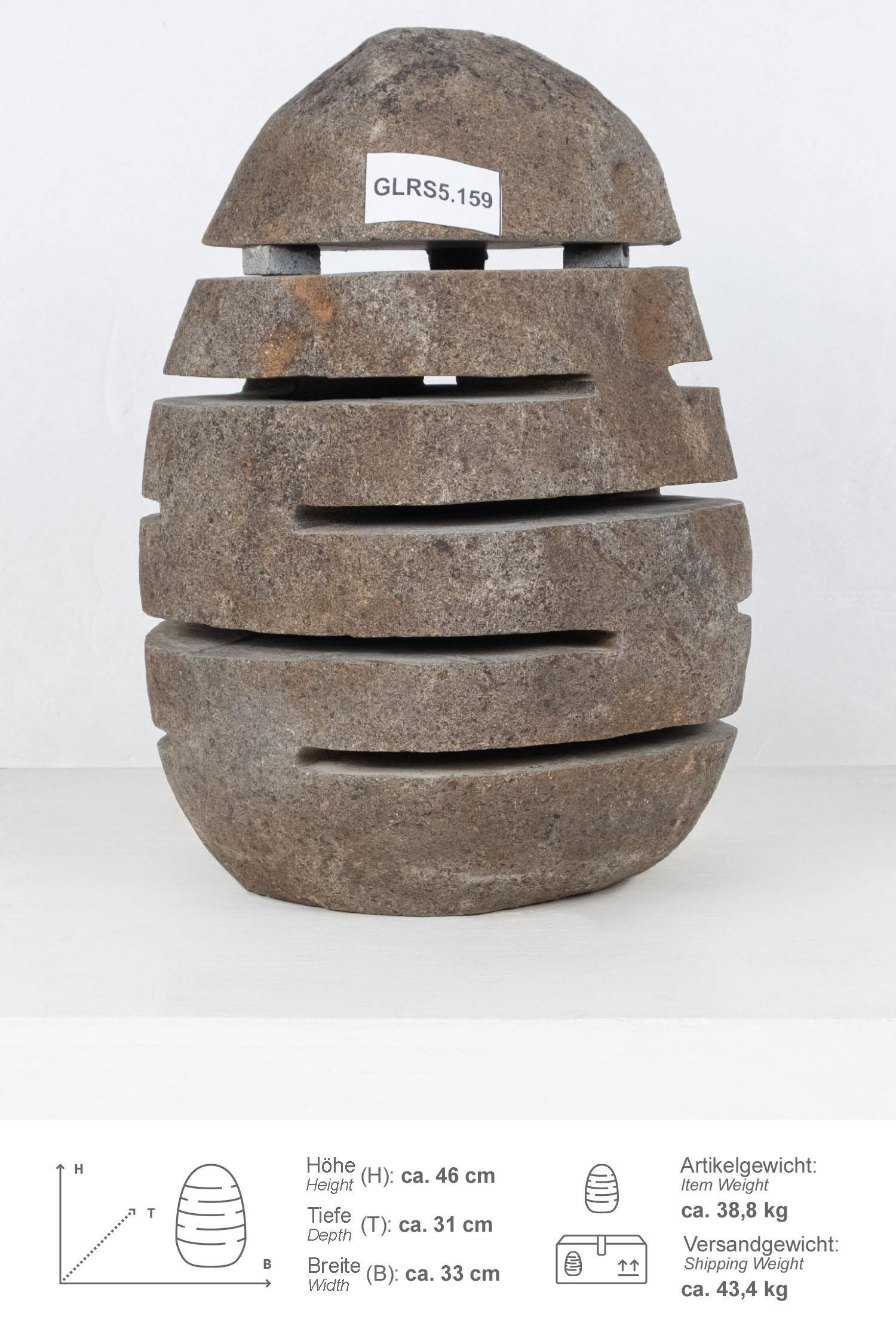 Diese Steinlampe / Windlicht wurde aus einem Flussstein Findling geschlagen, wodurch der Naturstein unempfindlich und pflegeleicht ist.