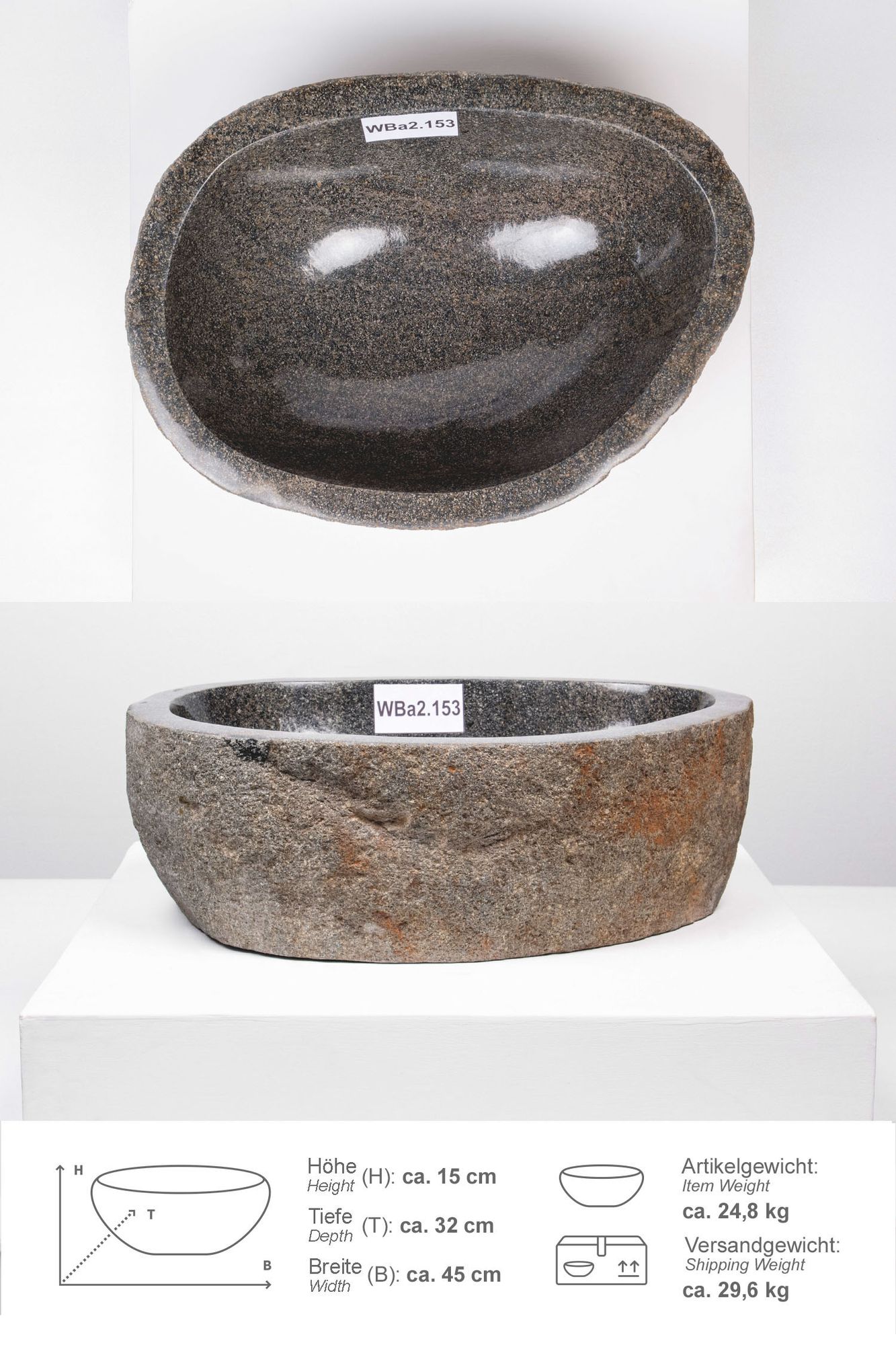 Jeder Flußstein hat über Jahrtausende, einen langen Weg durch die Tropenflüße Indonesiens bis in Ihr Zuhause zurückgelegt. Unterschiede in Farbgebung, Schattierung und Struktur sind das Zeichen für die Individualität einer jeden Schale.