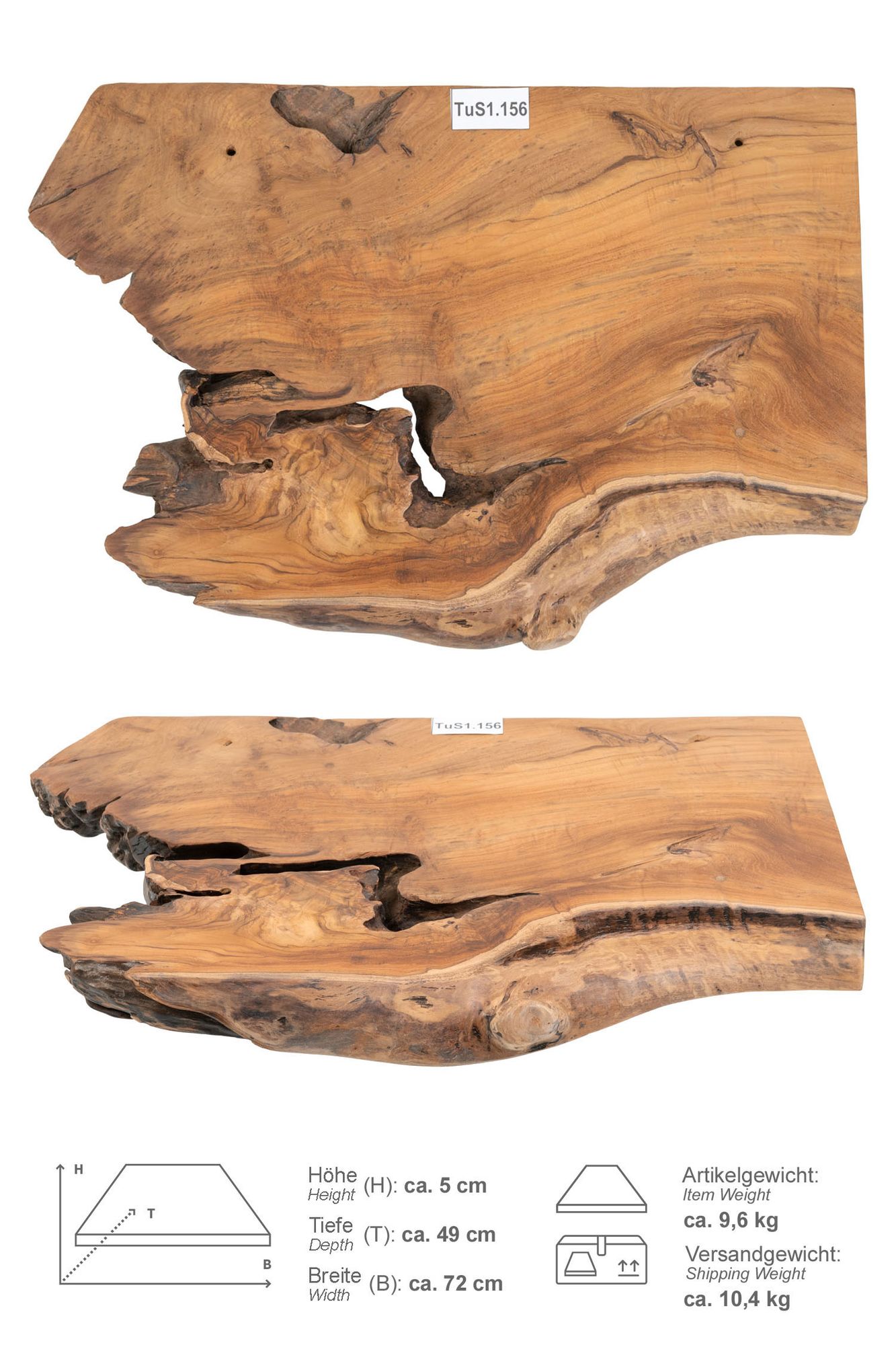 Im Lieferumfang erhalten Sie Ihre ausgewählte Teakholz-Waschtischplatte.
