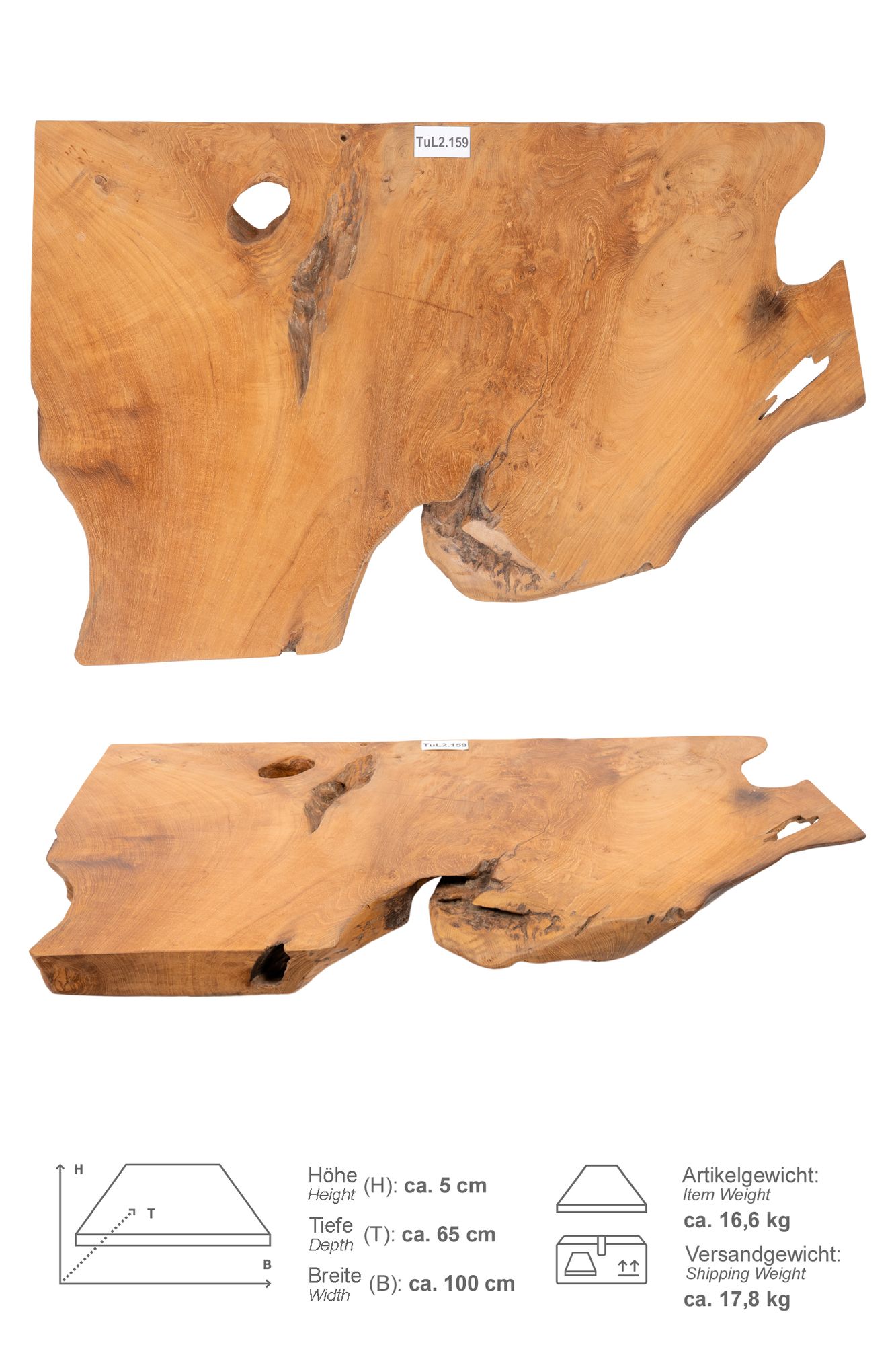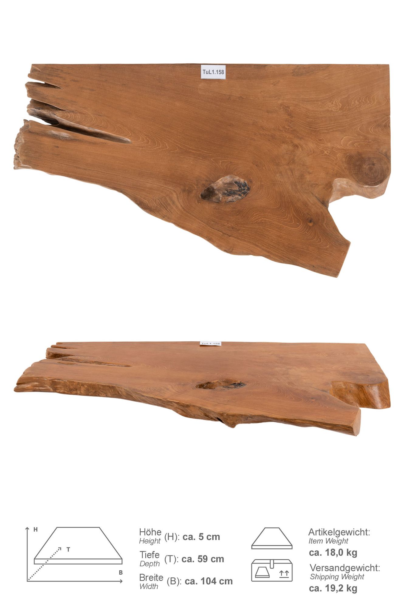 Im Lieferumfang erhalten Sie Ihre ausgewählte Teakholz-Waschtischplatte.