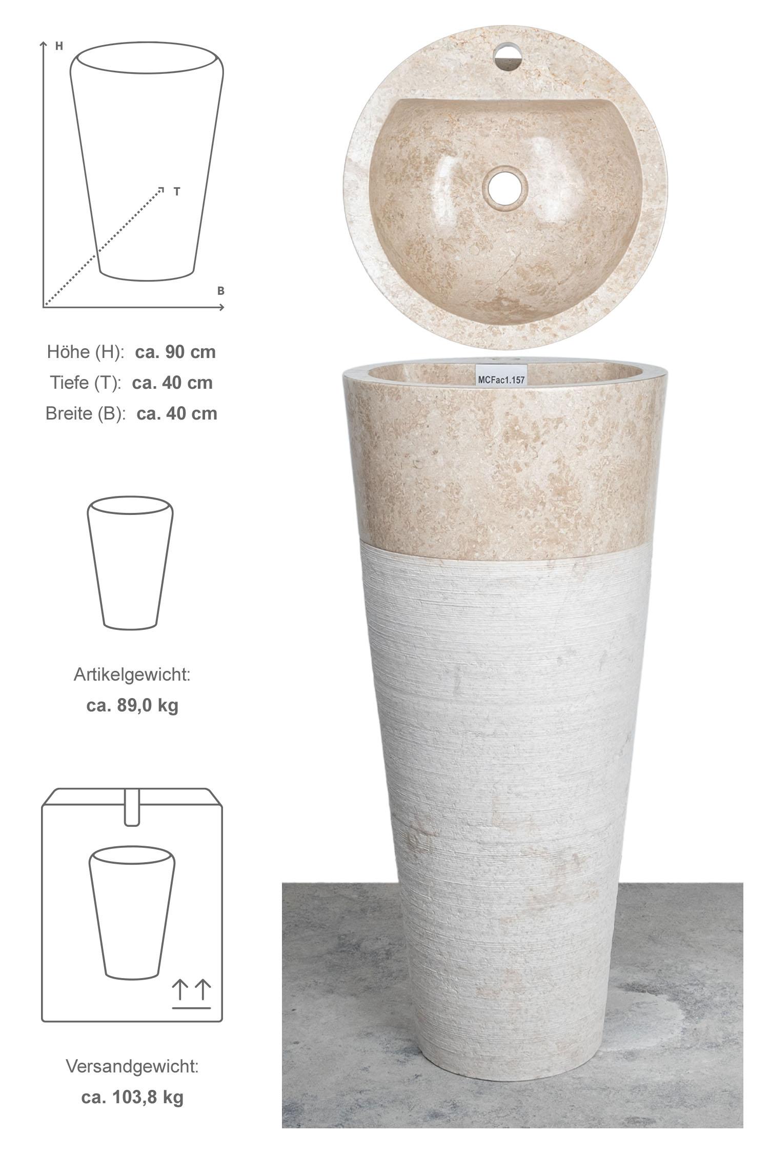 Marmor Standwaschbecken CN PEDESTAL 90 cm creme gehämmert mit Armaturloch