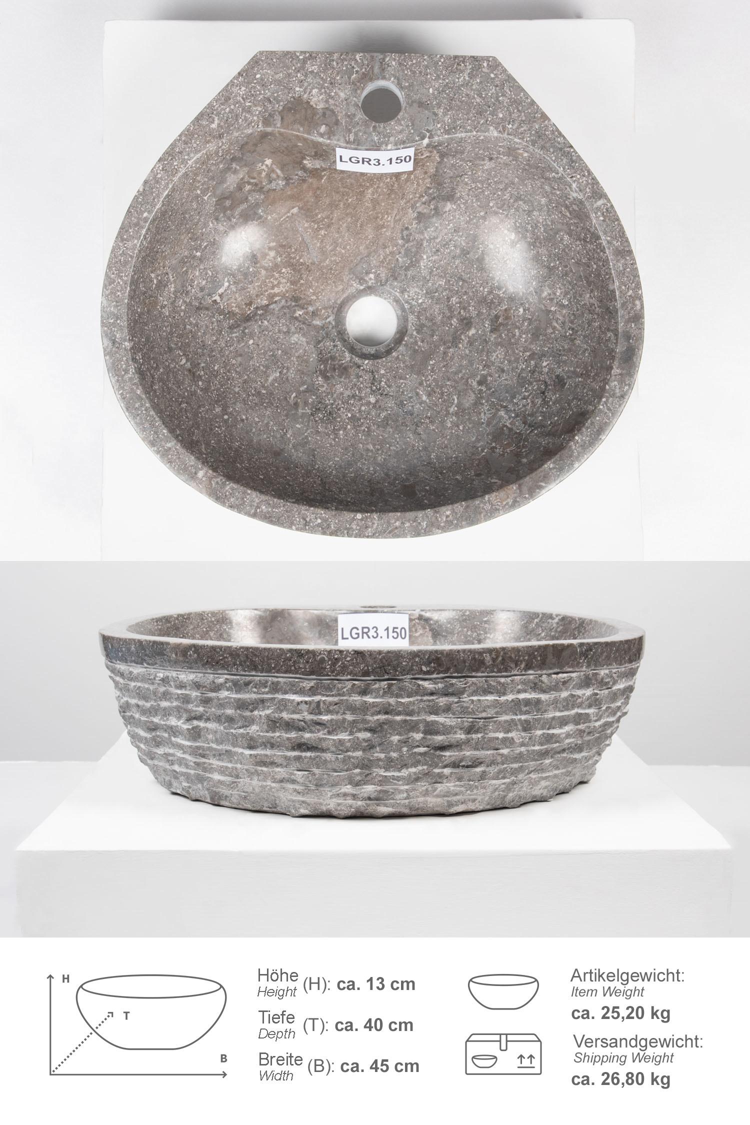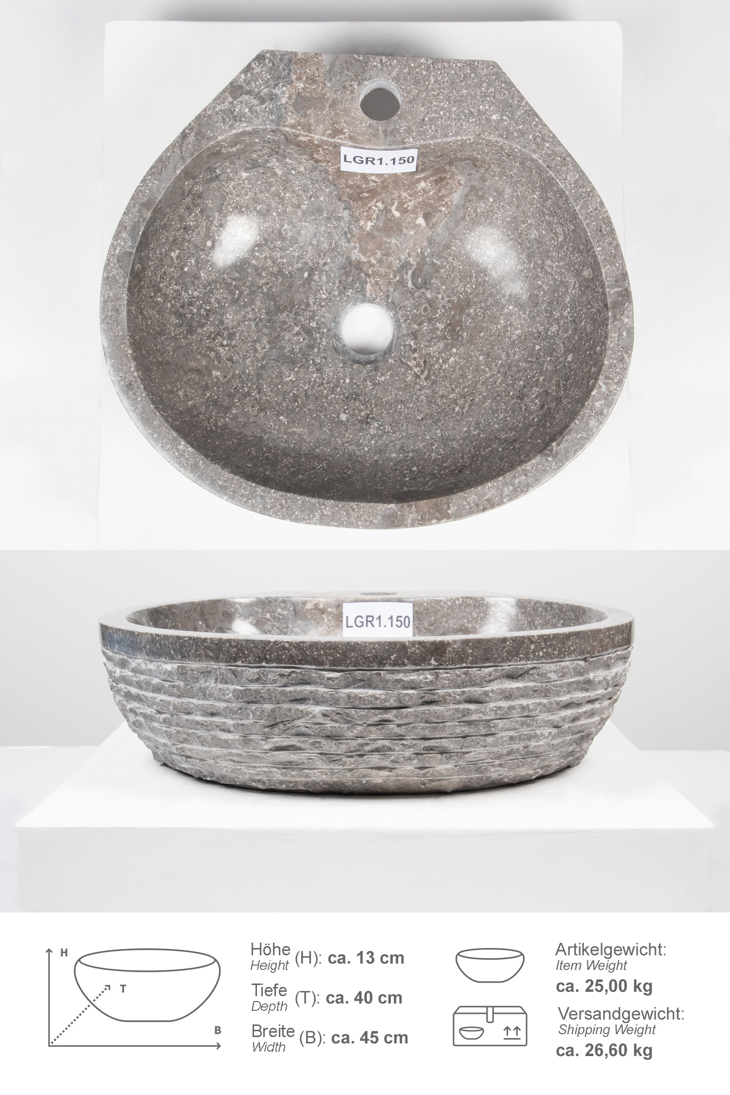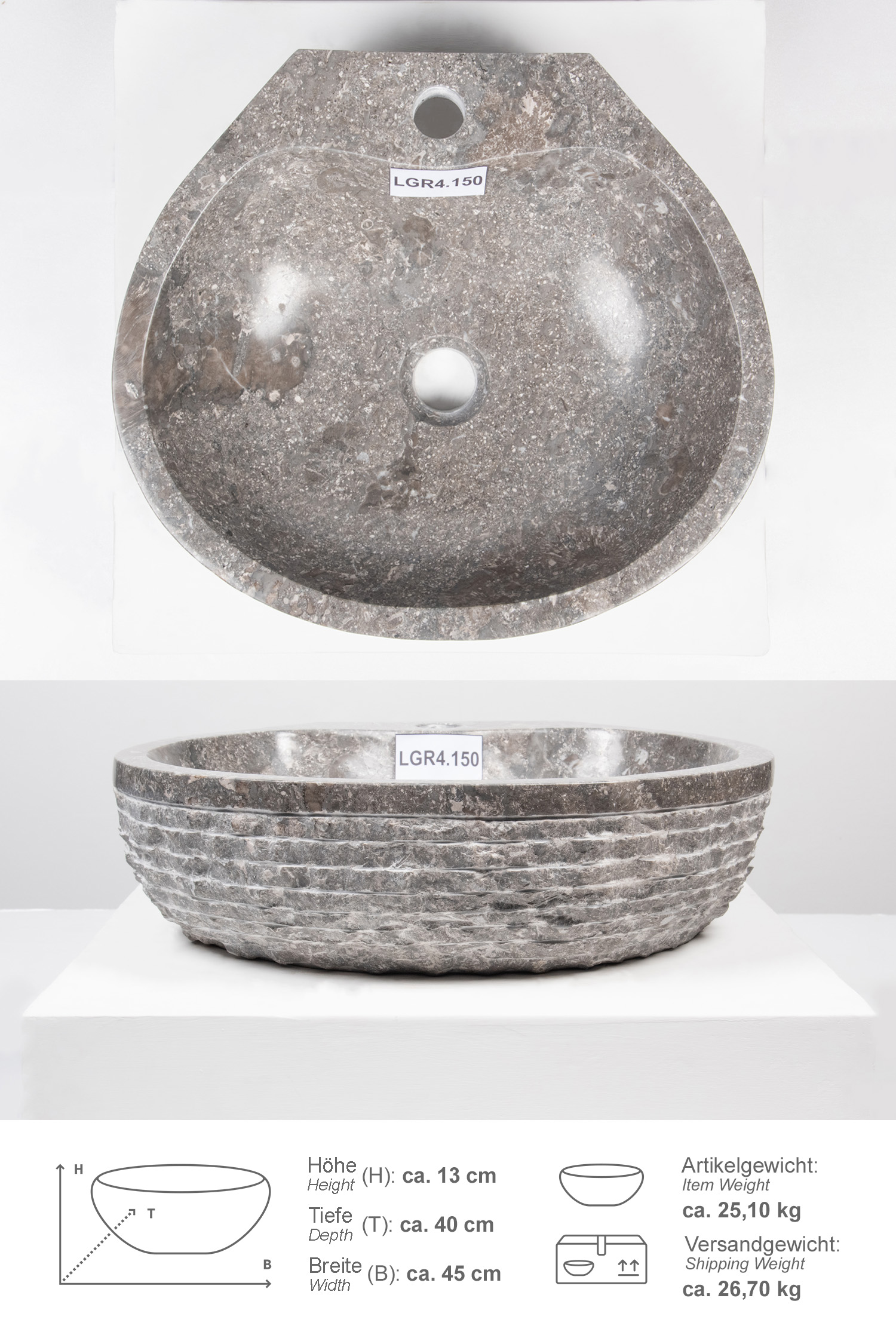 Marmor Steinwaschbecken TMO 45 cm rund grau