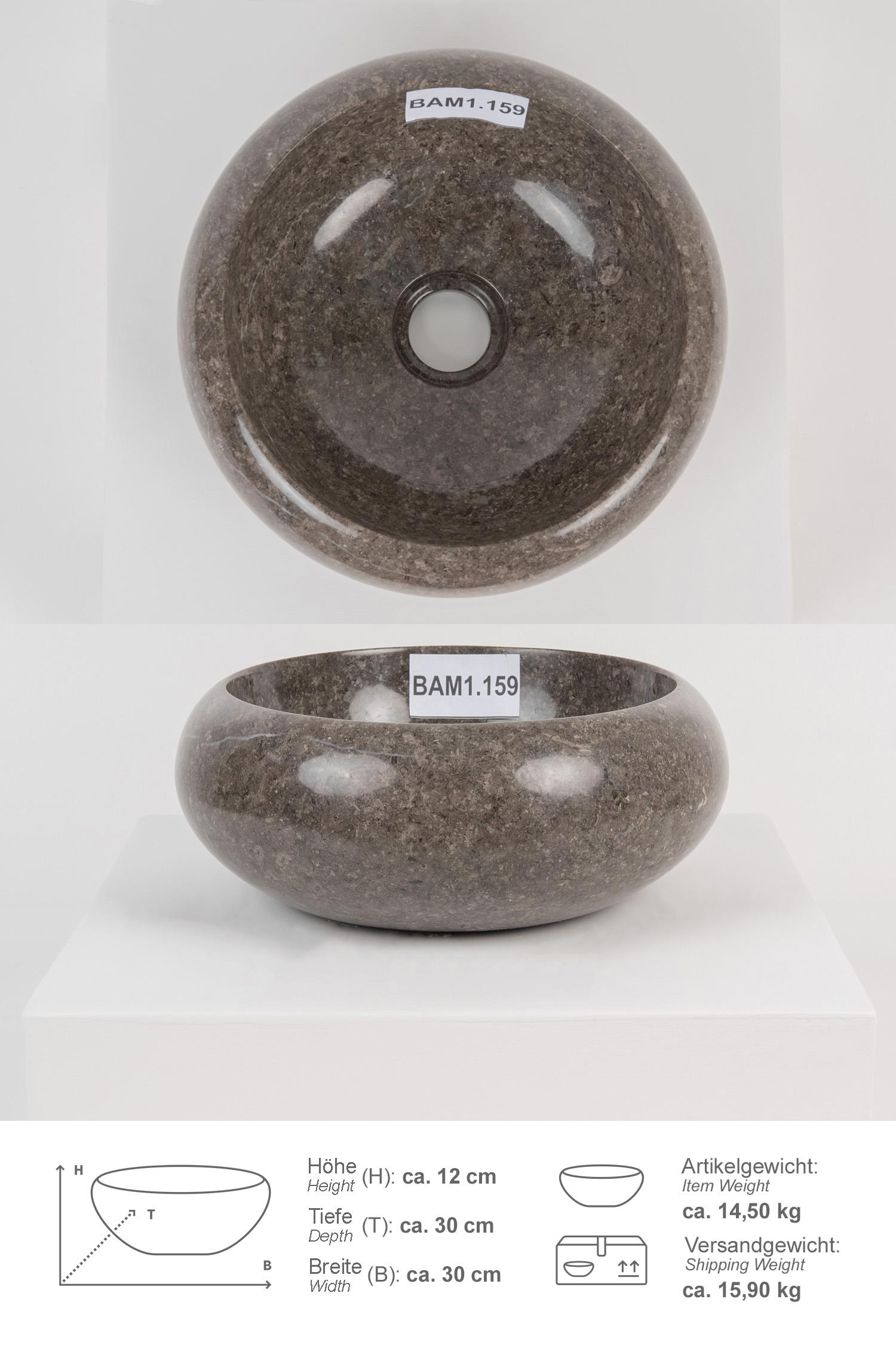 Marmor Waschbecken ASBAK 30 cm anthrazit rund poliert