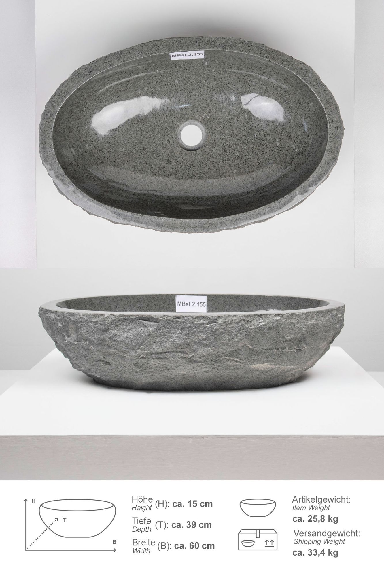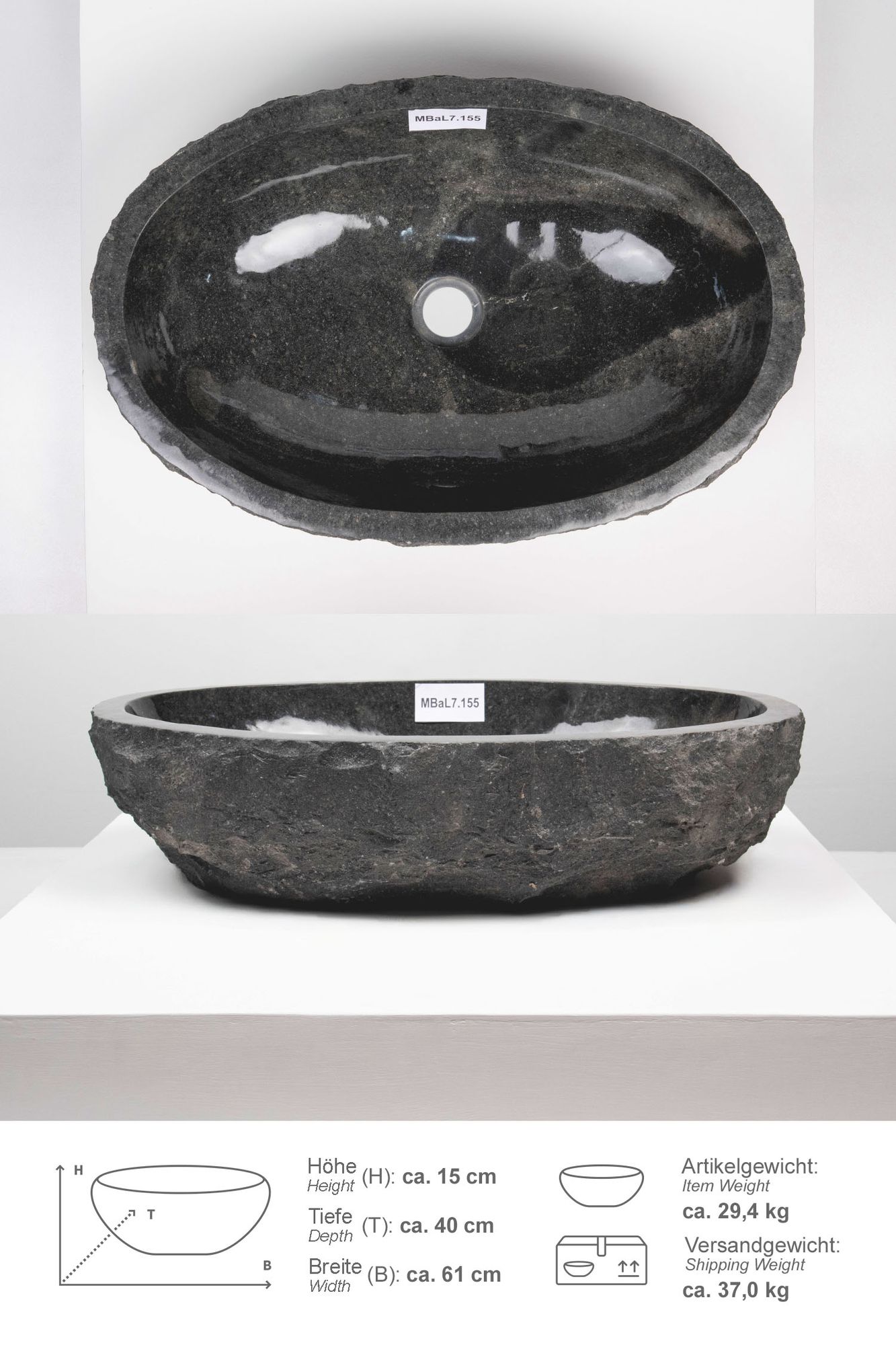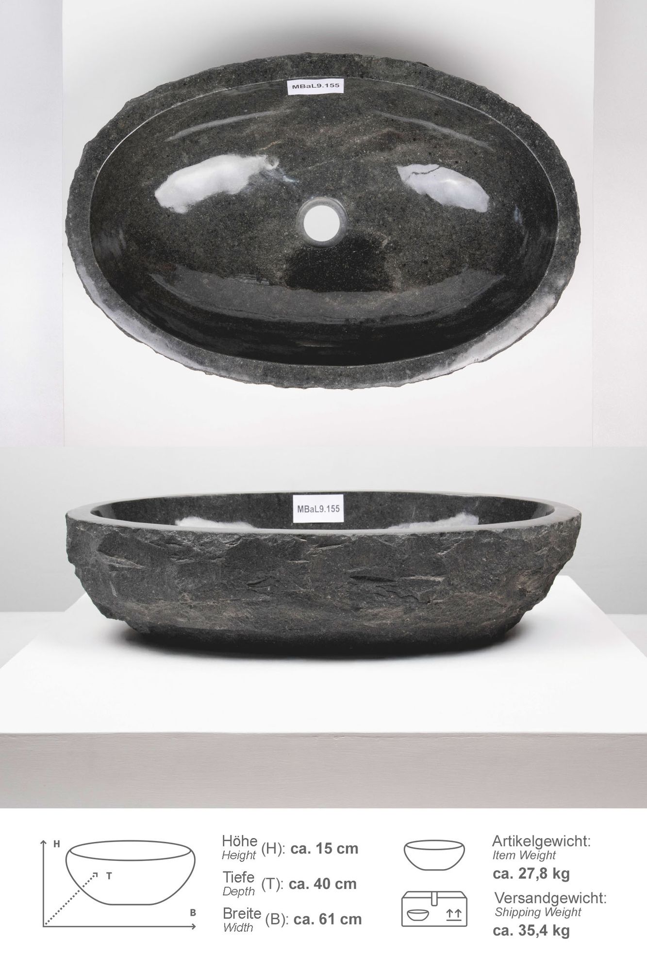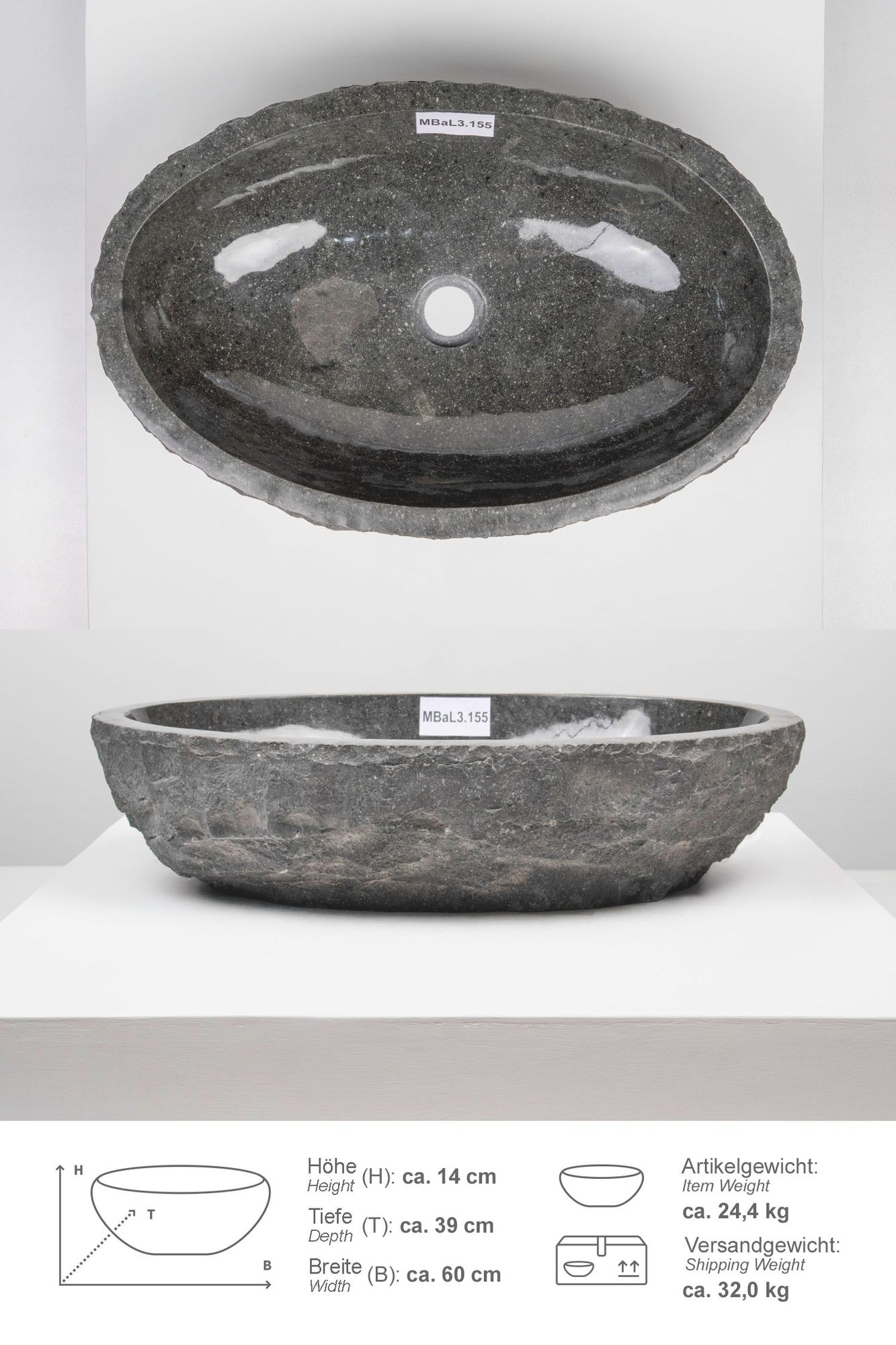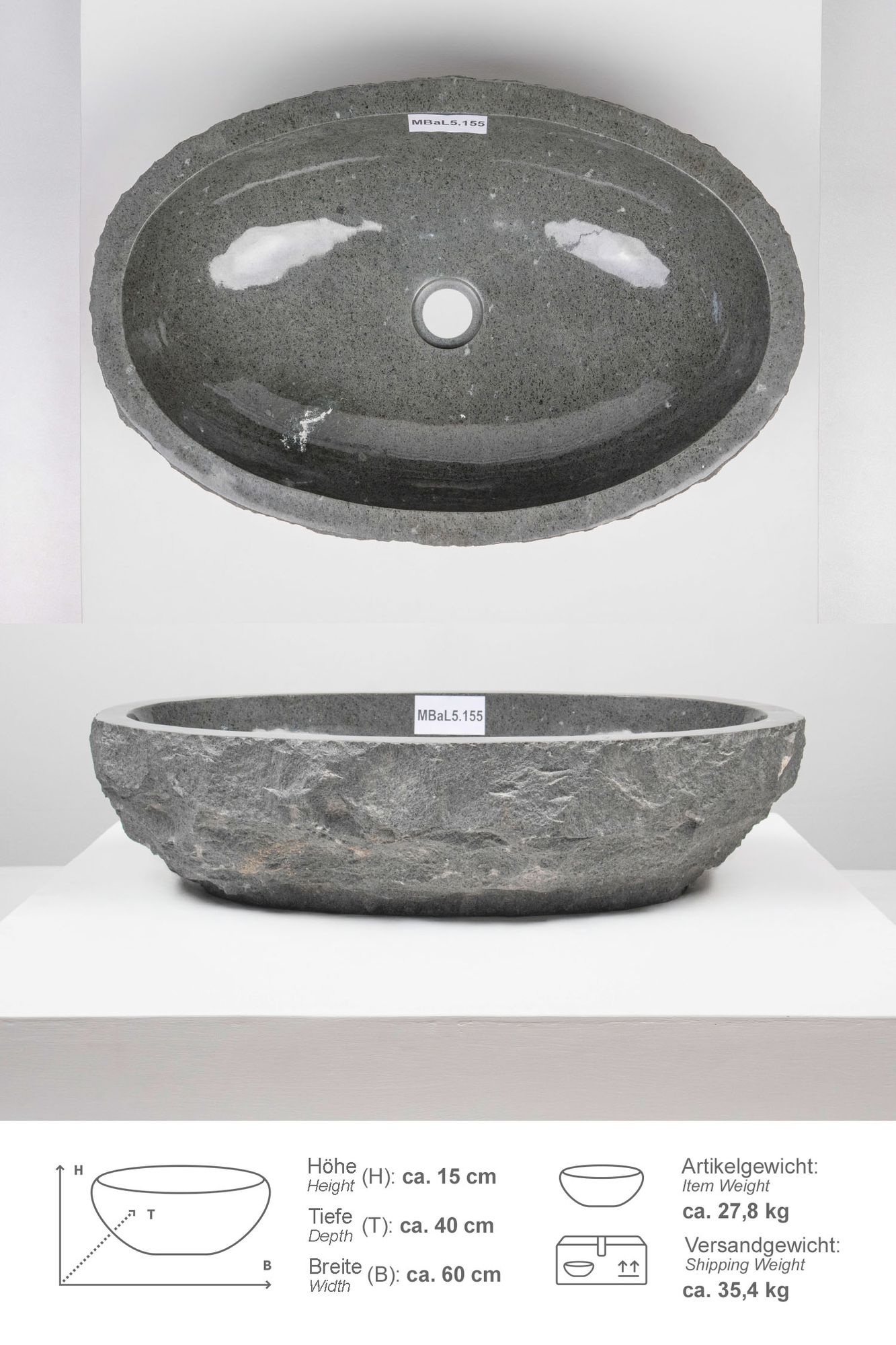 60 cm Steinwaschbecken EROSI aus indonesischem Andesit in natürlichem anthrazit