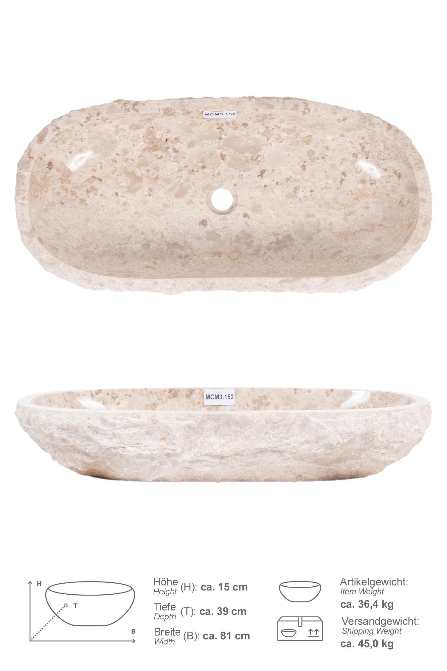 80 cm oval förmiges Steinwaschbecken Erosi aus indonesischem Marmor