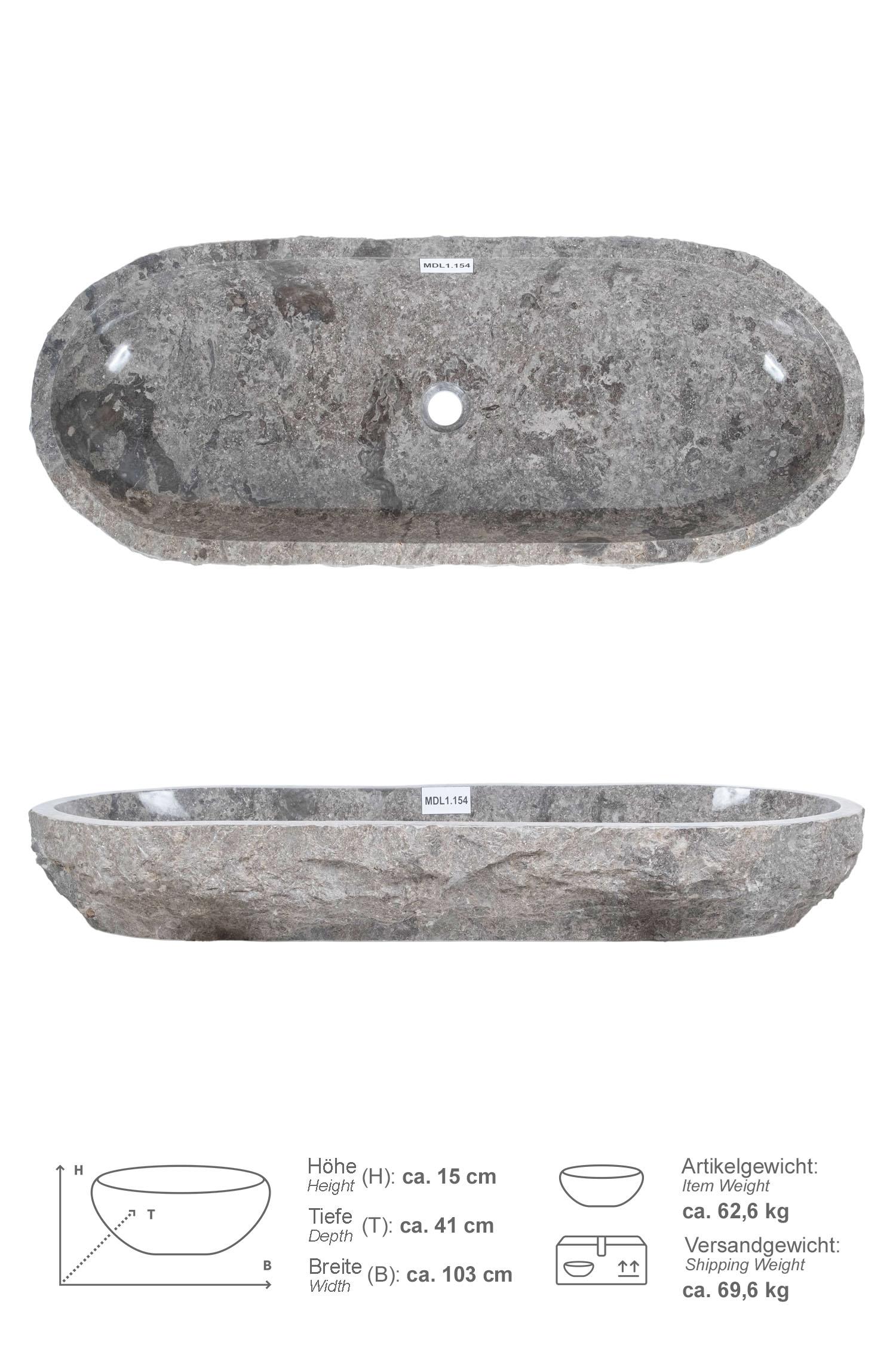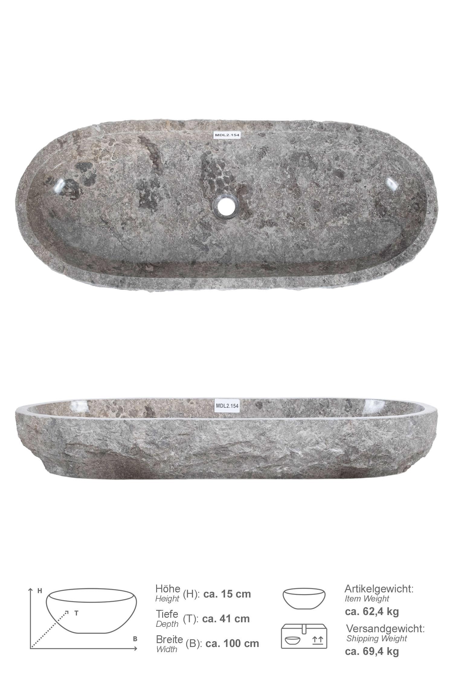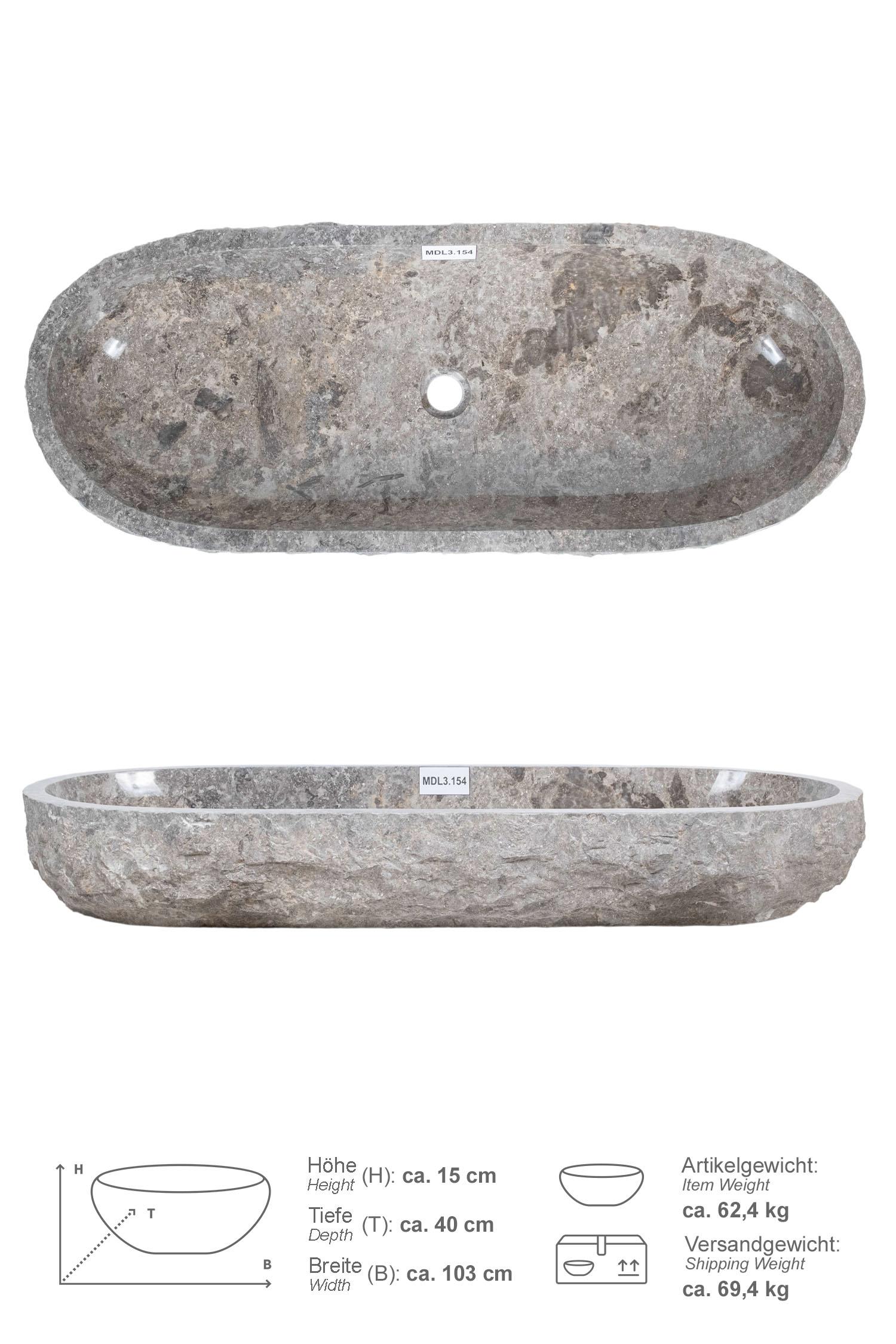 100 cm oval förmiges Steinwaschbecken Erosi aus indonesischem Marmor