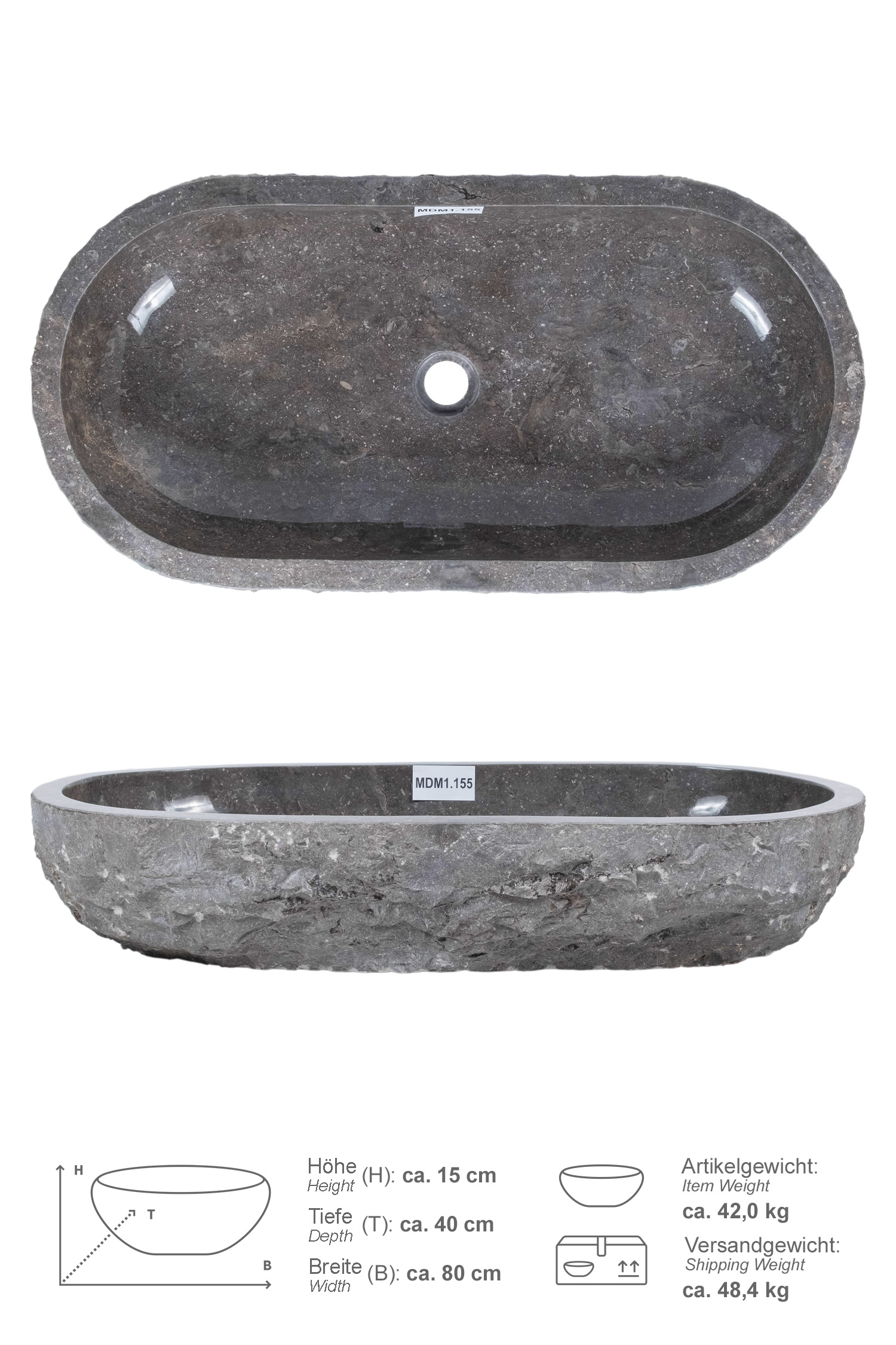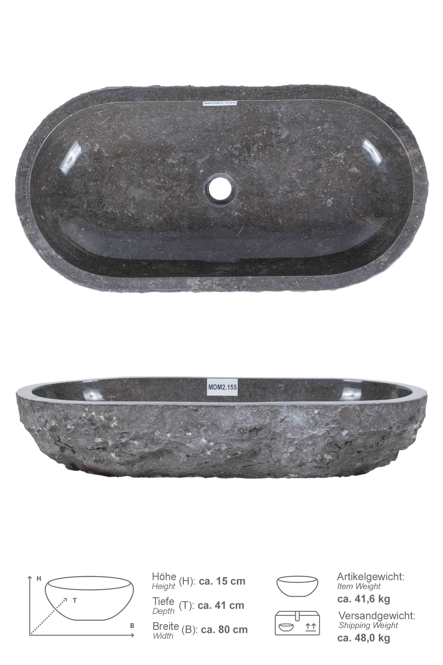 80 cm oval förmiges Steinwaschbecken Erosi aus indonesischem Marmor
