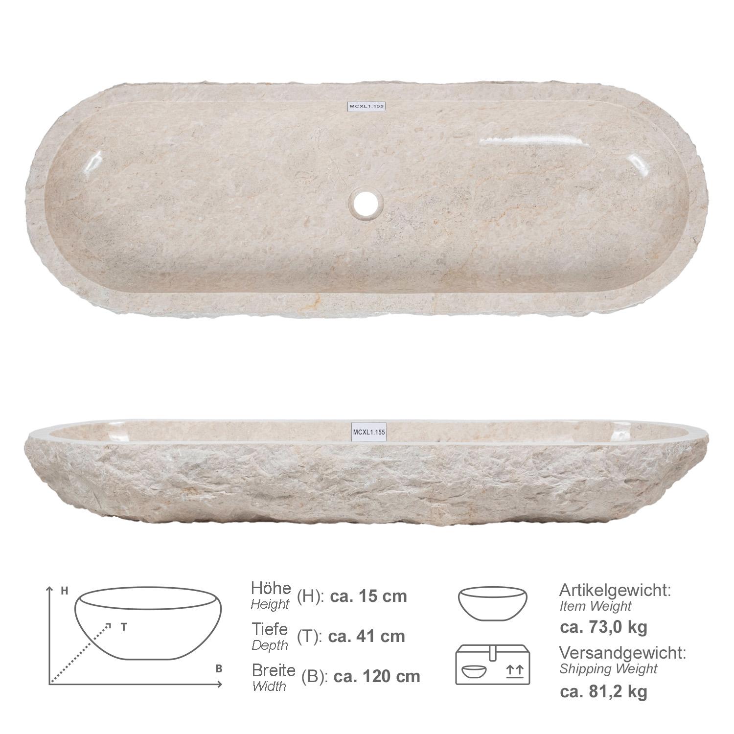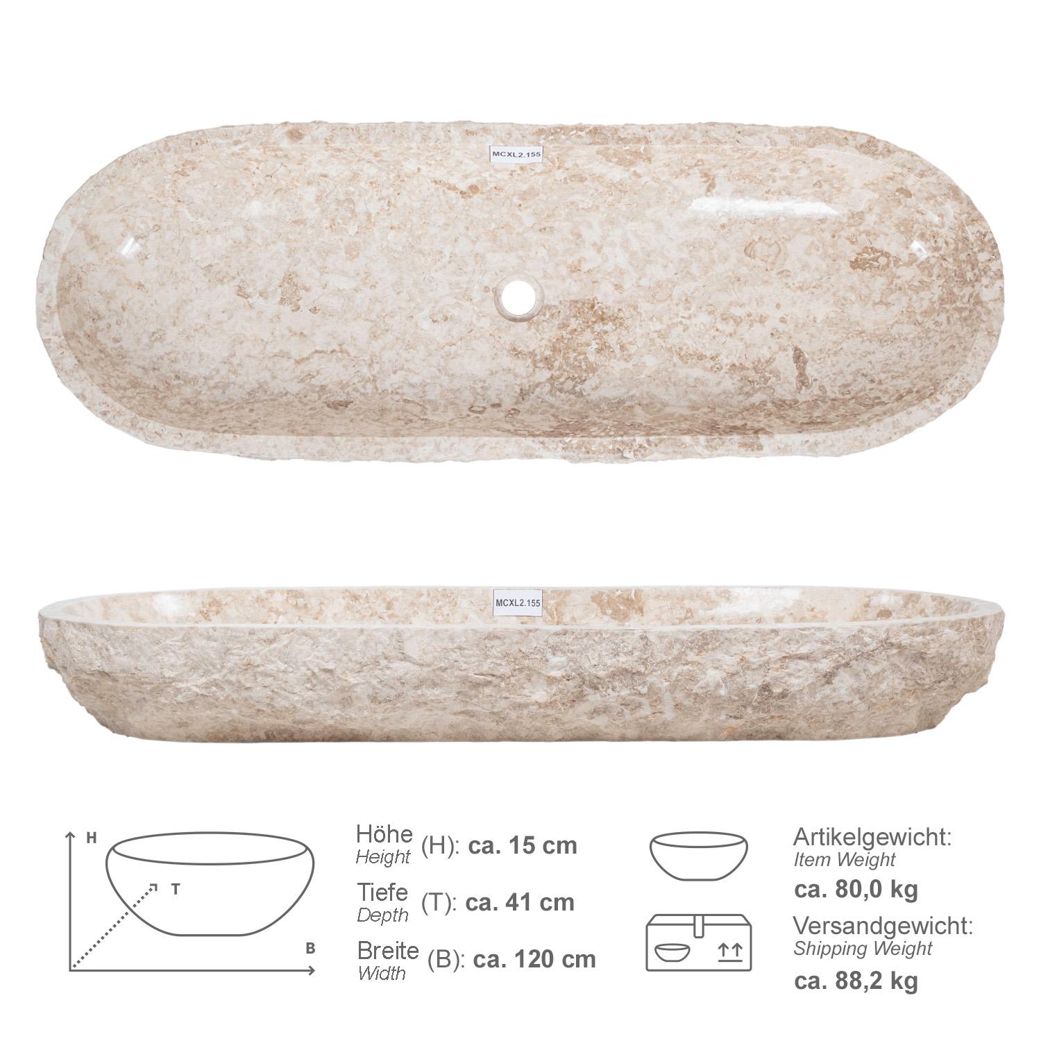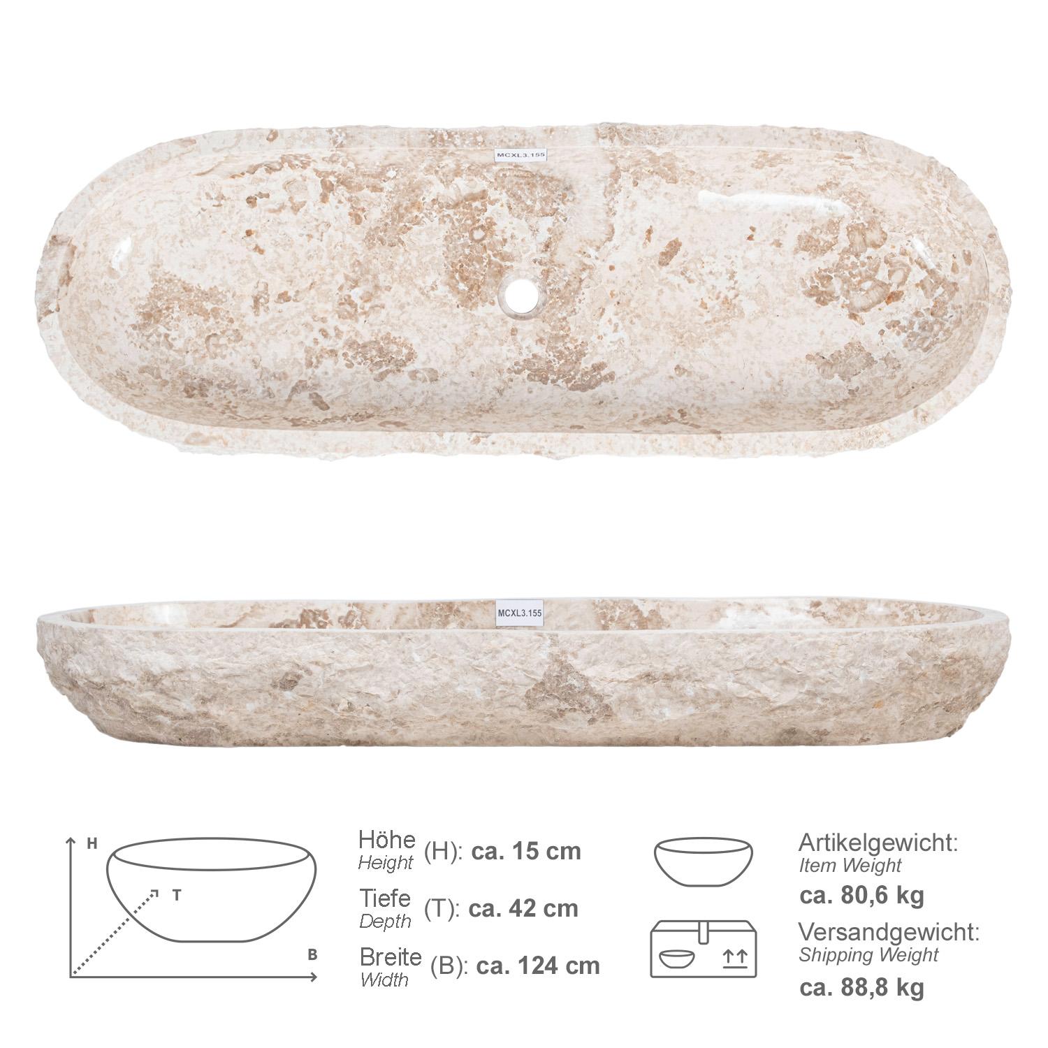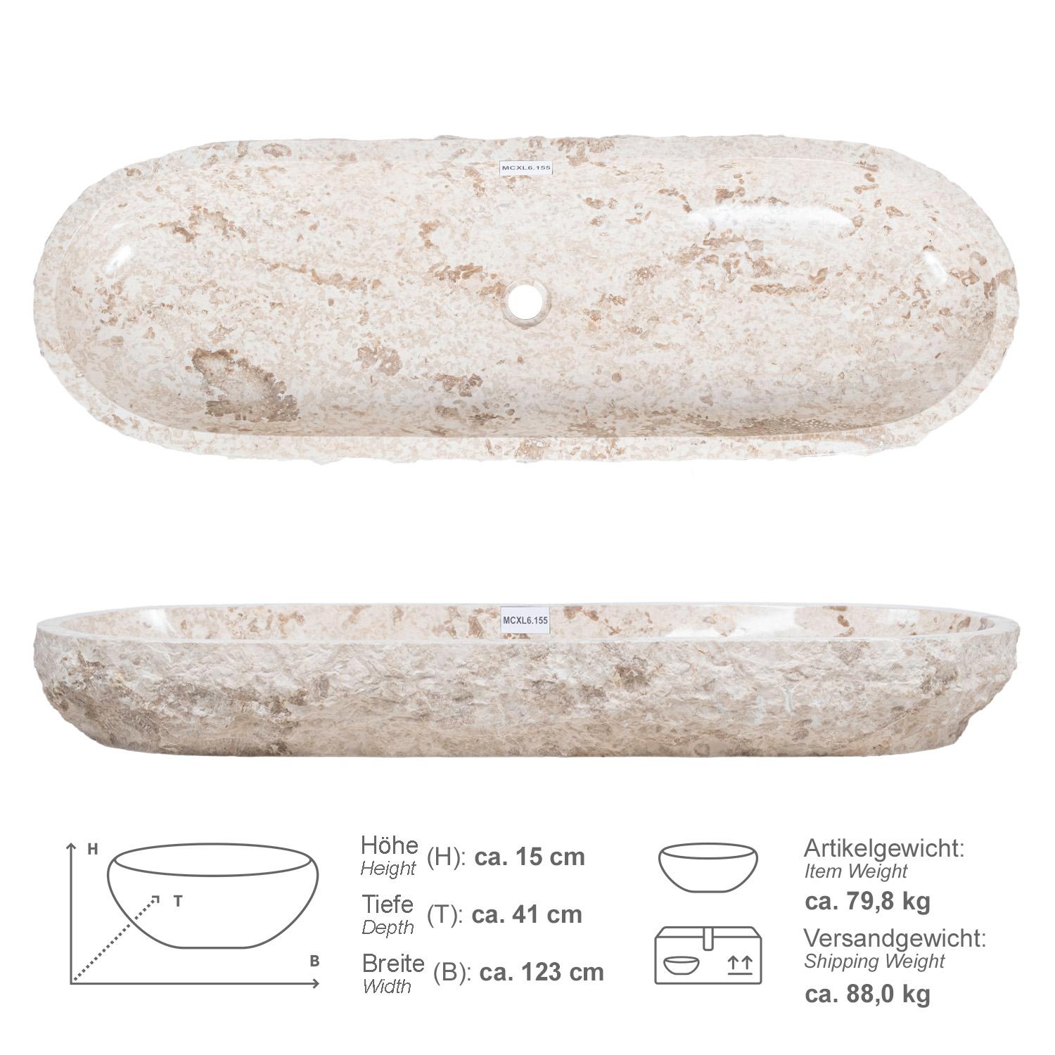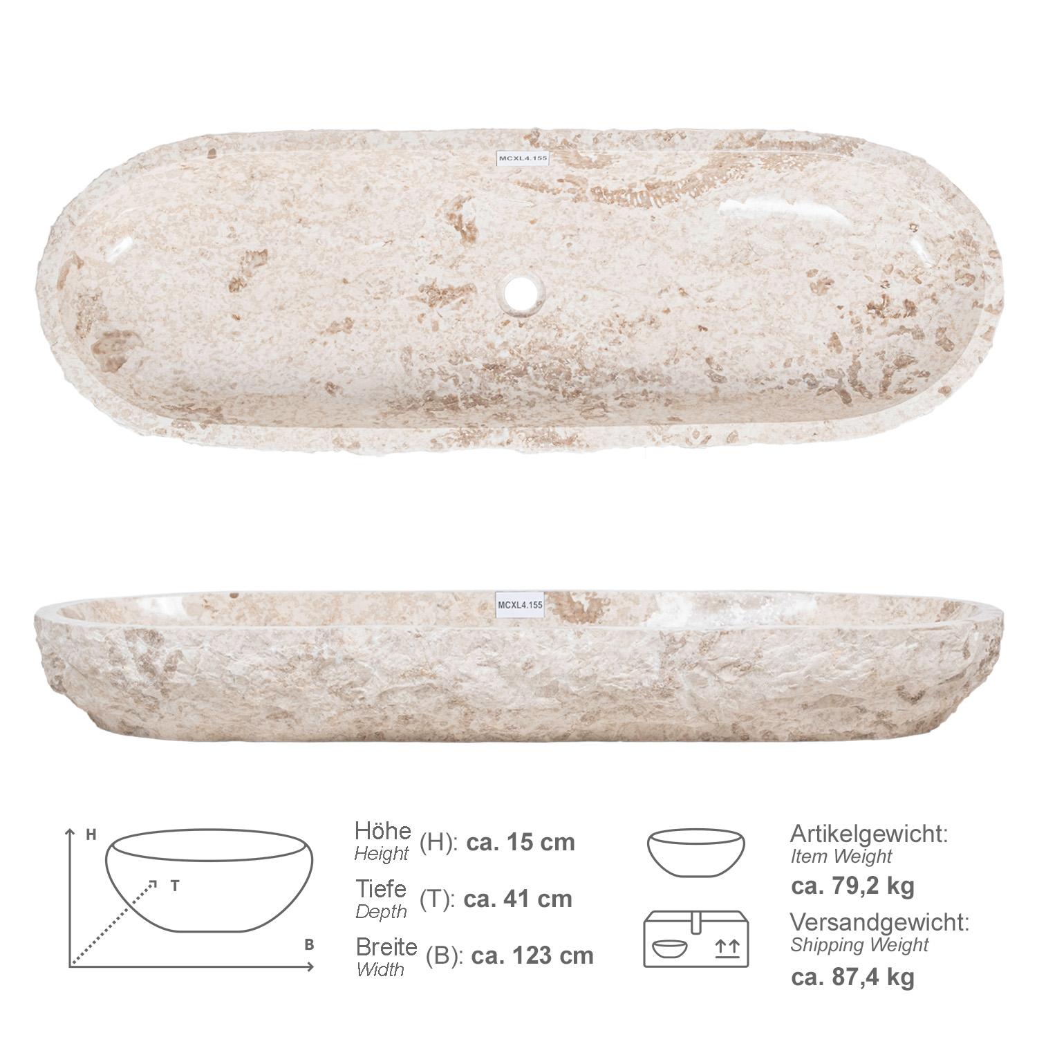 120 cm ovales Steinwaschbecken Erosi aus indonesischem Marmor in natürlichem Cremeton