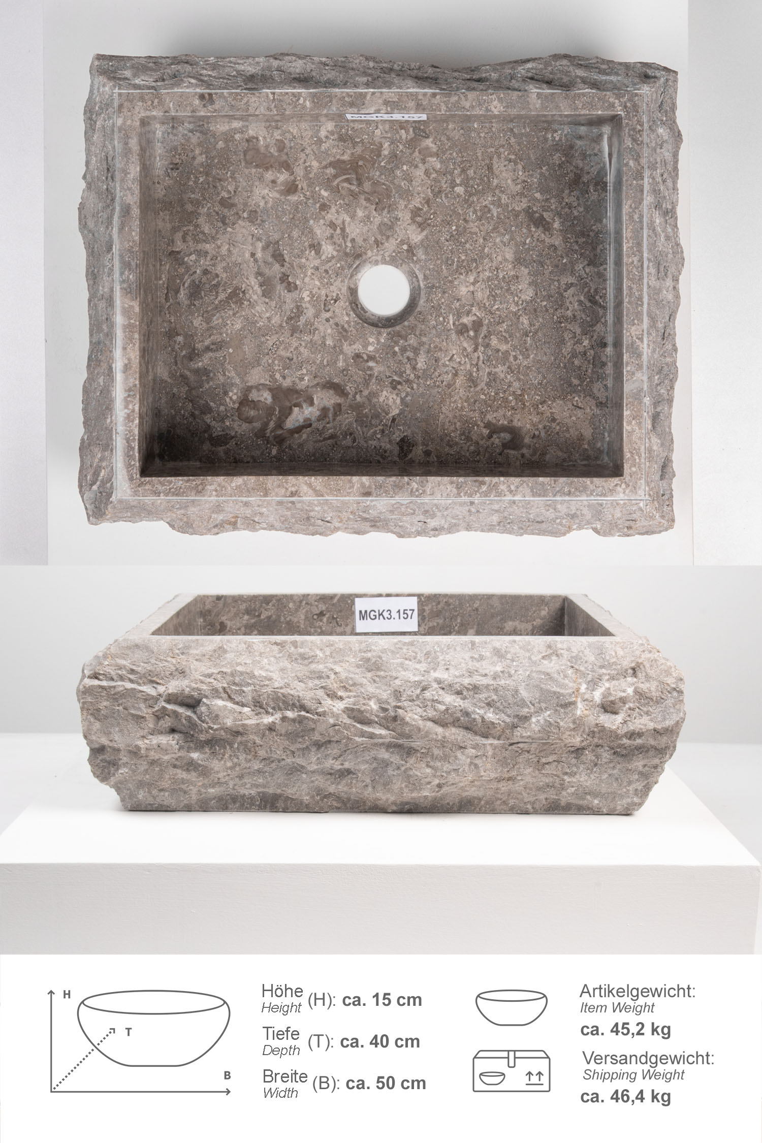 Das Waschbecken ist innen und außen von Hand poliert. Unterschiede in Marmorierung, Schattierung und Struktur sind das Zeichen für die Individualität eines jeden Waschbeckens.