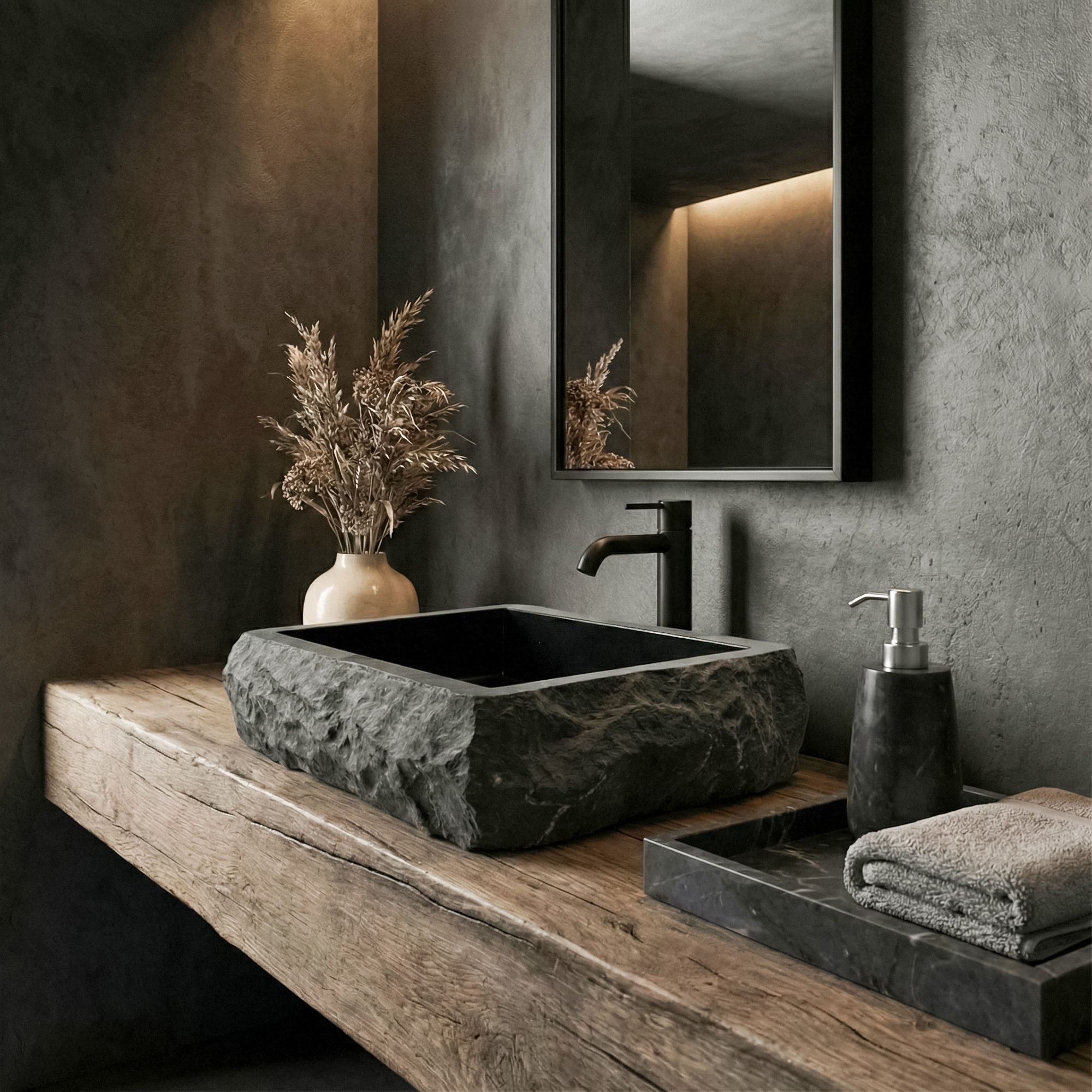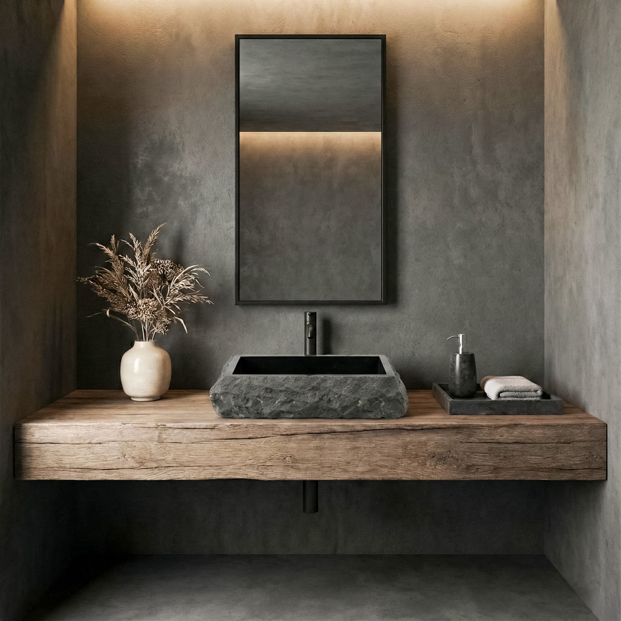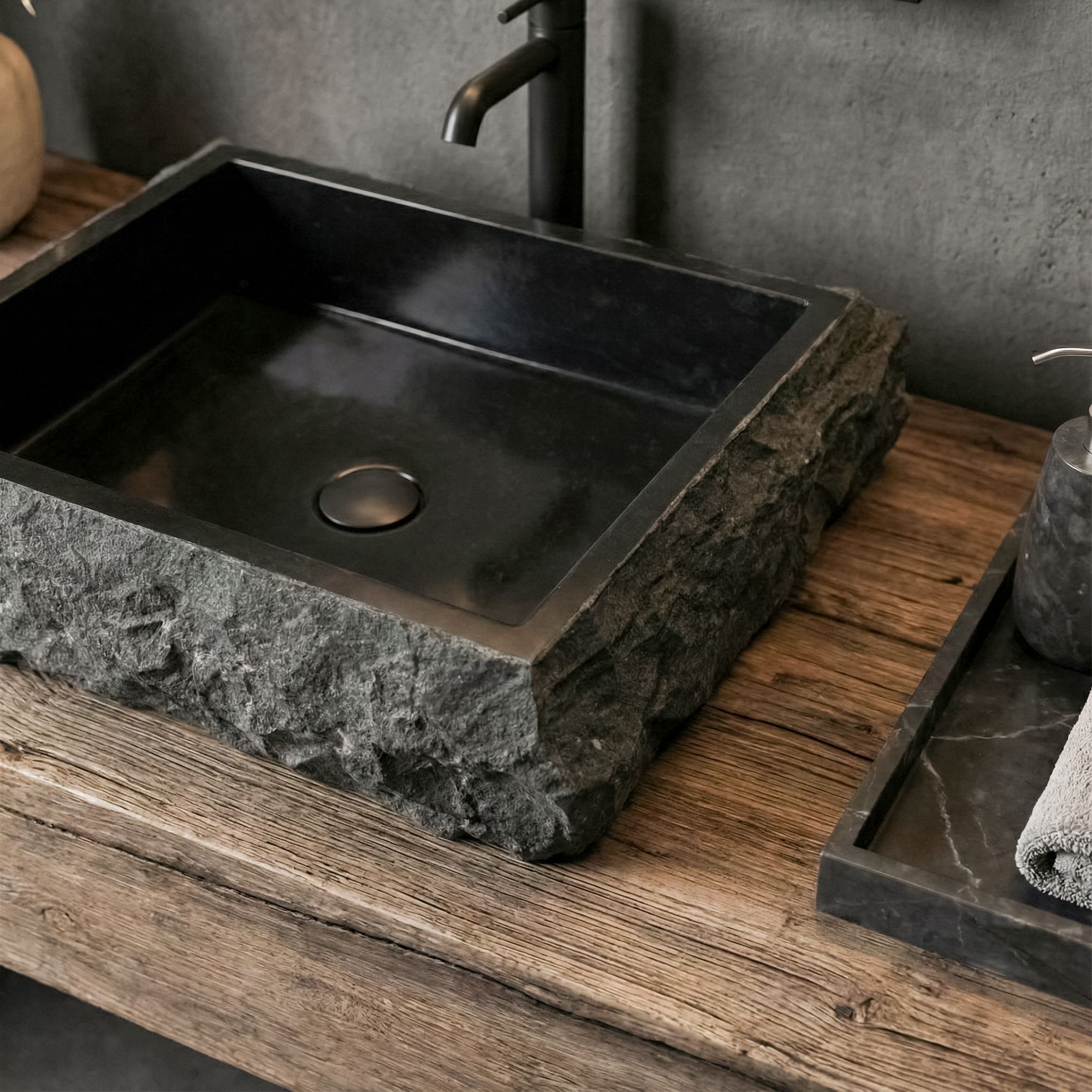 Andesit Waschbecken KOTAK 50 cm schwarz eckig