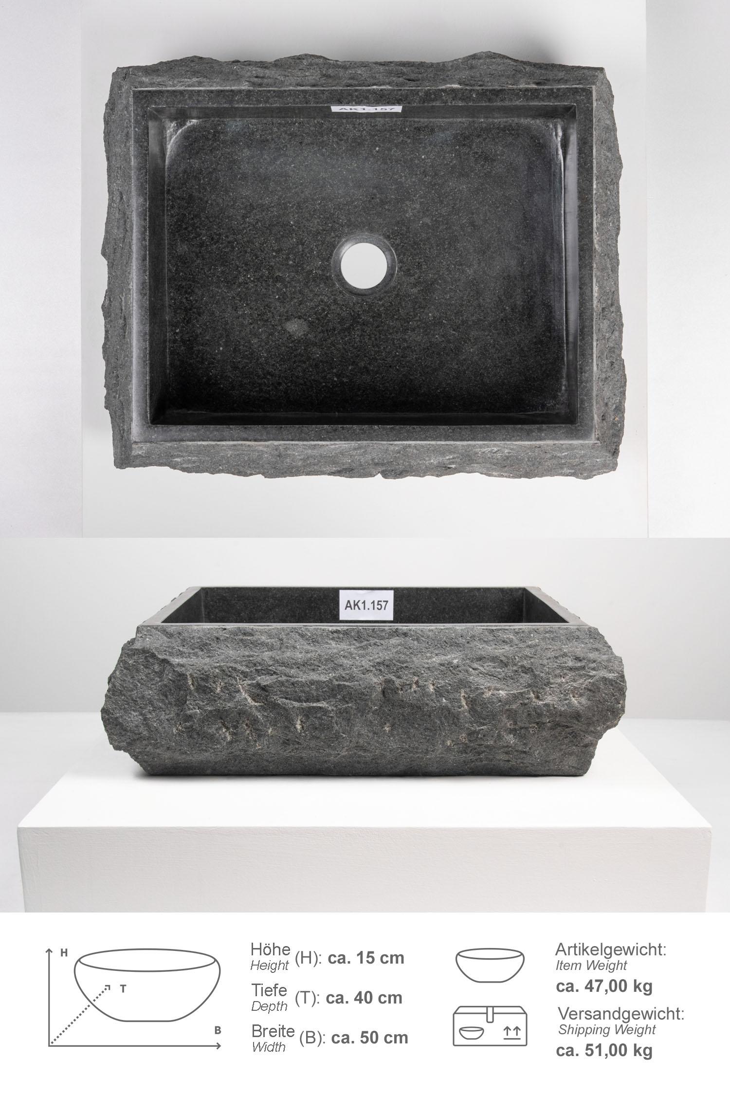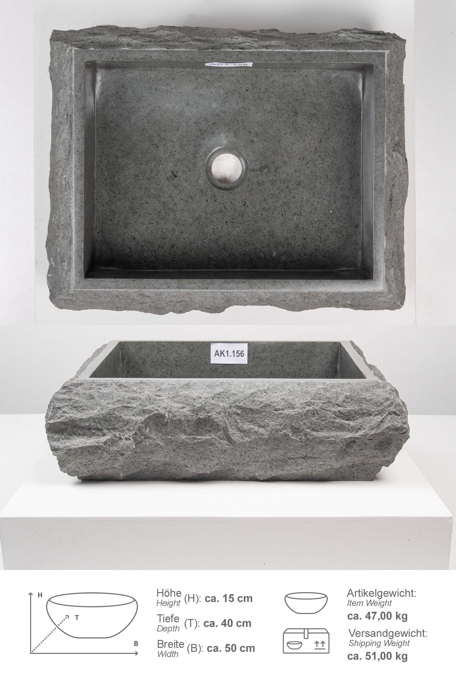 Andesit Waschbecken KOTAK 50 cm schwarz
