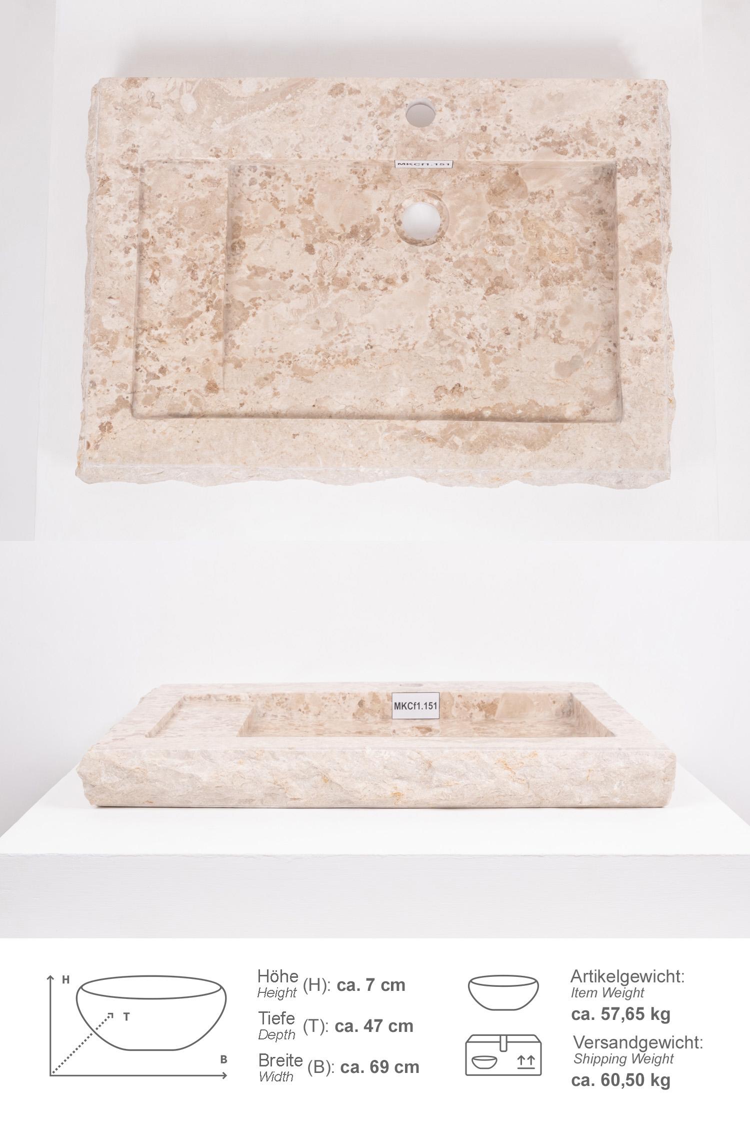 Marmor - Waschbecken Kotak 70 cm creme mit Armaturenloch