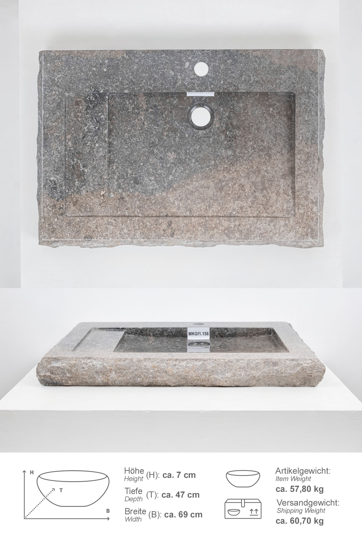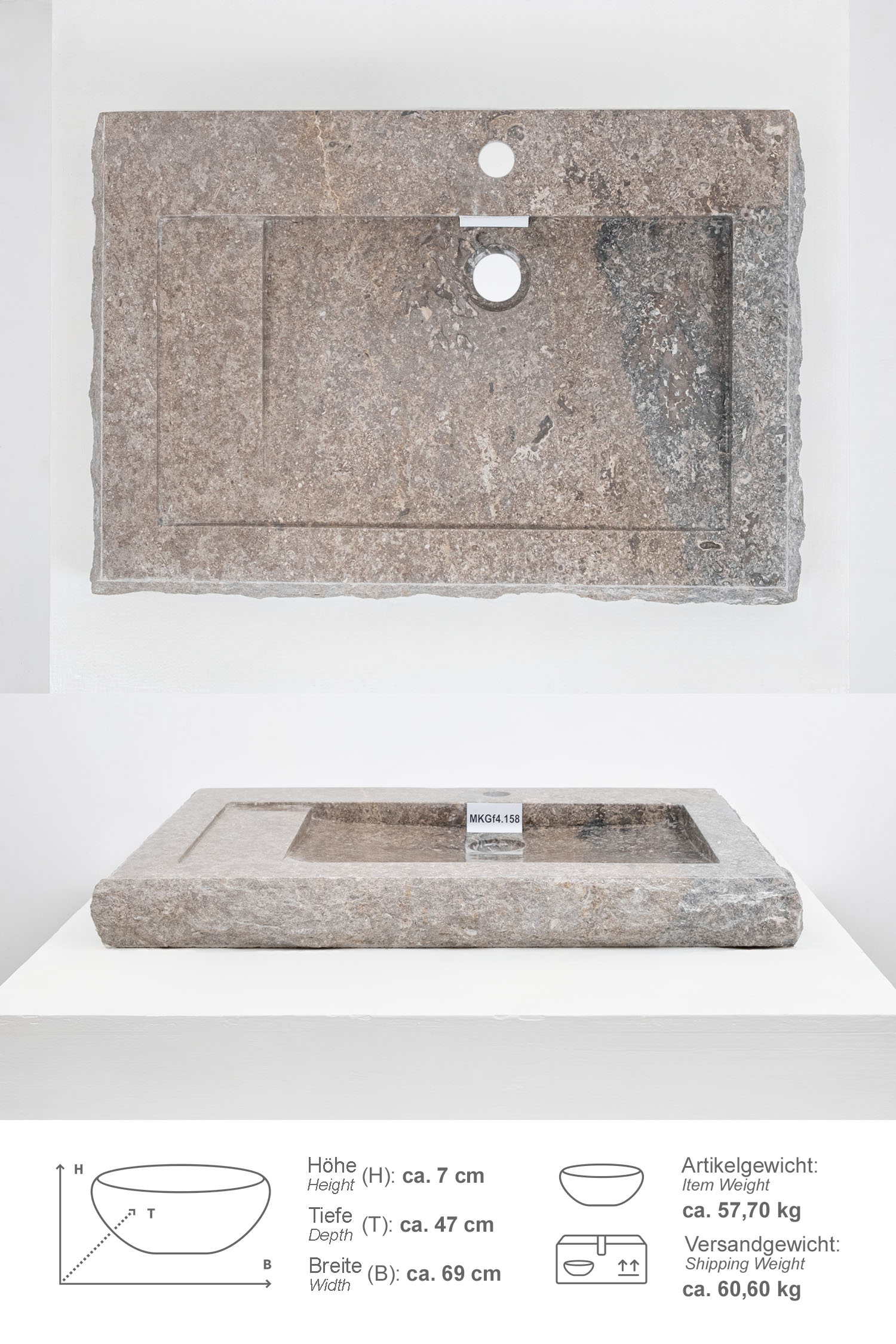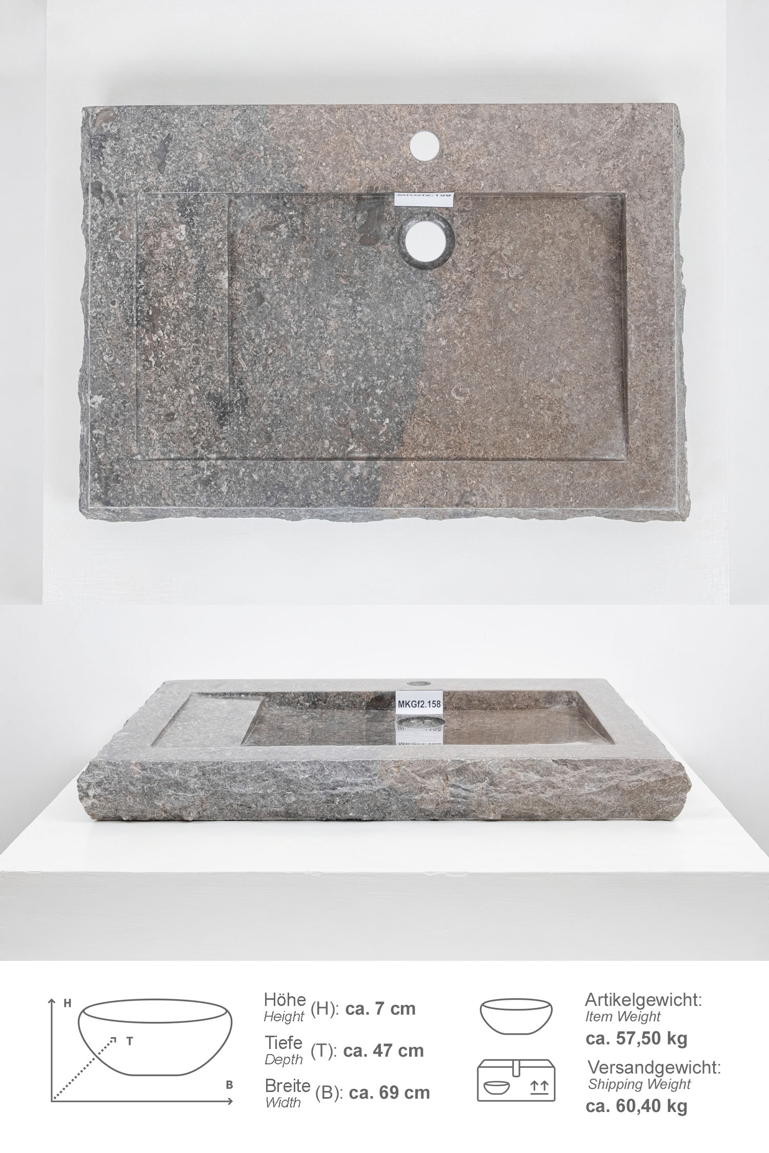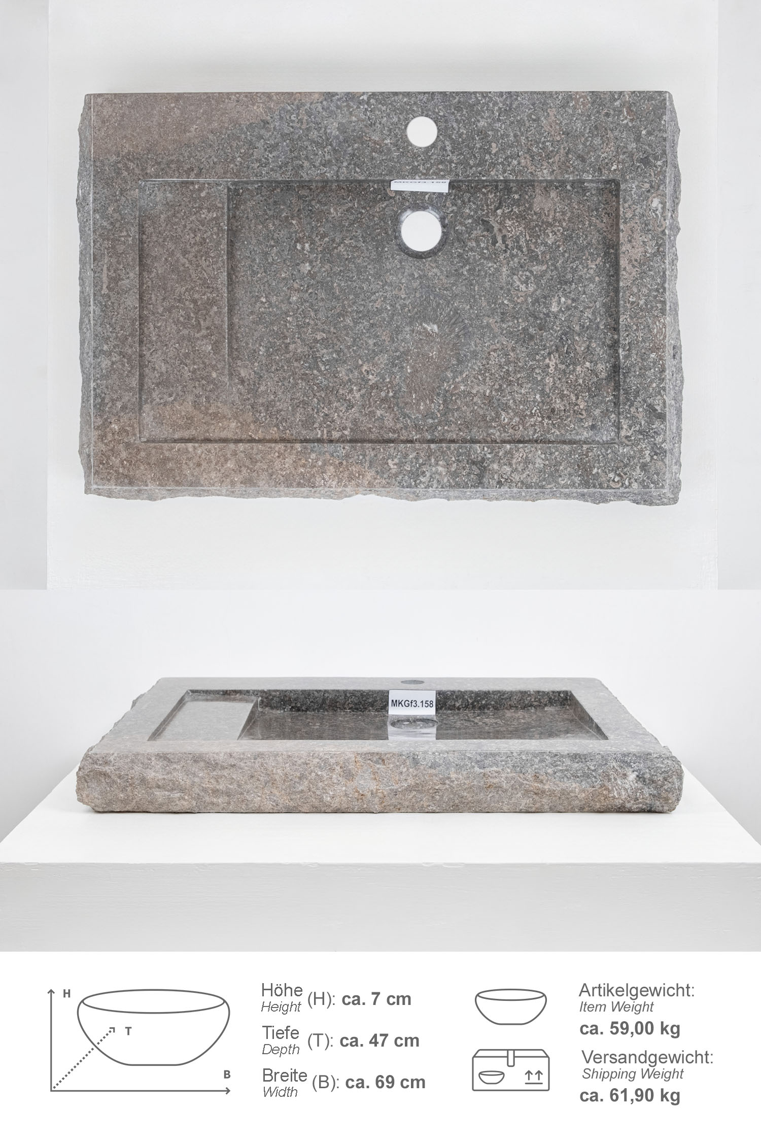 Marmor Waschbecken KOTAK 70 cm grau flach Armaturenloch