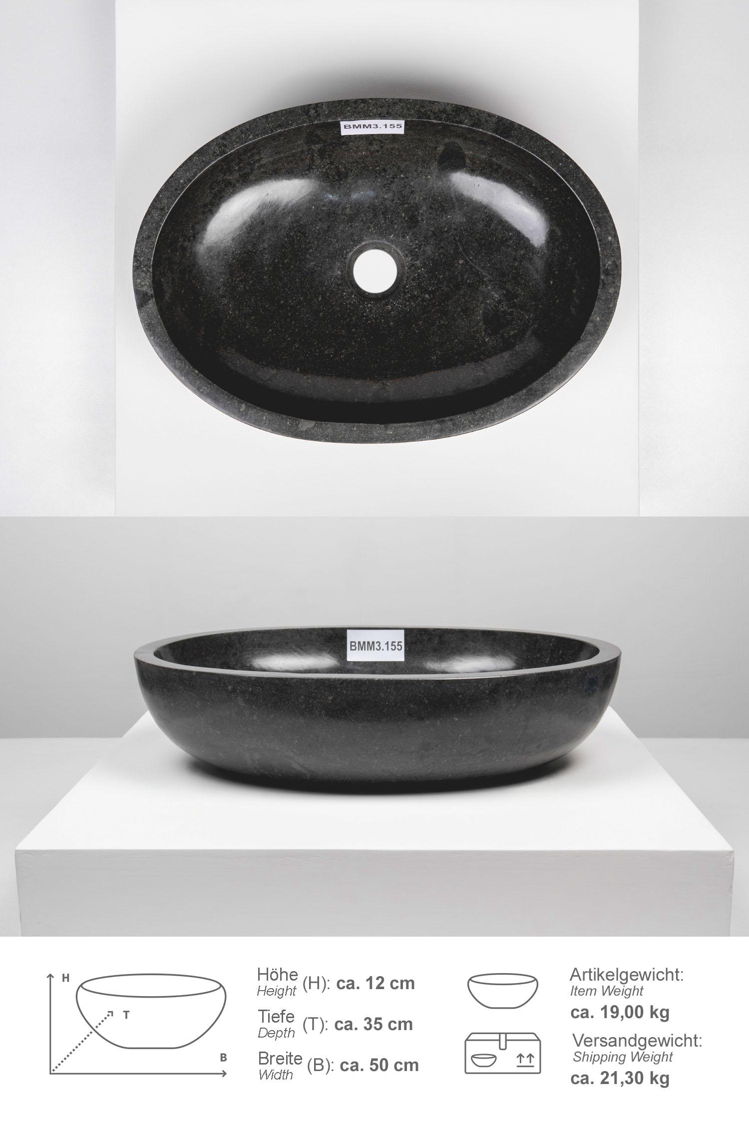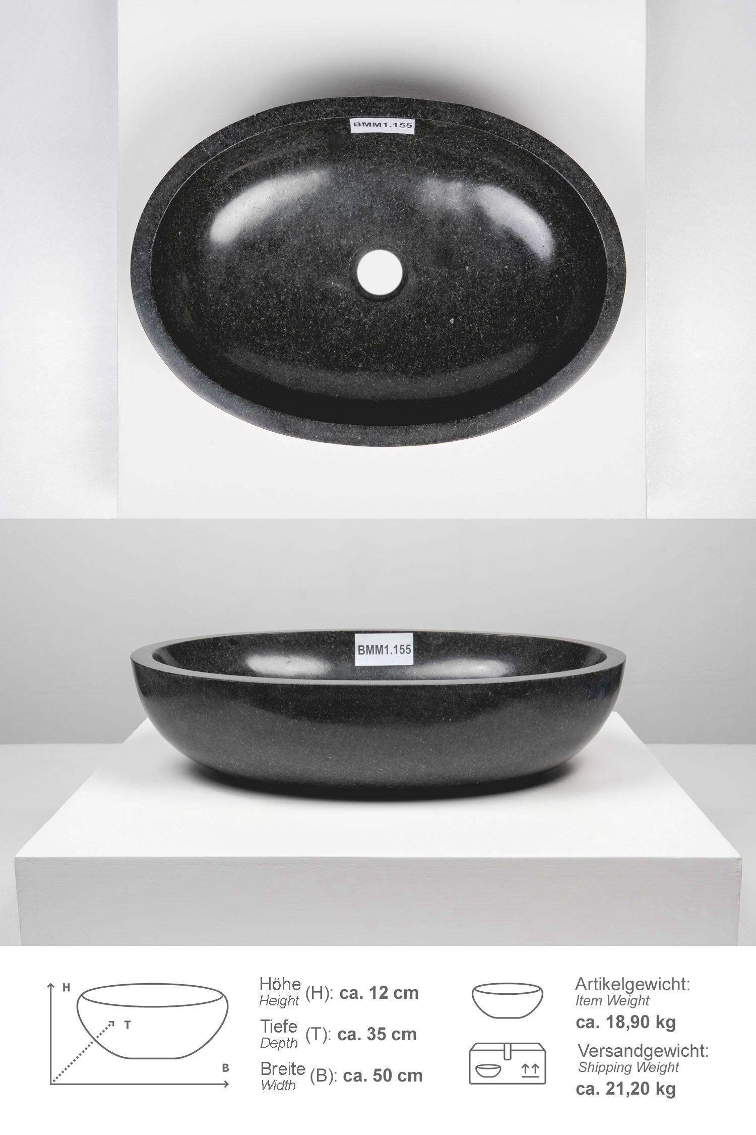 Andesit Steinwaschbecken MARA 50 cm schwarz oval