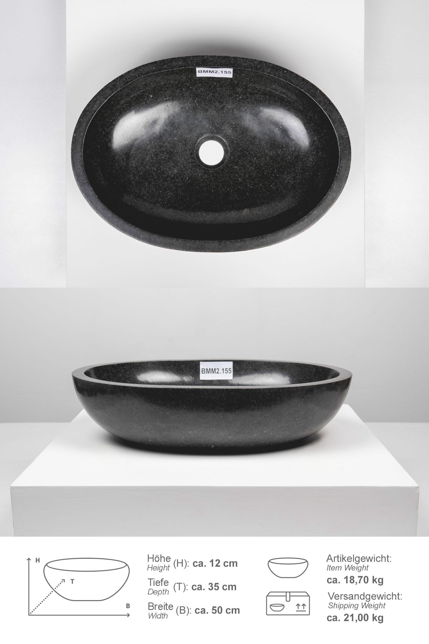 Ovales Andesit Steinwaschbecken, Modell MARA, poliert und grau, 50 x 35 cm