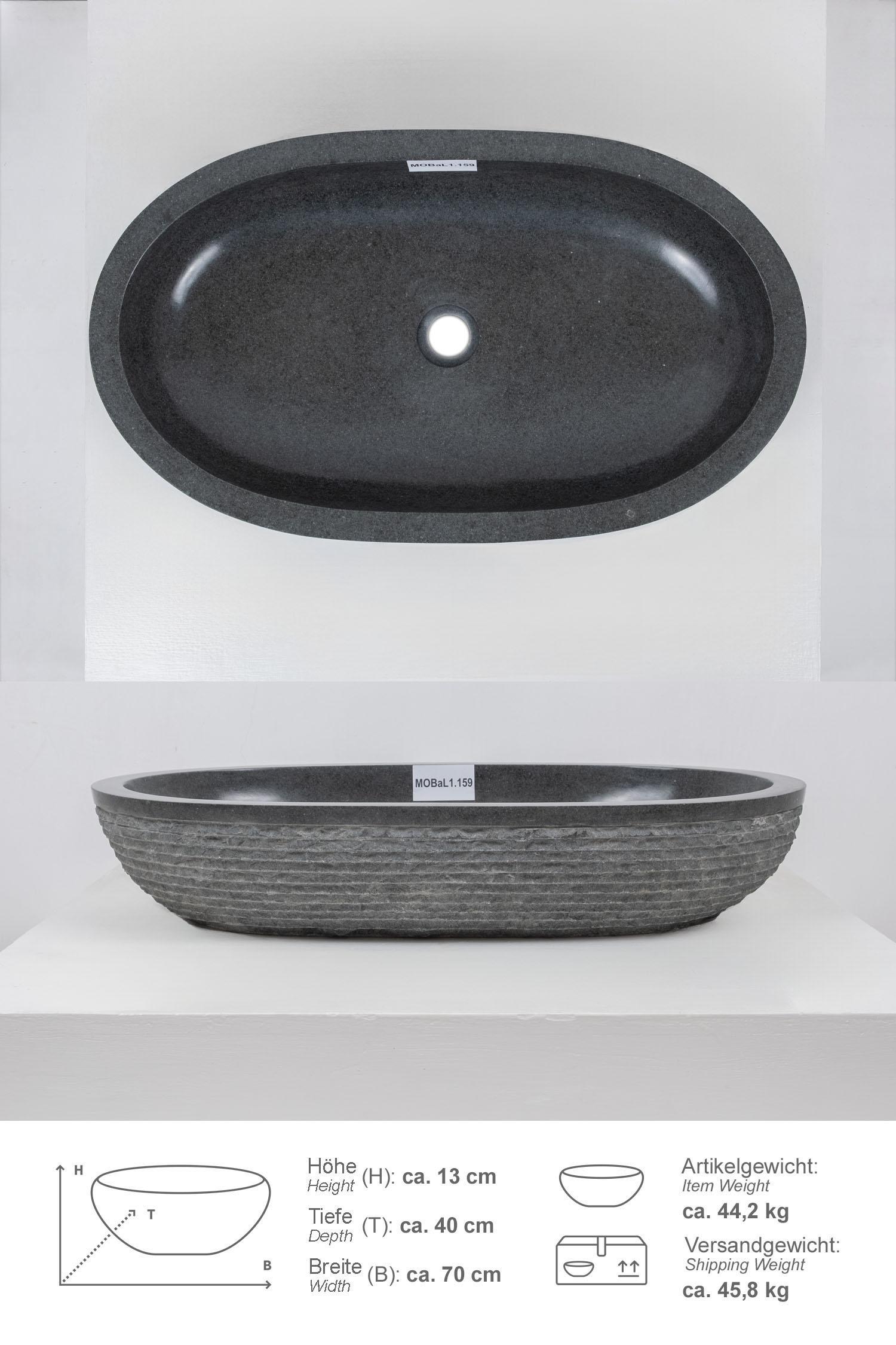 Andesit Waschbecken 70 cm Mara oval, gehämmert, in der Farbe schwarz