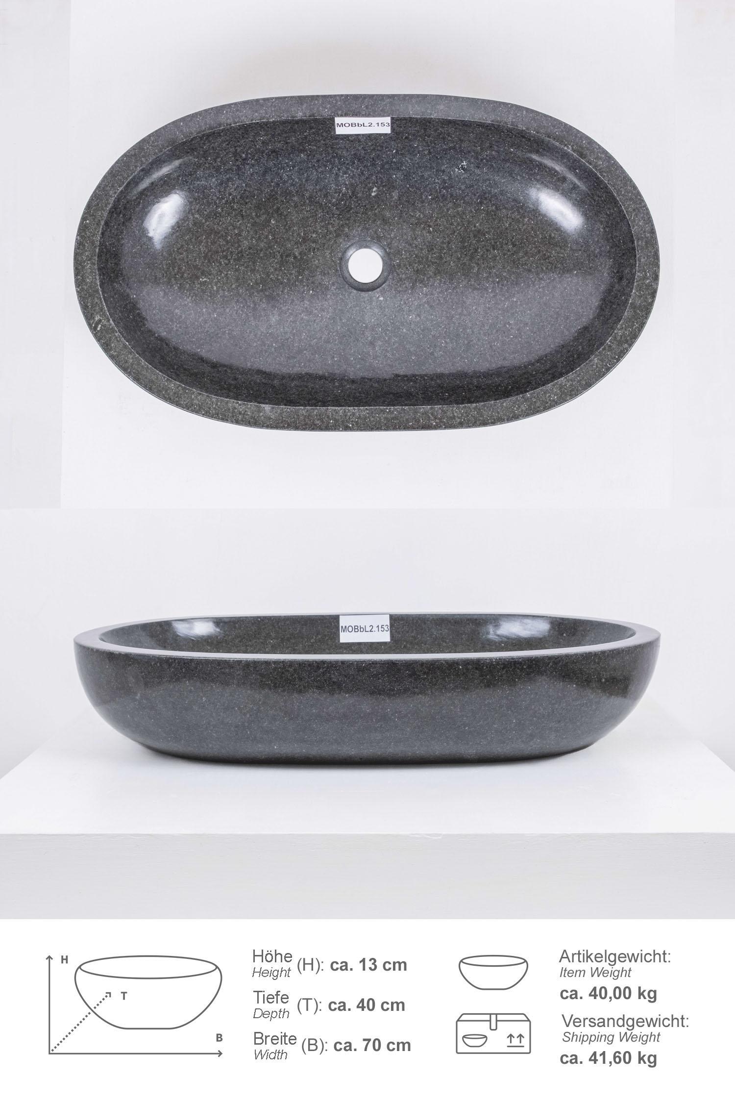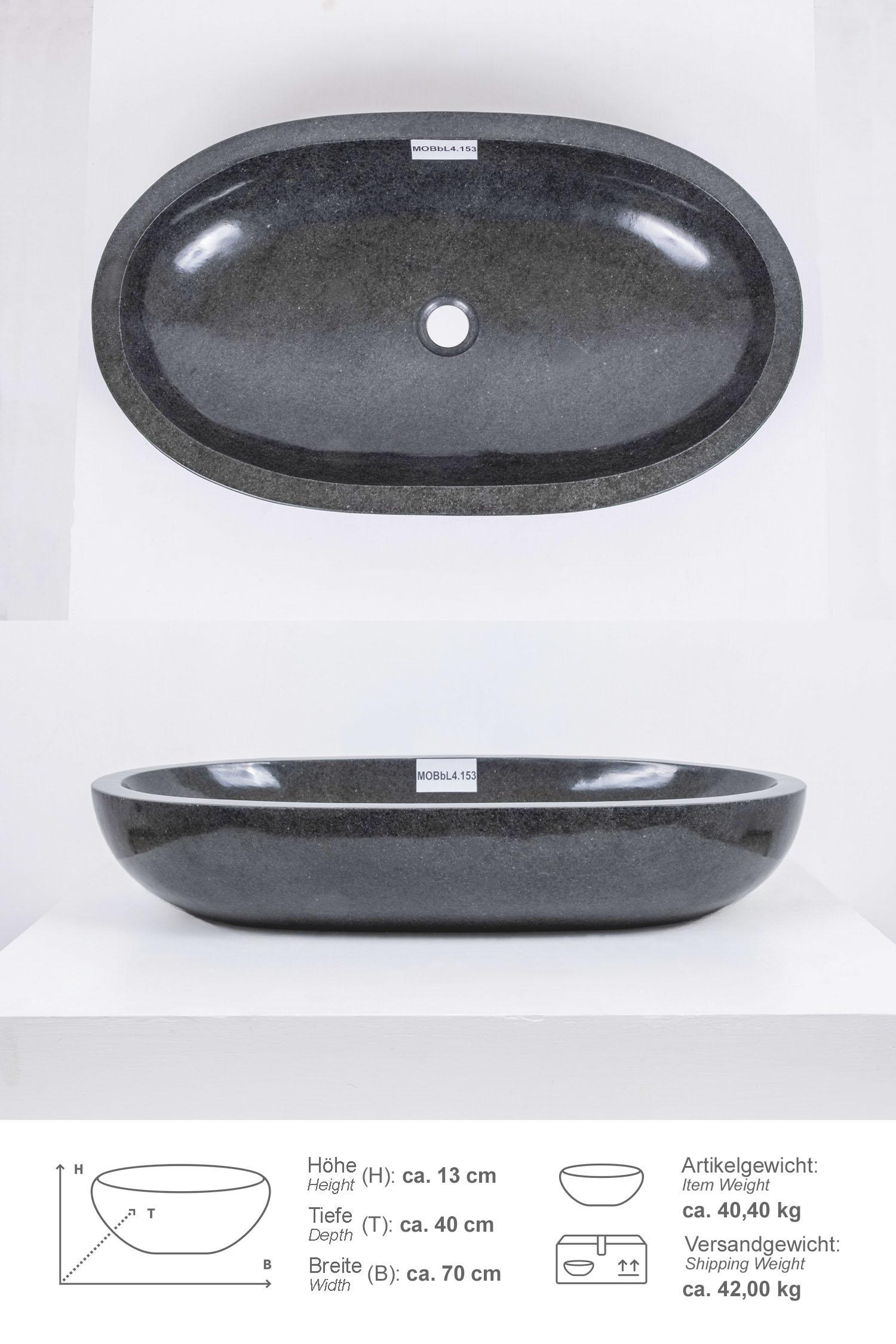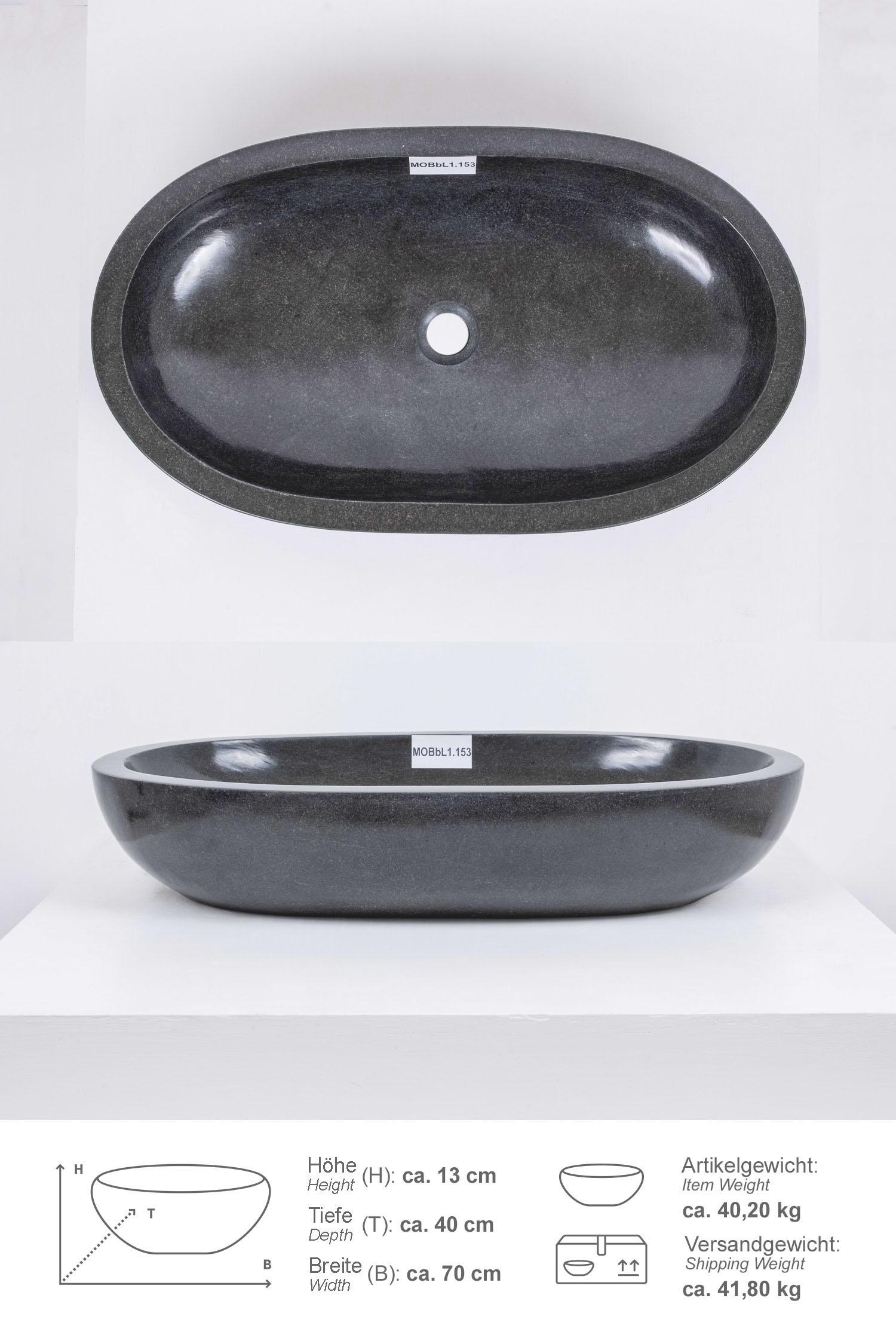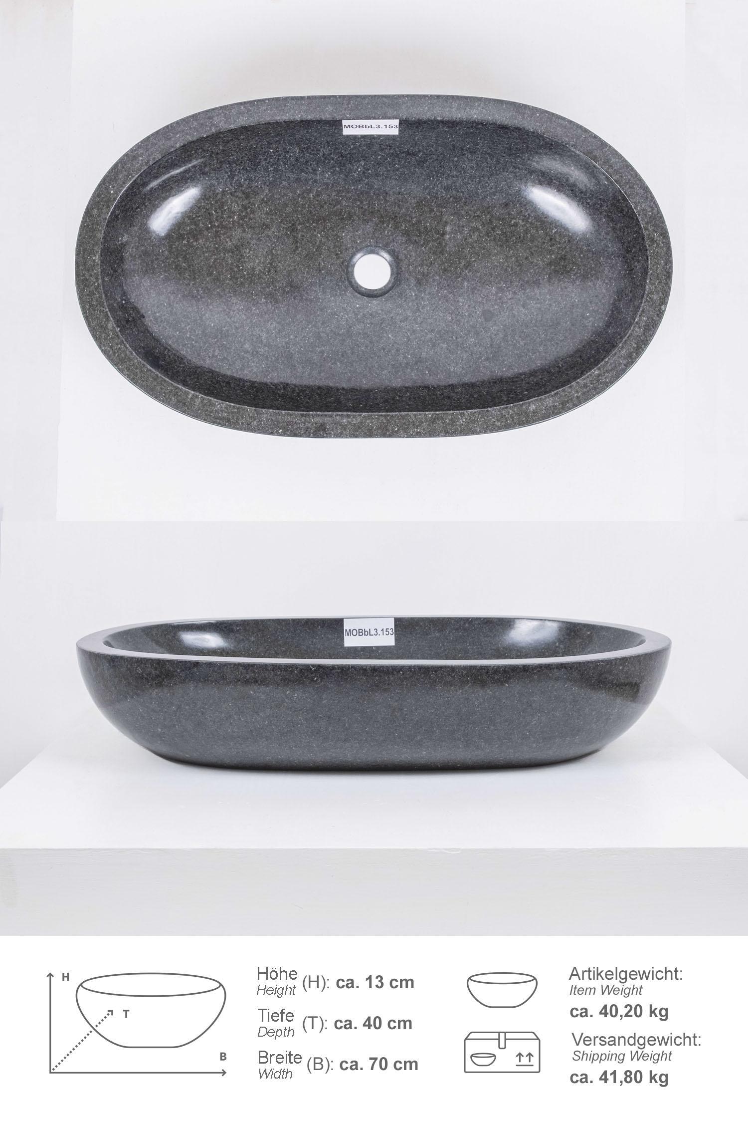 Andesit Waschbecken MARA oval poliert schwarz 70 cm