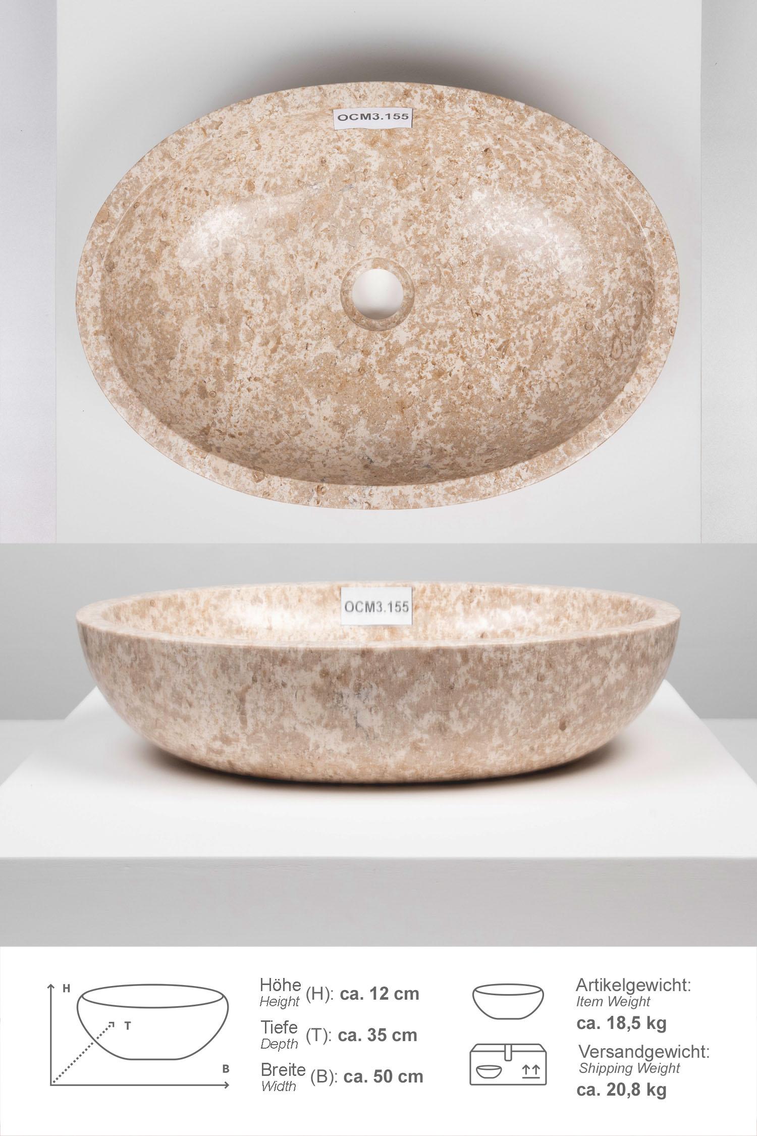 Marmor-Waschbecken MARA oval poliert creme 50x35cm