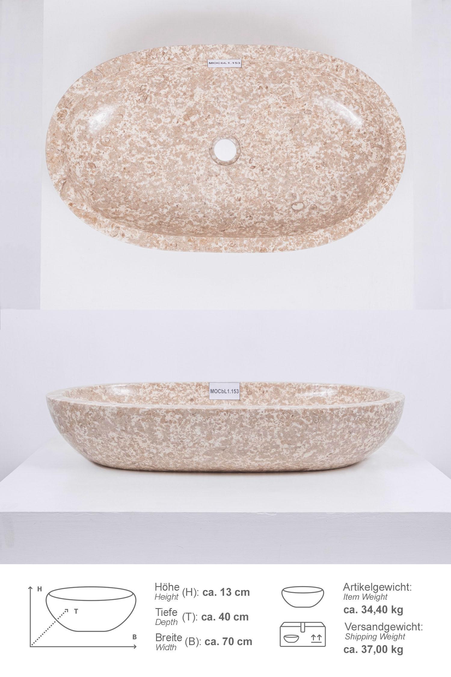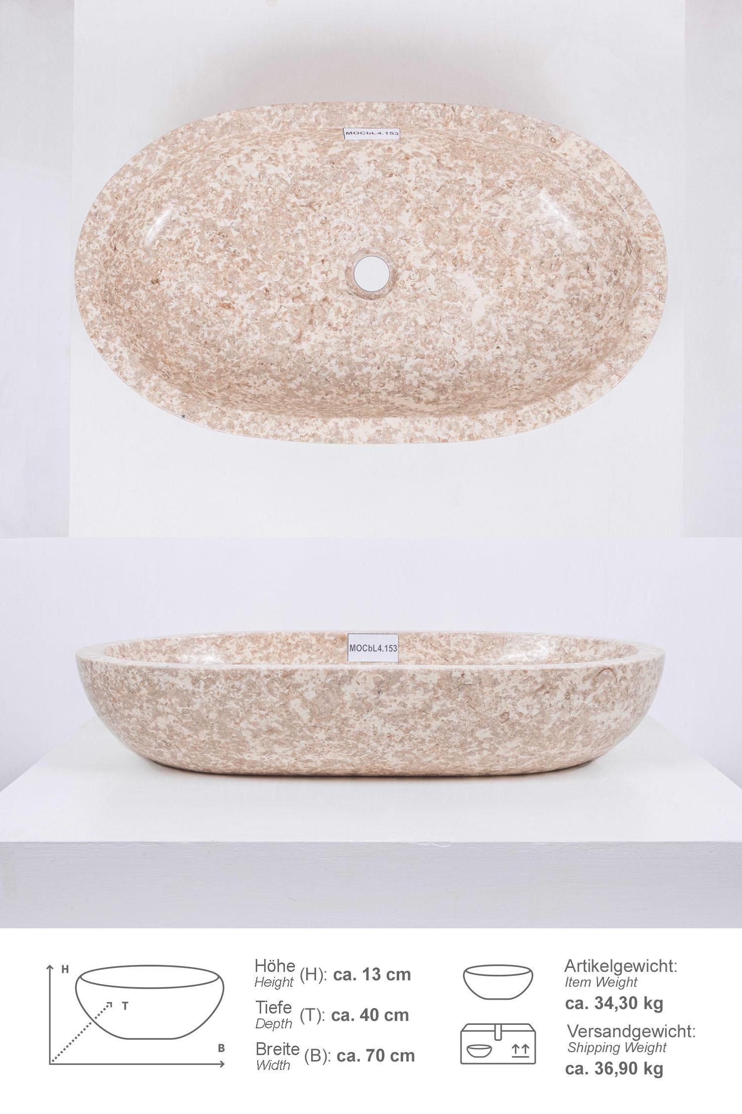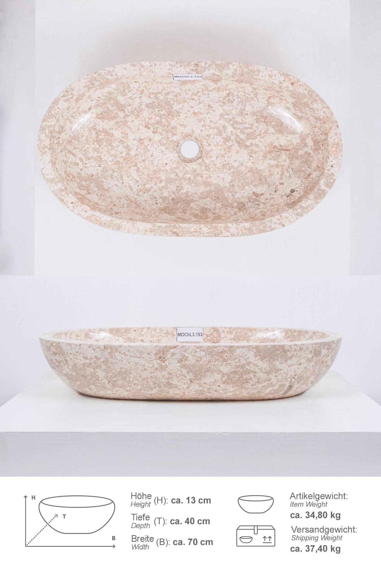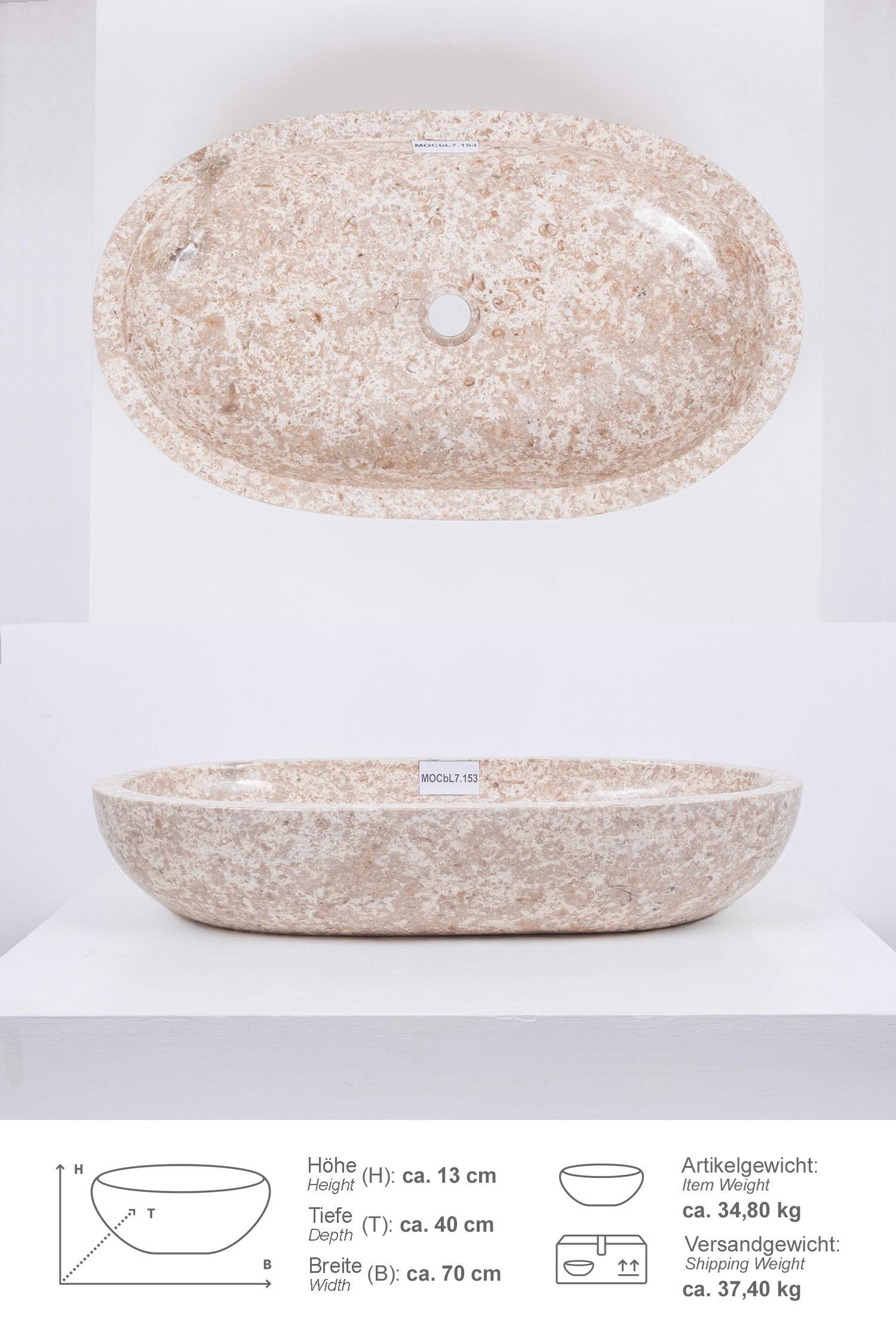 70 cm Marmorwaschbecken Mara oval, poliert, in der Farbe creme