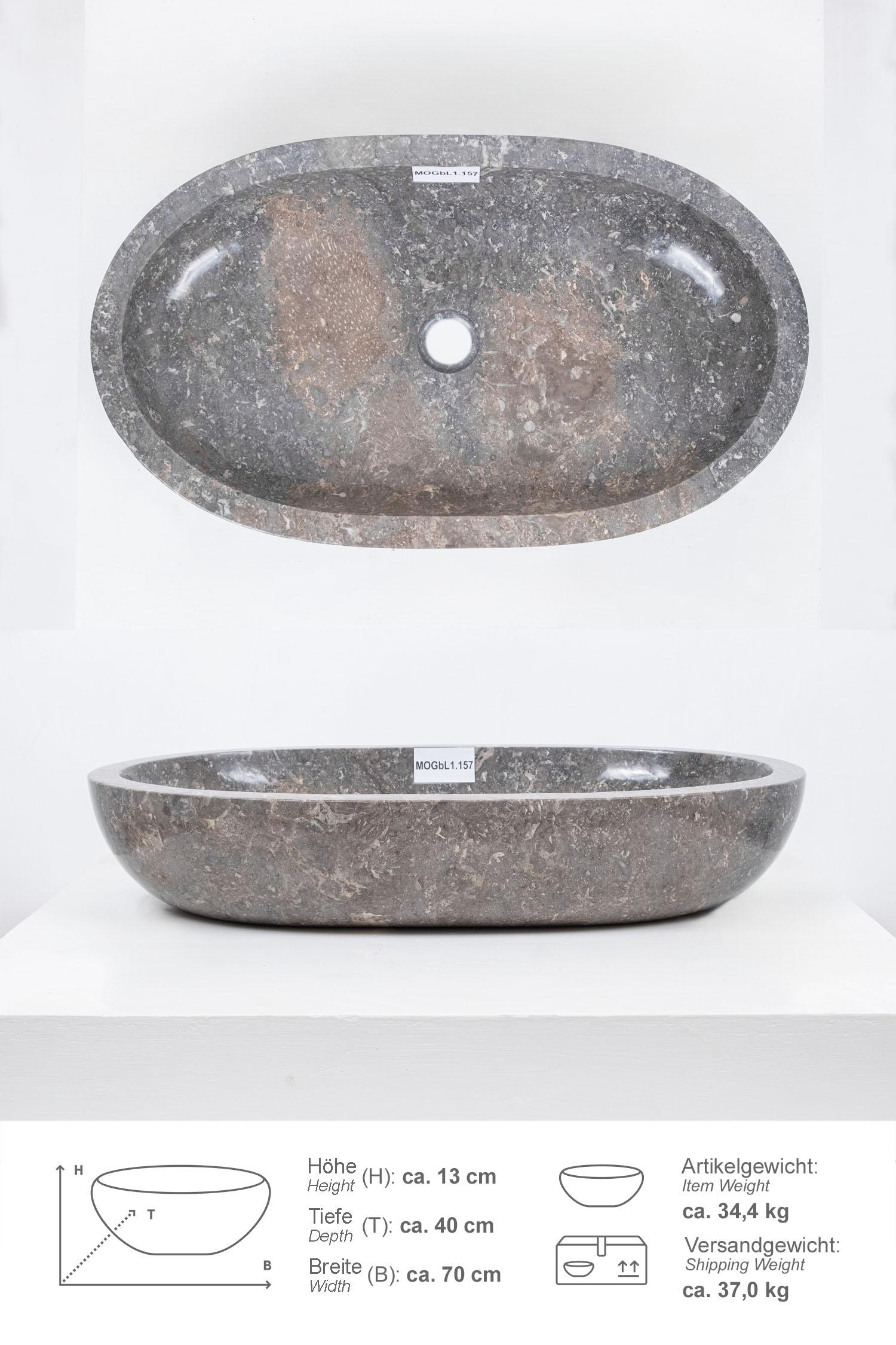70 cm ovales Steinwaschbecken MARA aus indonesischem Marmor in natürlichem grau
