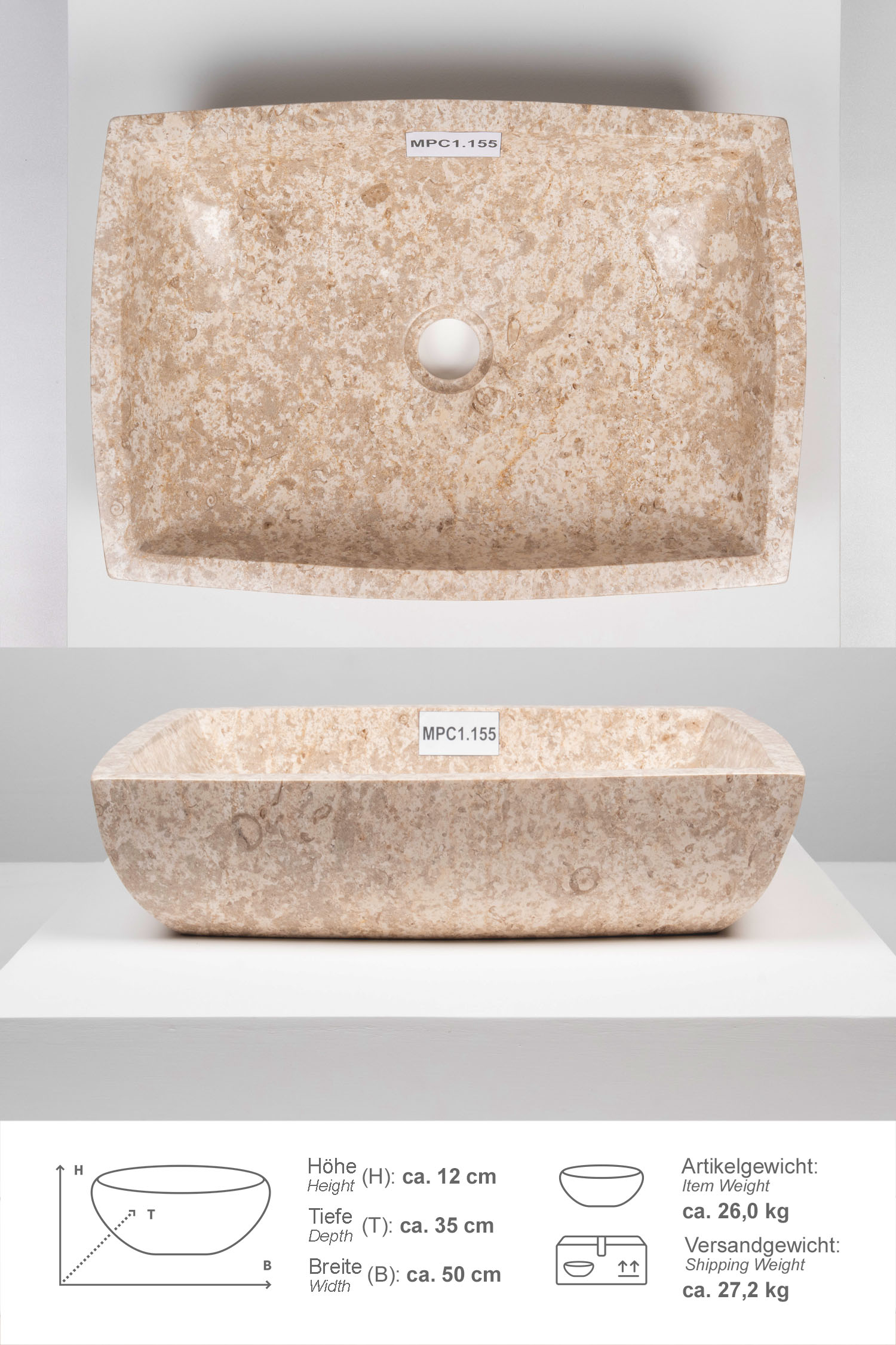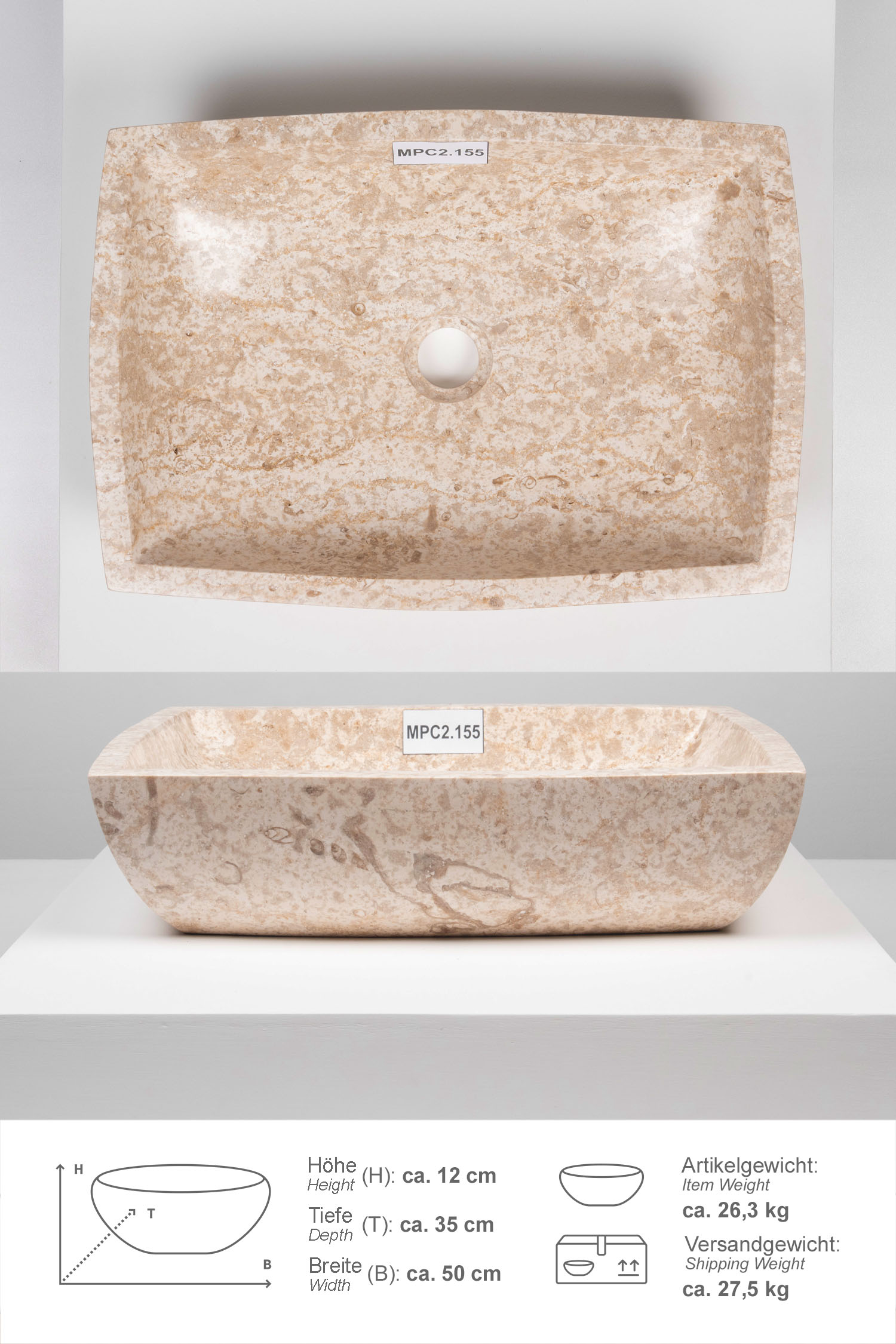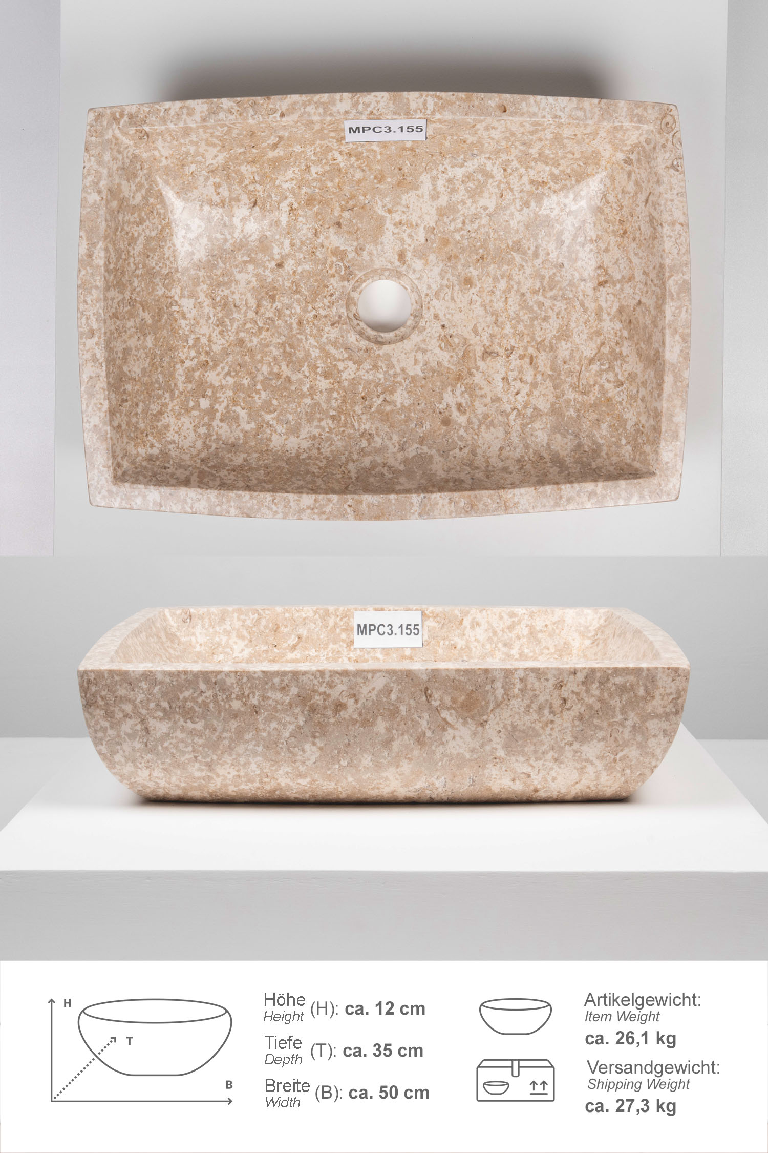 Waschbecken aus Marmor, Modell MARA, rechteckig poliert - creme 50 x 35 cm