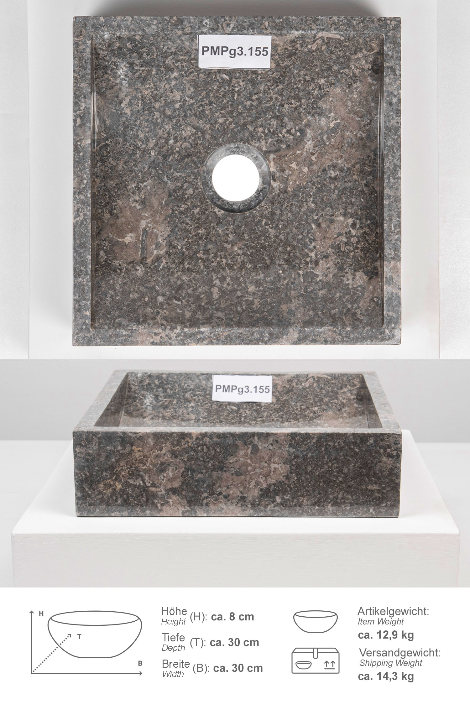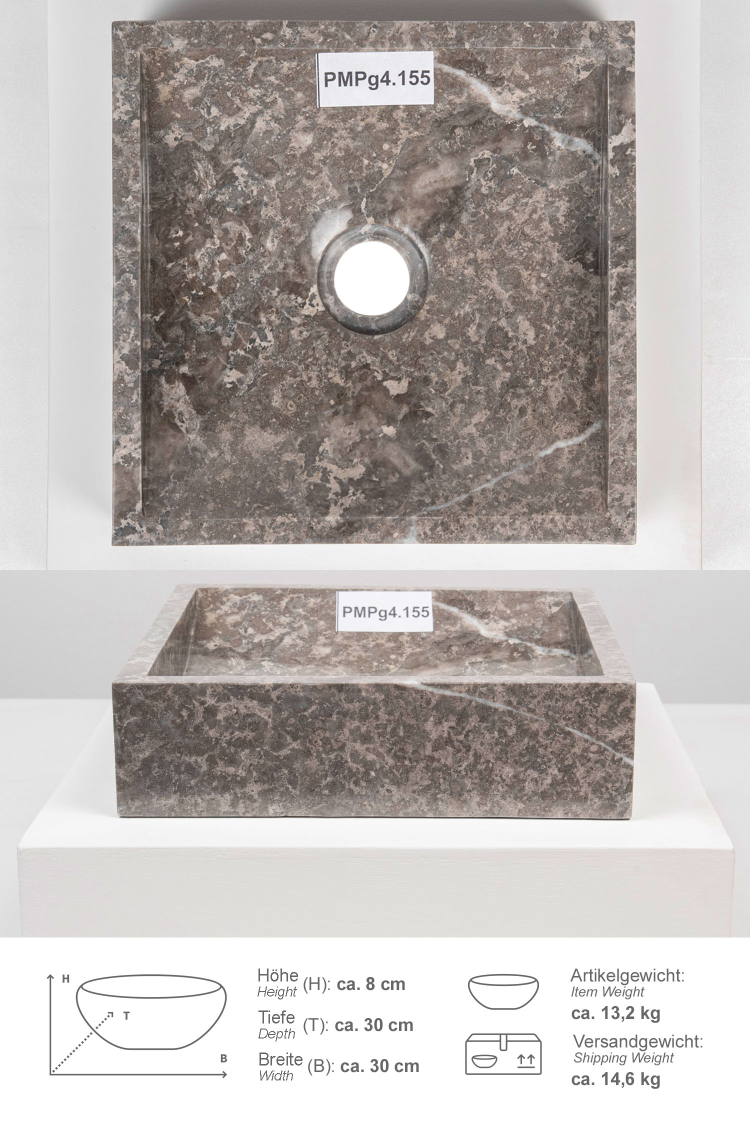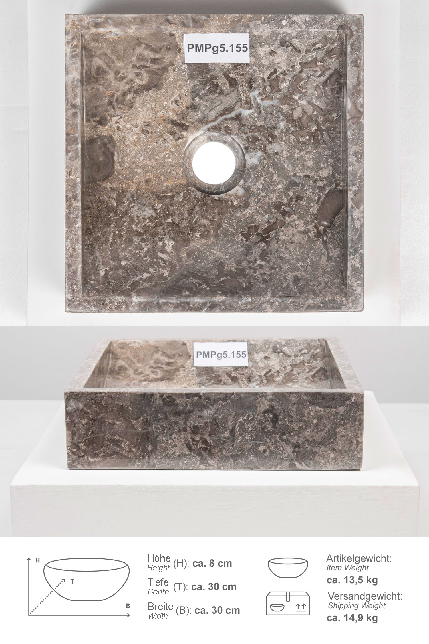 Marmor Steinwaschbecken MINI PERHAU 30 cm grau eckig