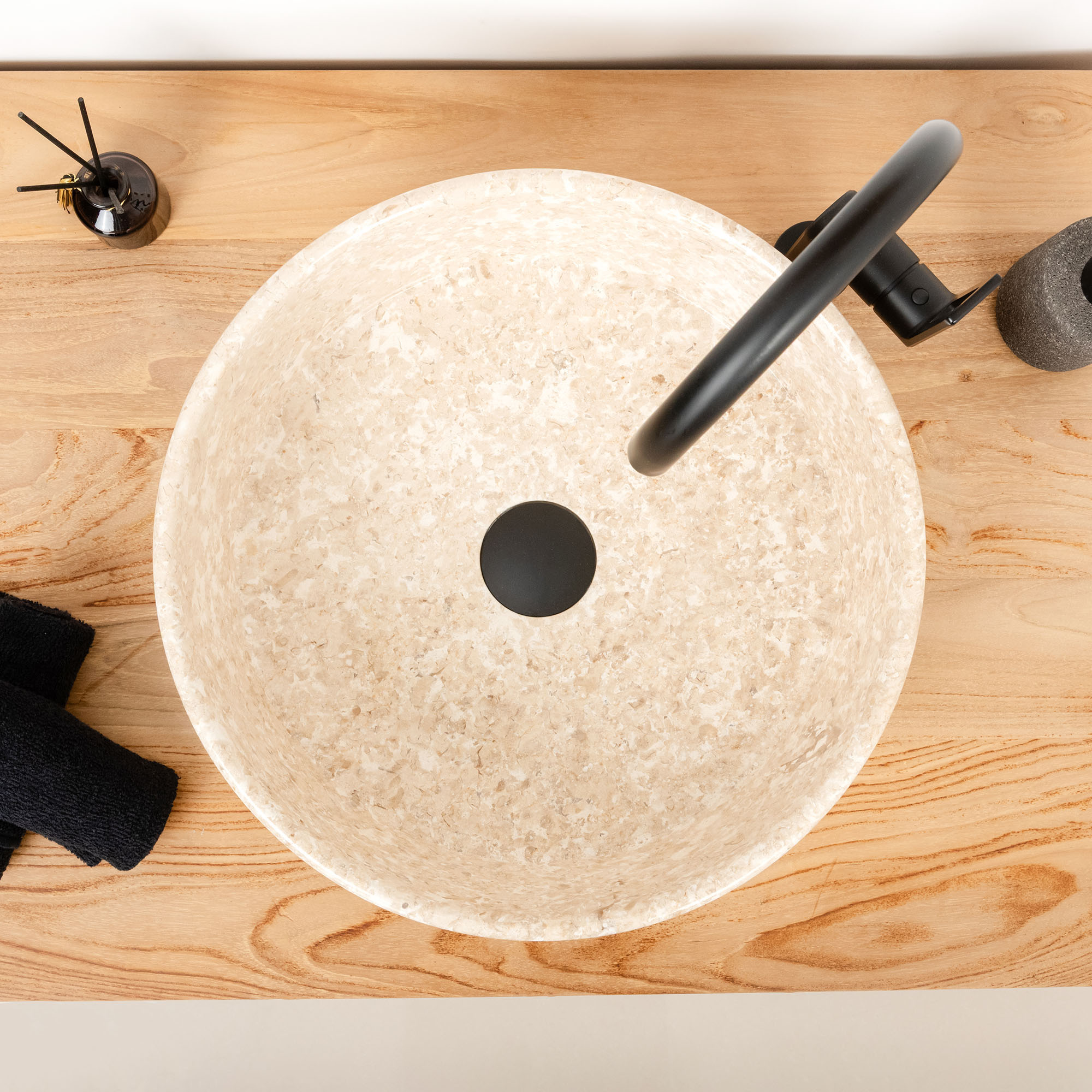 Unterschiede in Marmorierung, Schattierung und Struktur sind das Zeichen für die Individualität eines jeden Waschbeckens. Bitte beachten Sie, dass unsere Waschbecken ohne Überlauf gearbeitet sind.