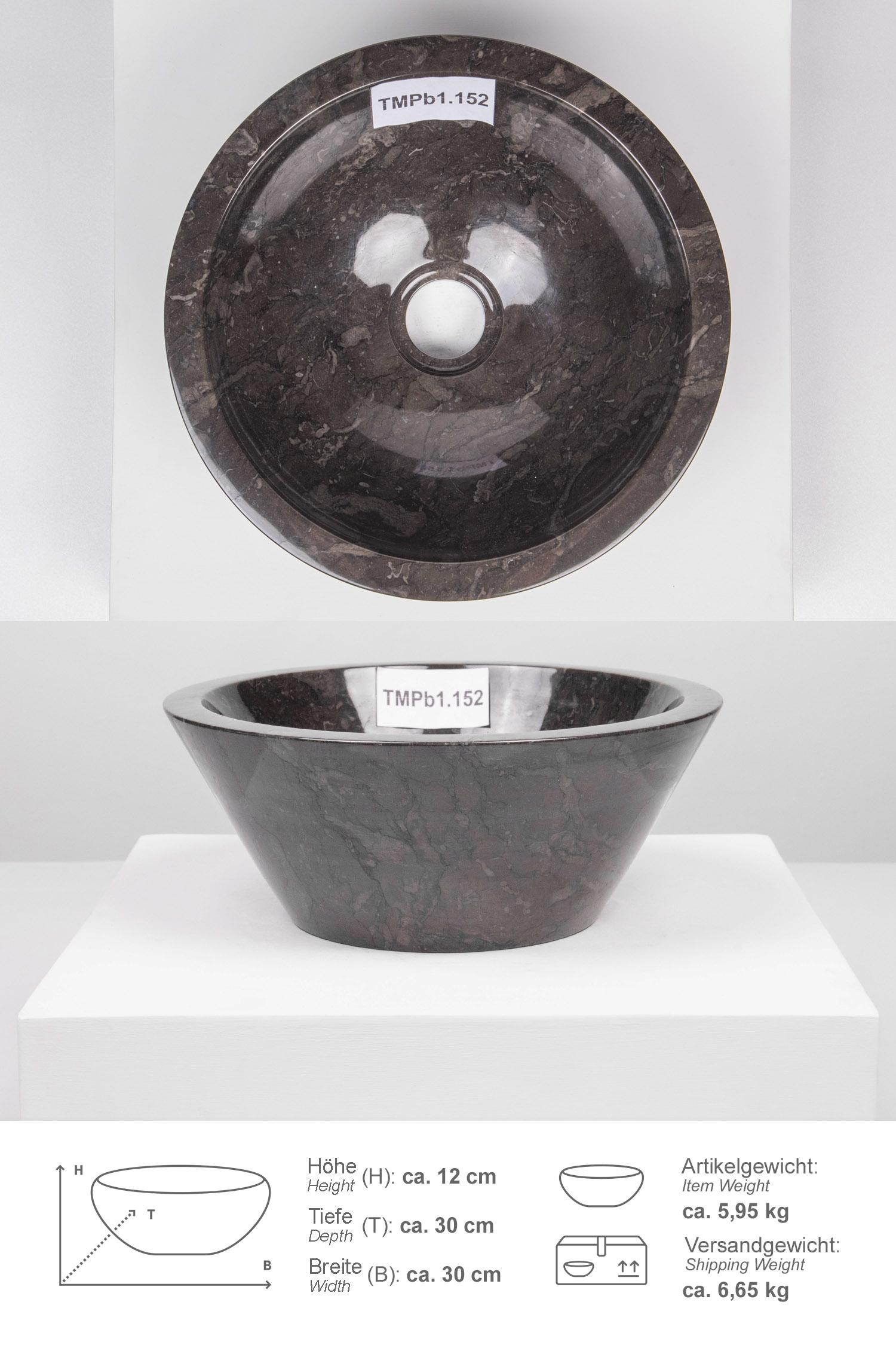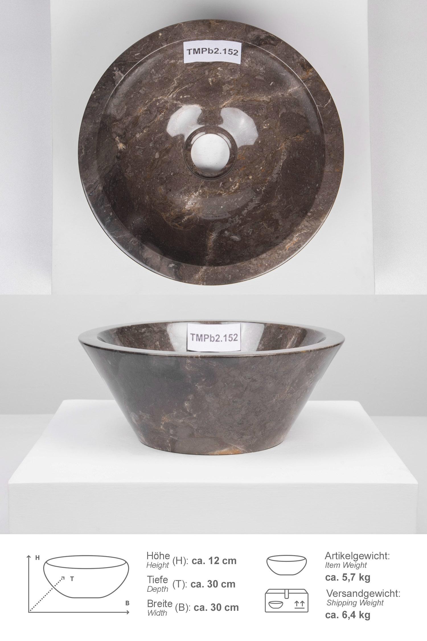Das Waschbecken ist innen und außen von Hand poliert. Unterschiede in Marmorierung, Schattierung und Struktur sind das Zeichen für die Individualität eines jeden Waschbeckens. Bitte beachten Sie, dass unsere Waschbecken ohne Überlauf gearbeitet sind.
