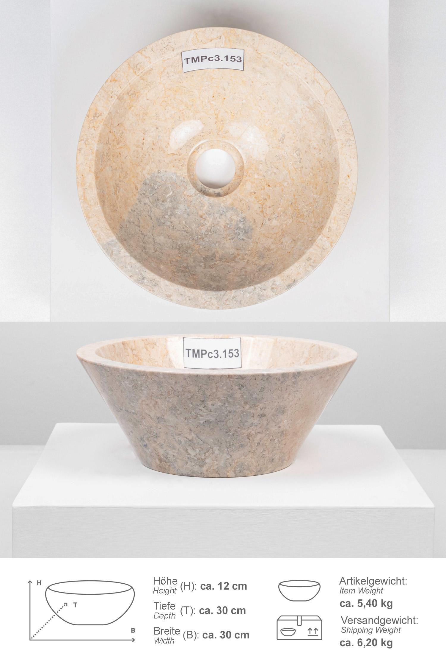 Marmor Waschbecken TOWER 30 cm creme poliert