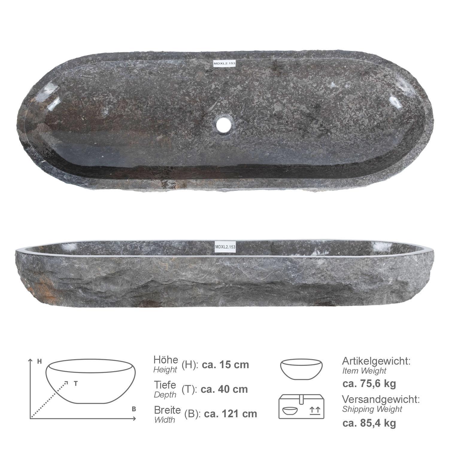 120 cm ovales Steinwaschbecken aus indonesischem Marmor in natürlichem Grauton