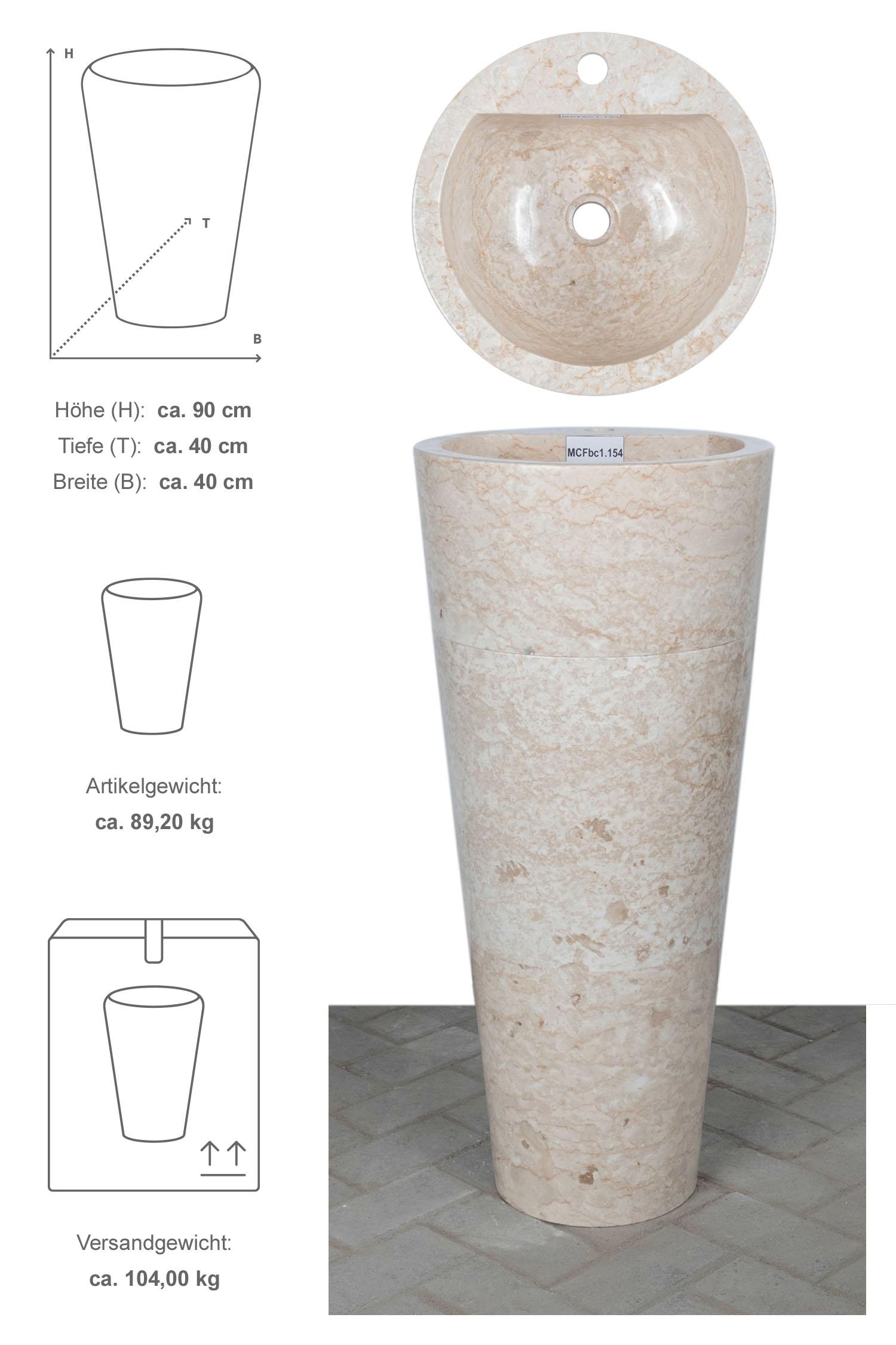 Marmor Standwaschbecken CN PEDESTAL 90 cm creme poliert mit Armaturloch
