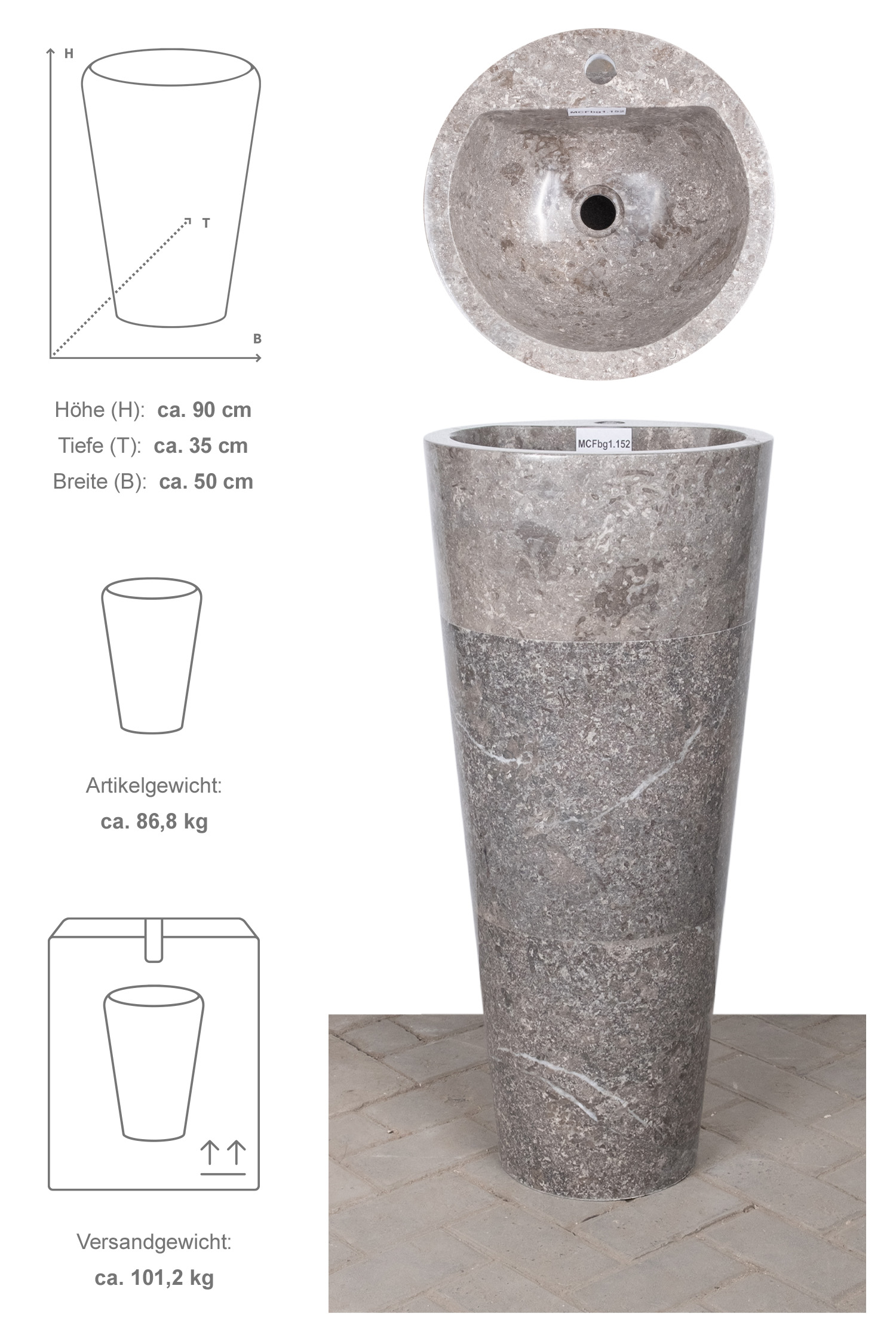 Marmor Waschtischsäule CN Pedestal 90 cm grau poliert mit Armaturloch
