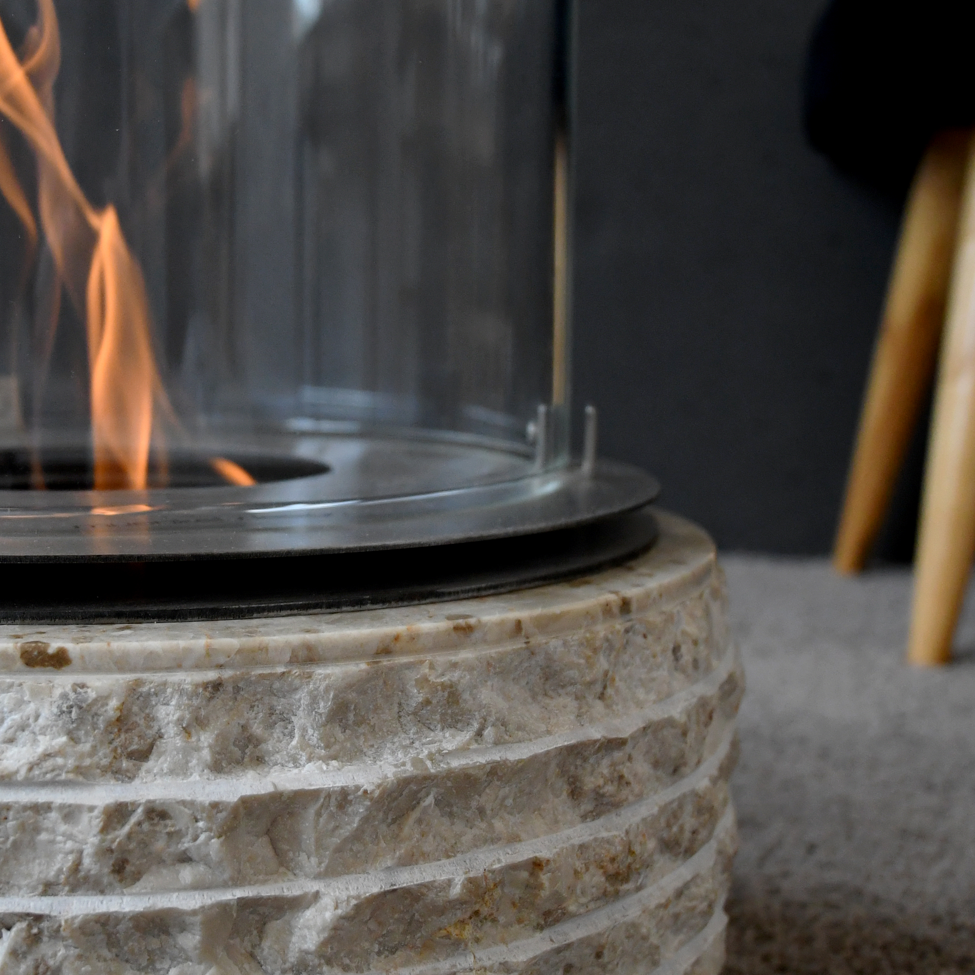 Bio Ethanol Kamin und Feuerstelle für Outdoor und Indoor mit Marmorsockel in creme