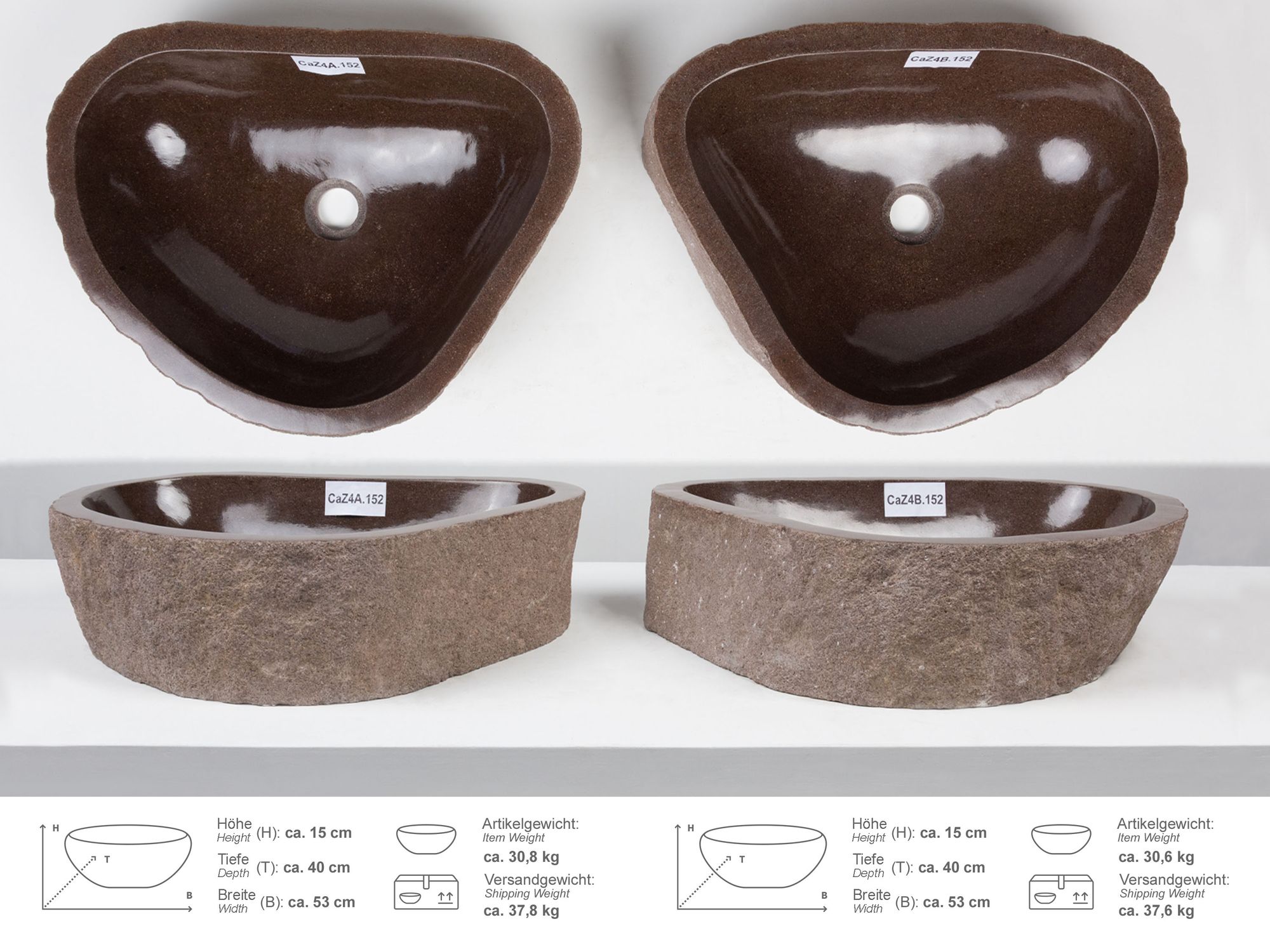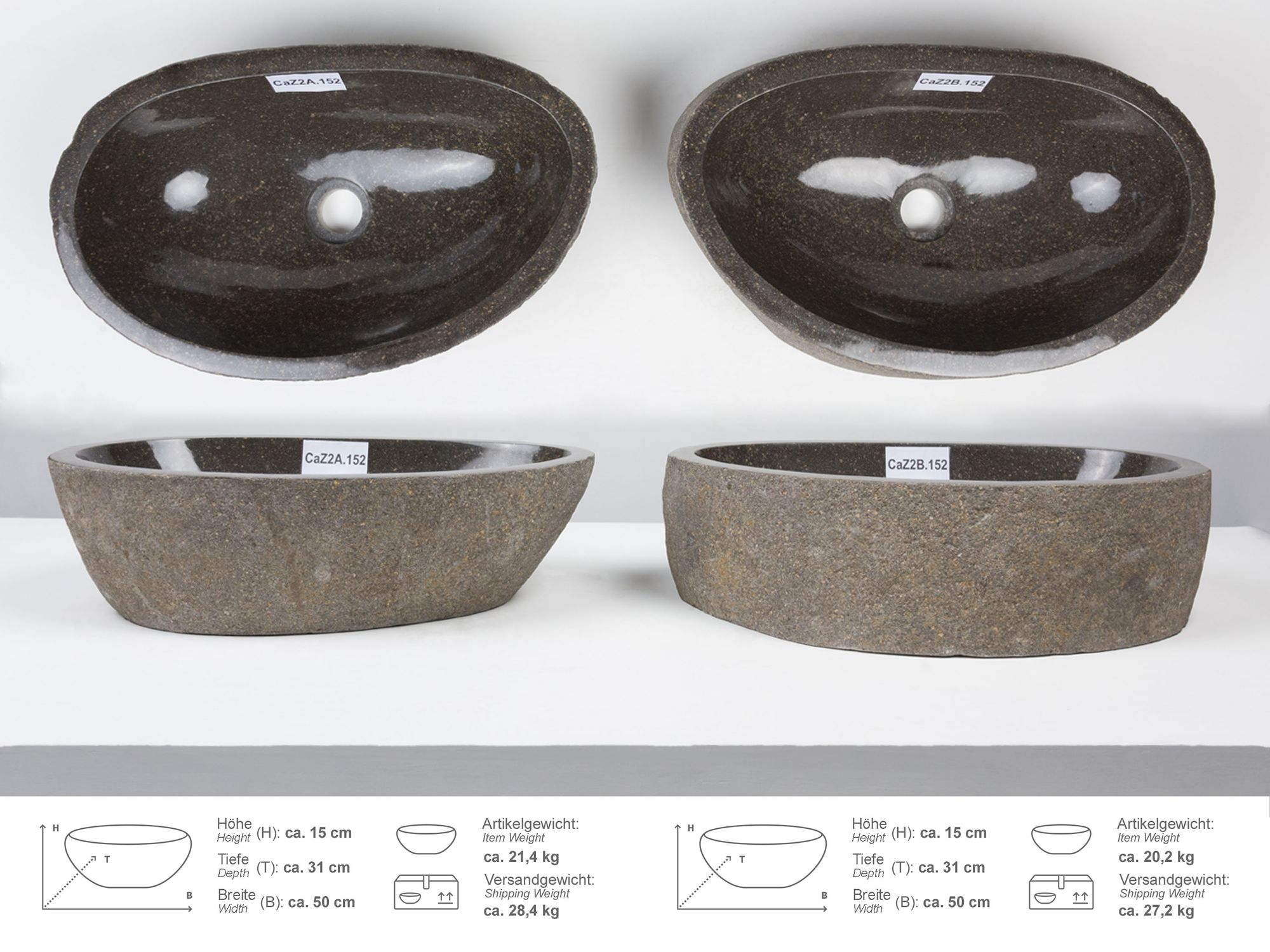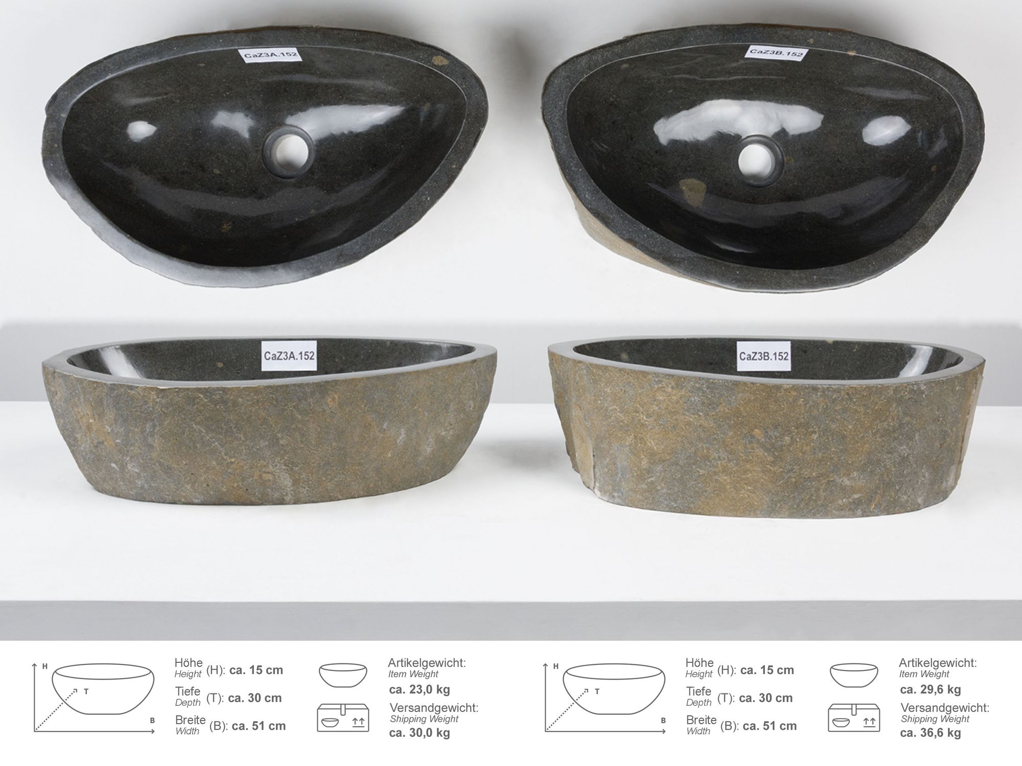 Das Waschbecken ist innen poliert und außen in der natürlichen Form des Steines naturbelassen. Jeder Flußstein hat über Jahrtausende einen langen Weg durch die Tropenflüsse Indonesiens bis in Ihr Zuhause zurückgelegt.